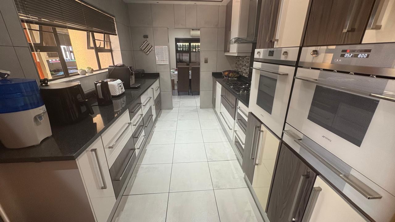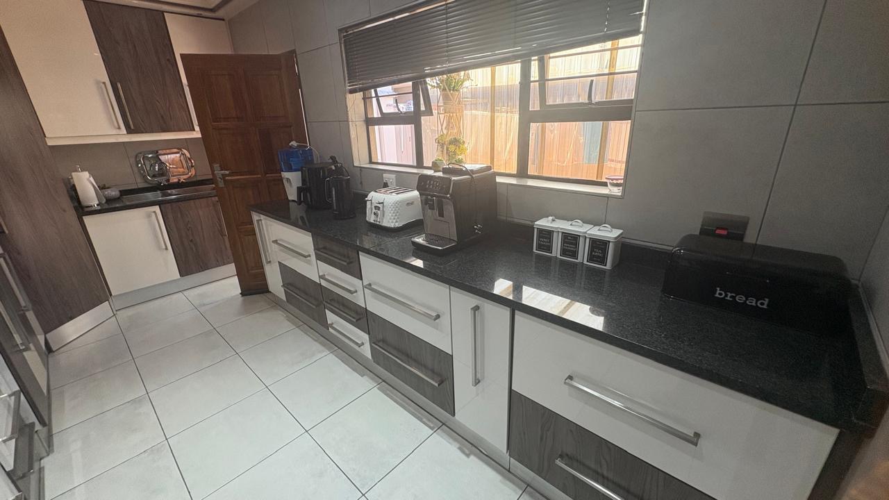 This home boasts five well-proportioned bedrooms and three bathrooms, including two en-suite facilities for added privacy and convenience. Each bedroom benefits from tiled flooring, ample natural light, and built-in cupboards. The kitchen is beautiful, modern and well designed with ample cupboard space.