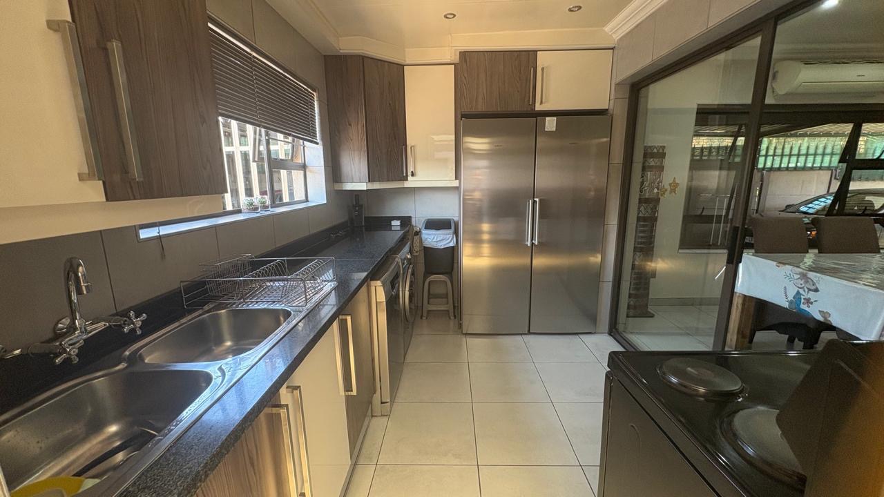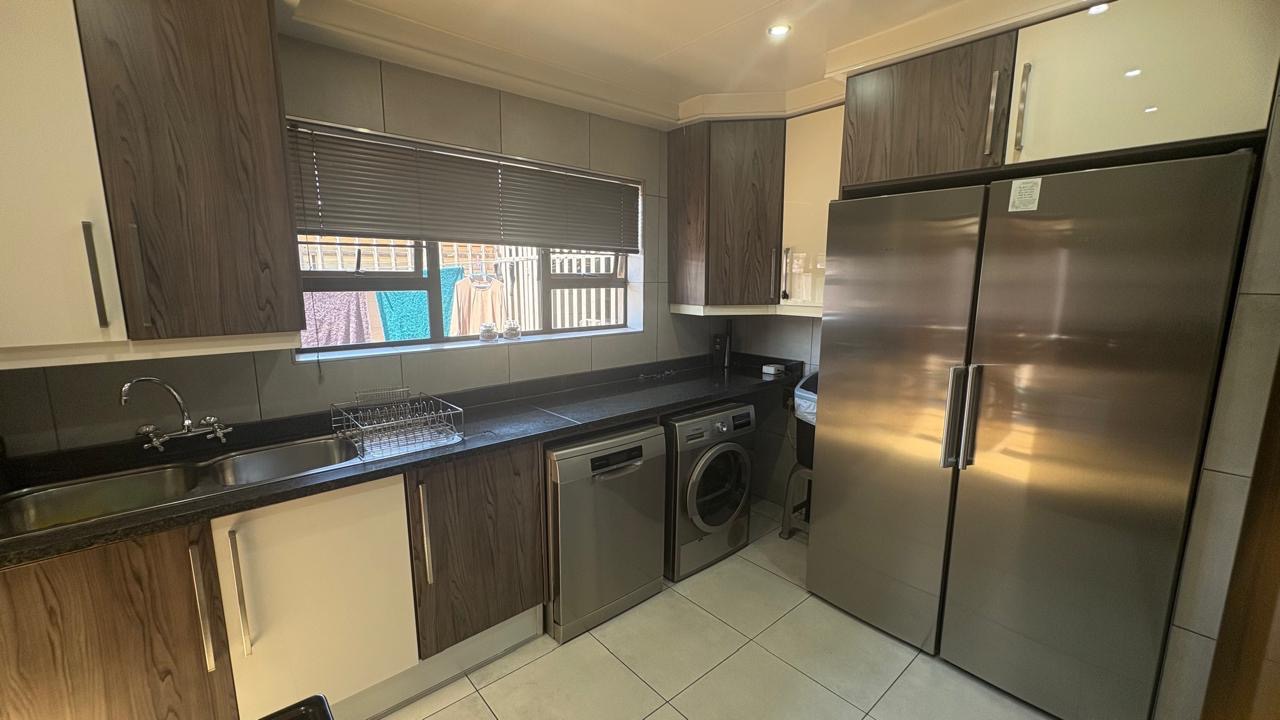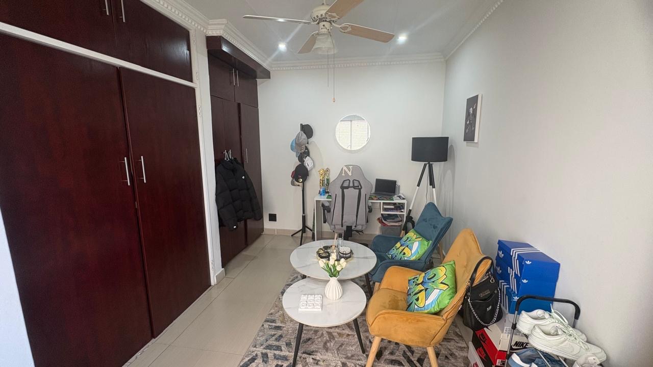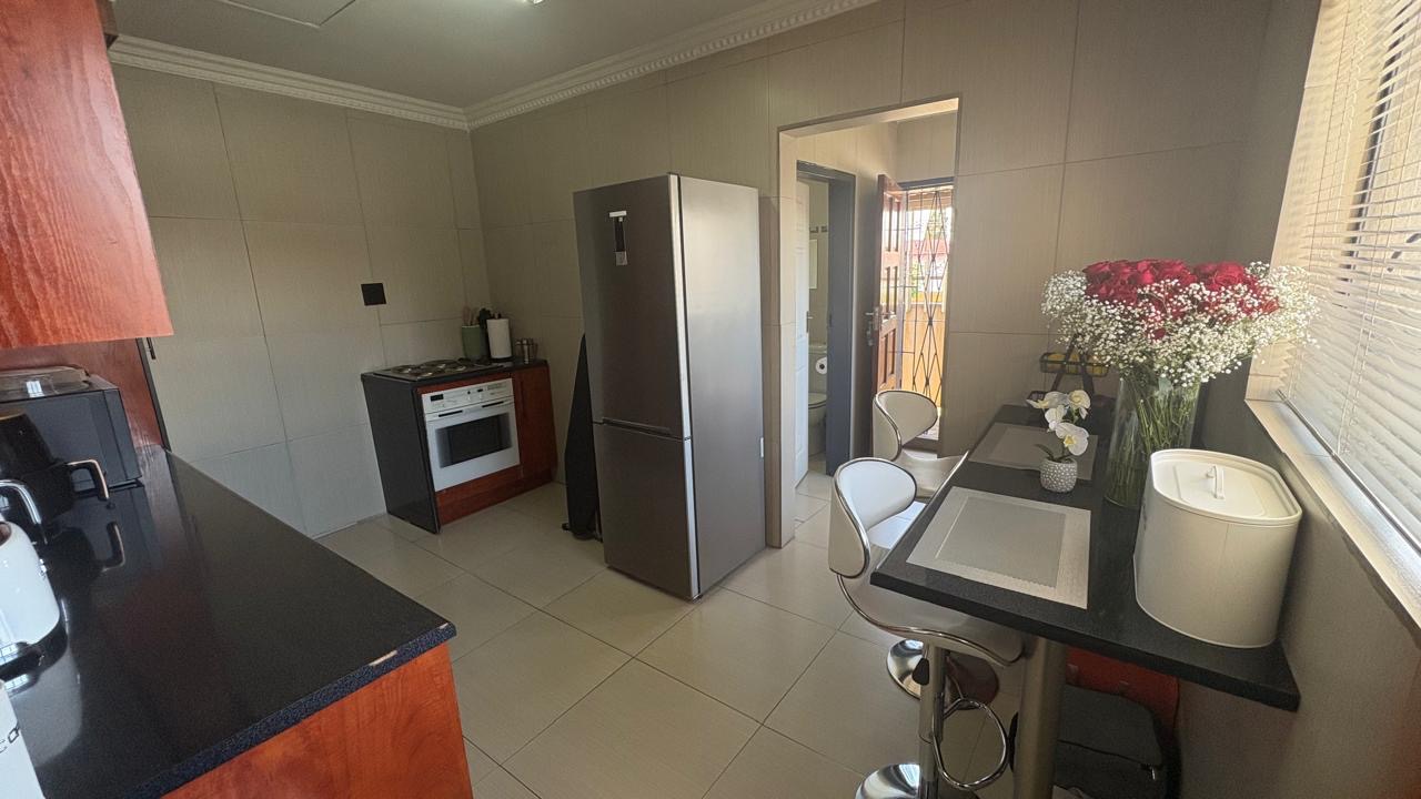 This home boasts five well-proportioned bedrooms and three bathrooms, including two en-suite facilities for added privacy and convenience. Each bedroom benefits from tiled flooring, ample natural light, and built-in cupboards. The kitchen is beautiful, modern and well designed with ample cupboard space.