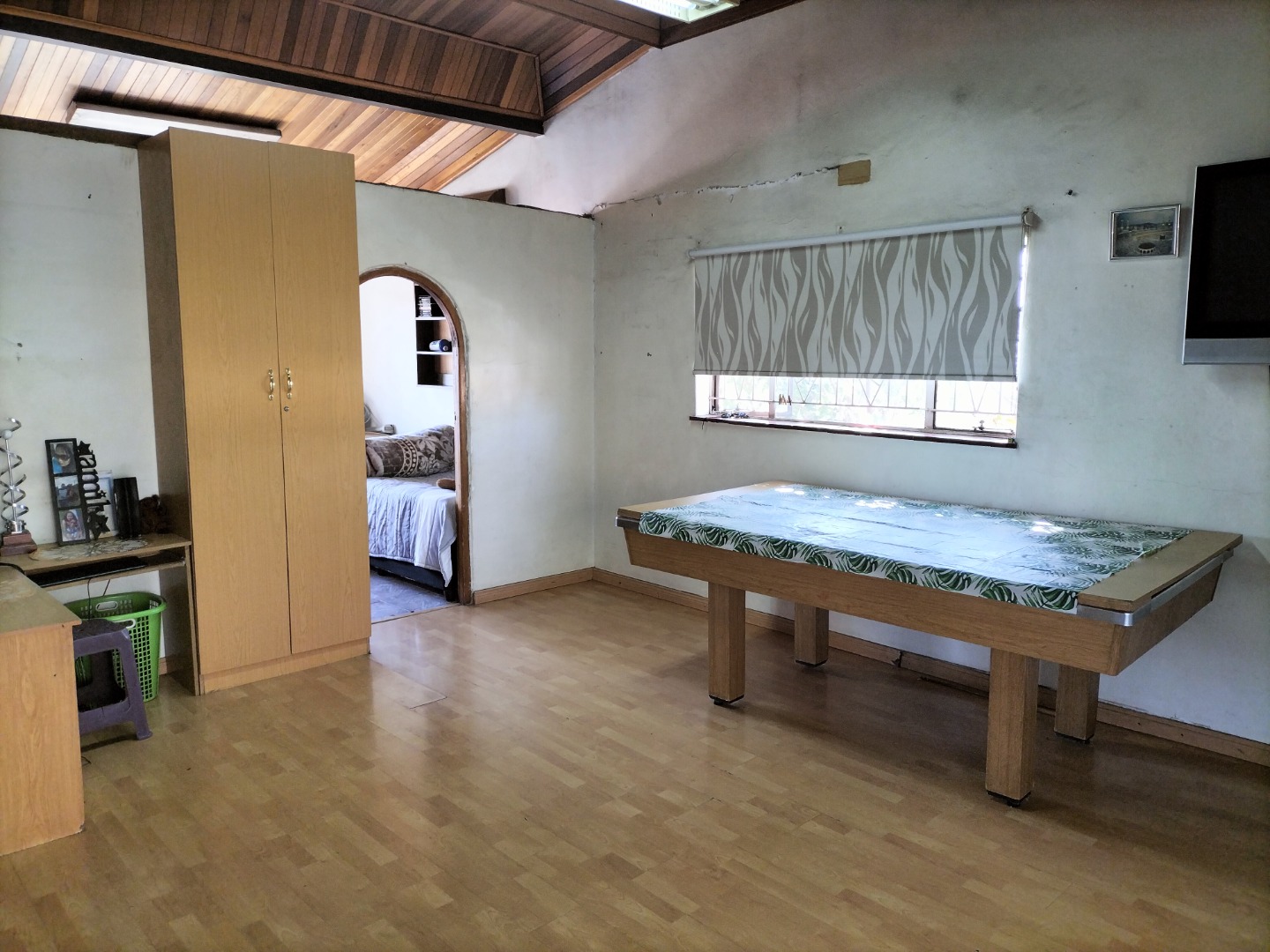 The interior boasts a flexible layout featuring two distinct living rooms and two dining areas, providing ample space for relaxation and entertaining. The property includes two functional kitchens, each equipped with extensive cabinetry and tiled finishes, offering practical solutions for diverse culinary needs or the potential for a flexible living arrangement. While currently functional, these spaces offer a blank canvas for contemporary upgrades to suit your personal style.