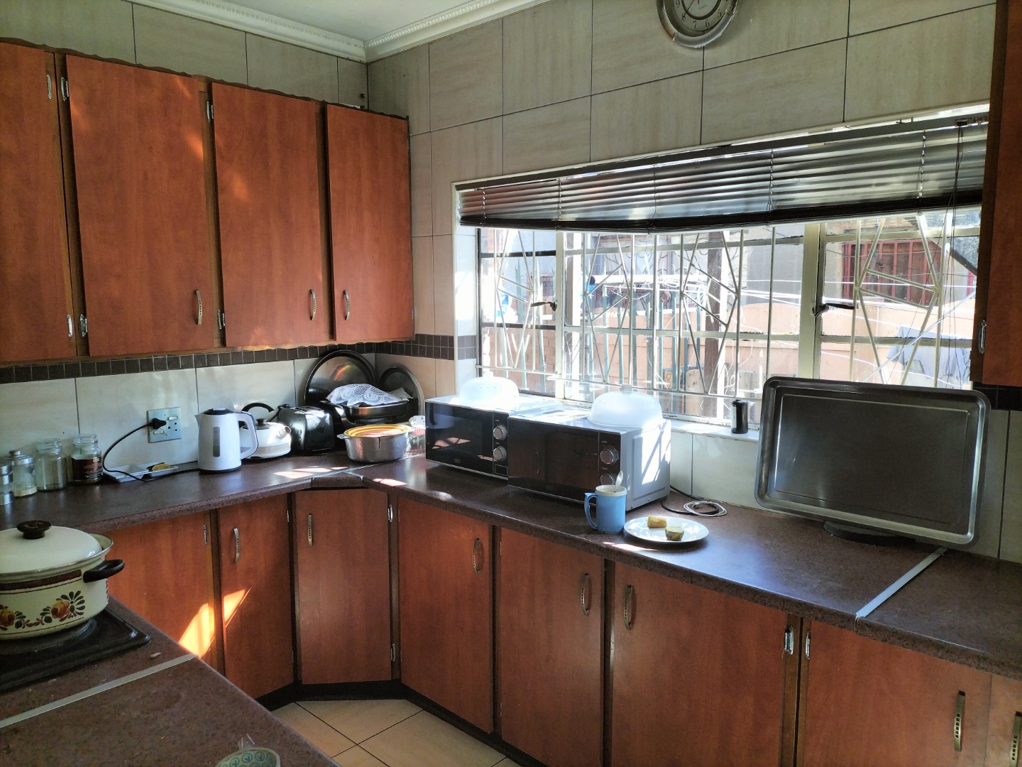The interior boasts a flexible layout featuring two distinct living rooms and two dining areas, providing ample space for relaxation and entertaining. The property includes two functional kitchens, each equipped with extensive cabinetry and tiled finishes, offering practical solutions for diverse culinary needs or the potential for a flexible living arrangement. While currently functional, these spaces offer a blank canvas for contemporary upgrades to suit your personal style.