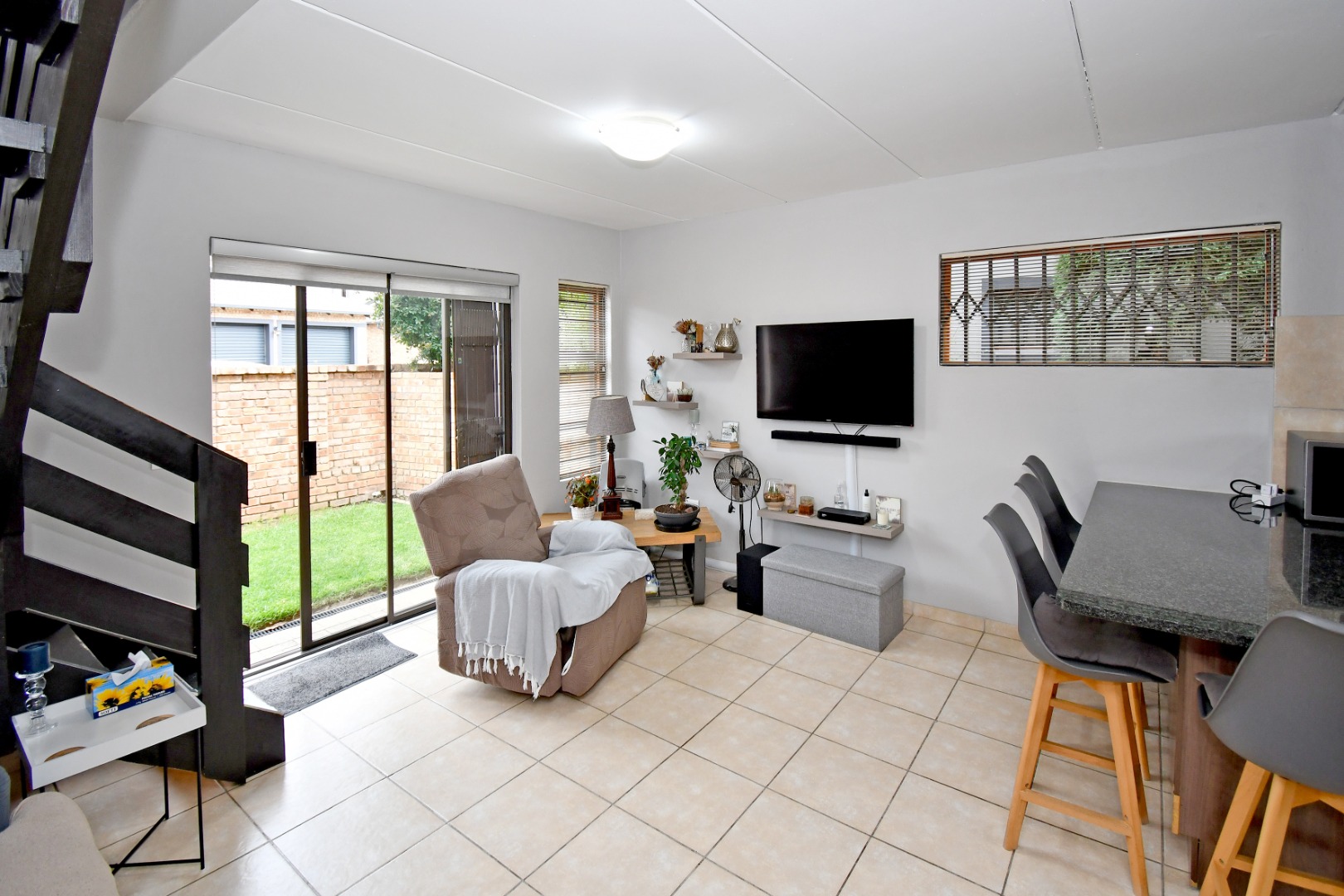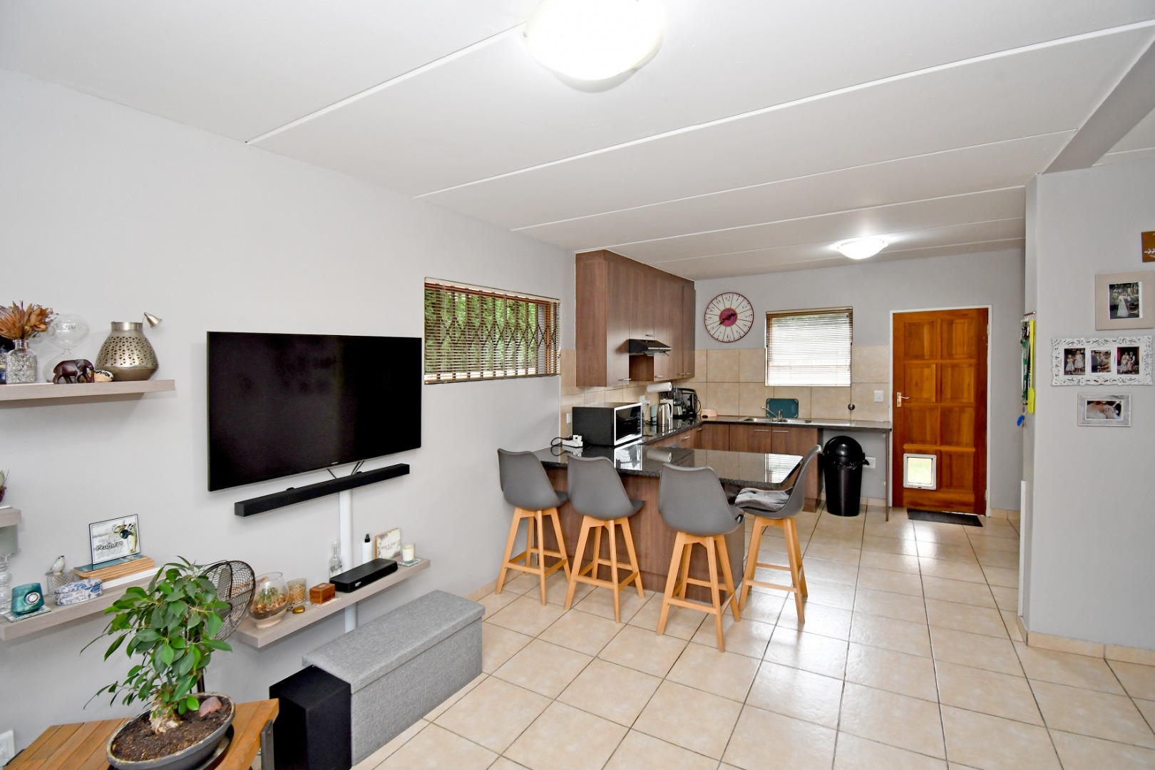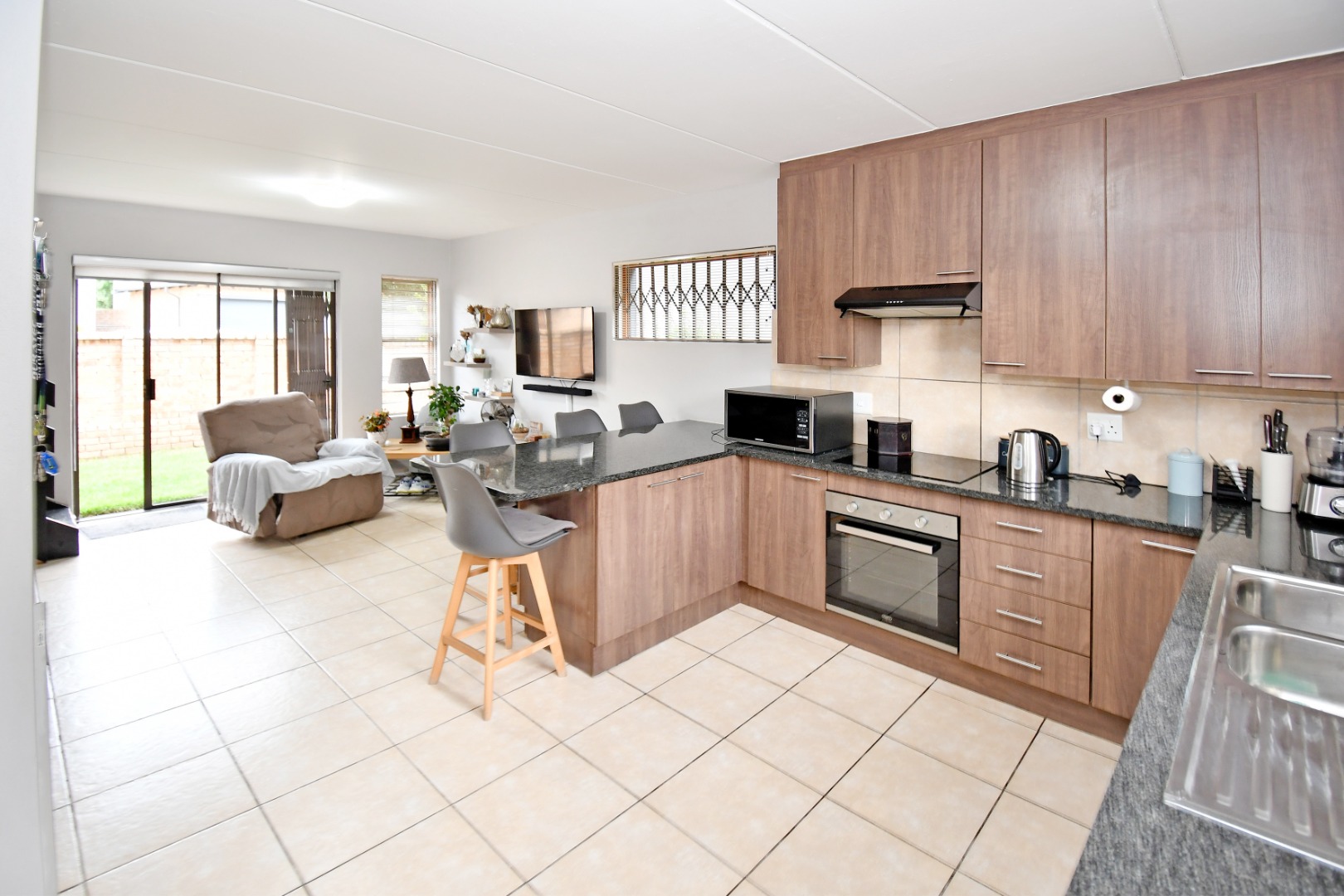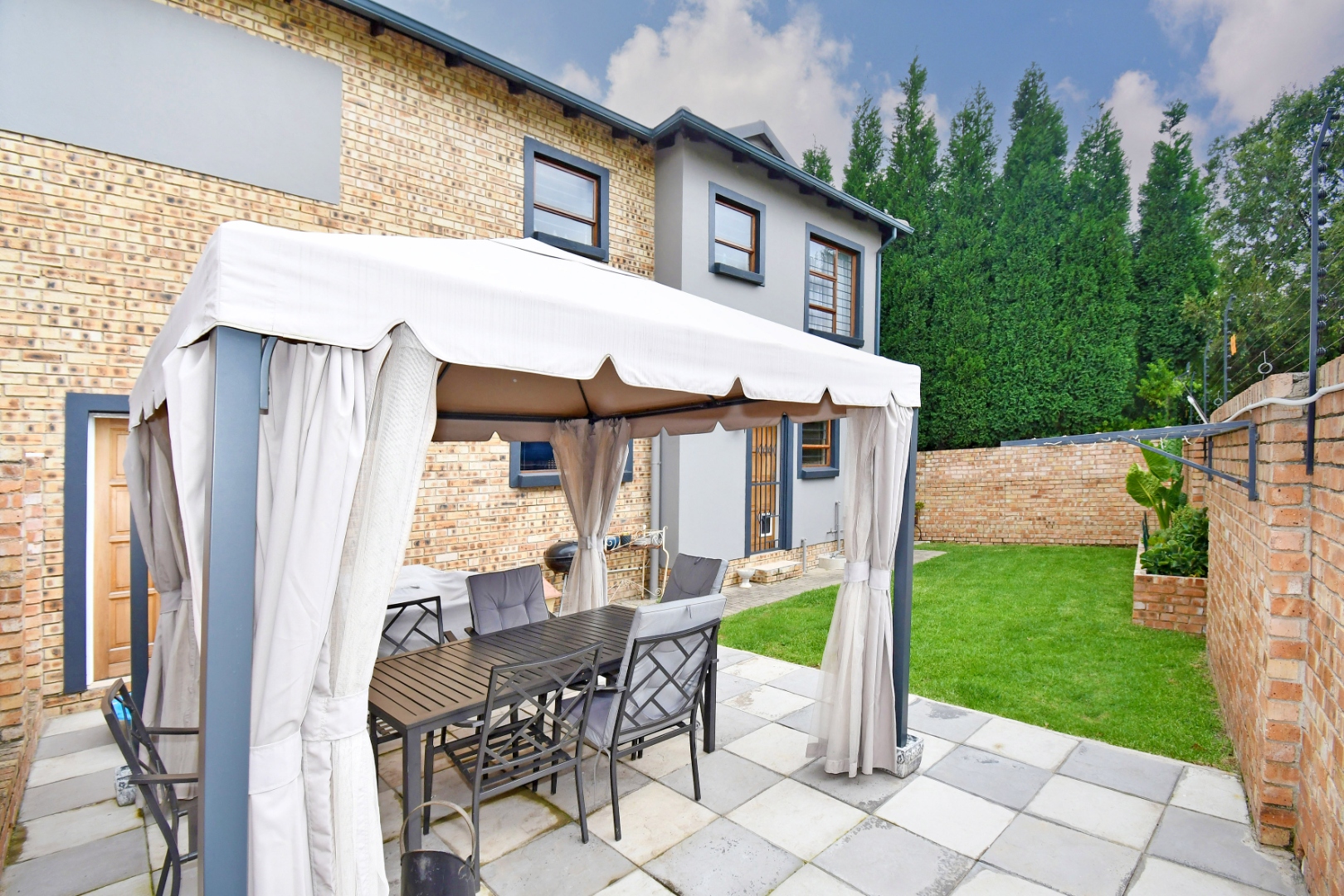 Welcome to this modern 3-bedroom, 2-bathroom residence, perfectly situated within a secure estate in the desirable Airfield suburb of Benoni, South Africa. This property presents a contemporary aesthetic with a well-maintained exterior featuring a mix of plaster and brick finishes, offering excellent kerb appeal. Inside, the home boasts a functional and inviting layout spanning 137 square metres. The open-plan design seamlessly integrates the spacious lounge with a well-appointed kitchen, which includes a convenient pantry. Sliding doors enhance the flow, connecting the interior living spaces to the private outdoor areas. The accommodation comprises three comfortable bedrooms, with one of the two bathrooms being an en-suite, providing added privacy and convenience for residents. Step outside to discover a private garden and a paved patio, ideal for relaxation or entertaining. The outdoor space is further enhanced by a gazebo, offering a shaded area perfect for al fresco dining and social gatherings. The property includes two integrated garages and additional parking, ensuring ample space for vehicles. This home is also pet-friendly, accommodating furry family members. Prioritising both security and sustainability, this residence is located within a security estate, benefiting from electric fencing, an access gate, and an intercom system for peace of mind. Modern amenities such as a battery inverter and solar panels contribute to energy efficiency, while fibre connectivity ensures high-speed internet access. Airfield, Benoni, offers a well-established suburban environment with convenient access to local amenities and transport routes, making it a desirable location for families and professionals alike. Key Features: * 3 Bedrooms, 2 Bathrooms (1 En-suite) * Open-plan Lounge & Kitchen with Pantry * Private Garden & Paved Patio with Gazebo * Double Garages & Additional Parking * Security Estate with Electric Fencing & Access Gate * Battery Inverter, Solar Panels & Fibre Ready * Pet-Friendly Environment