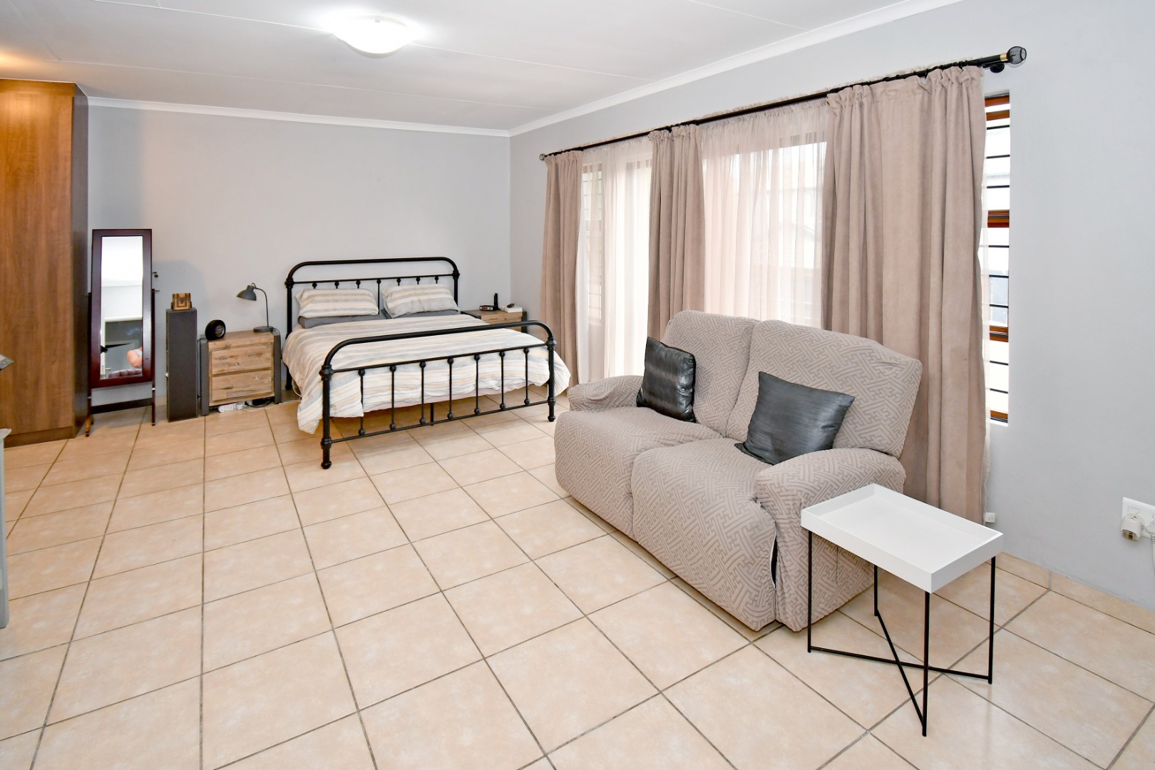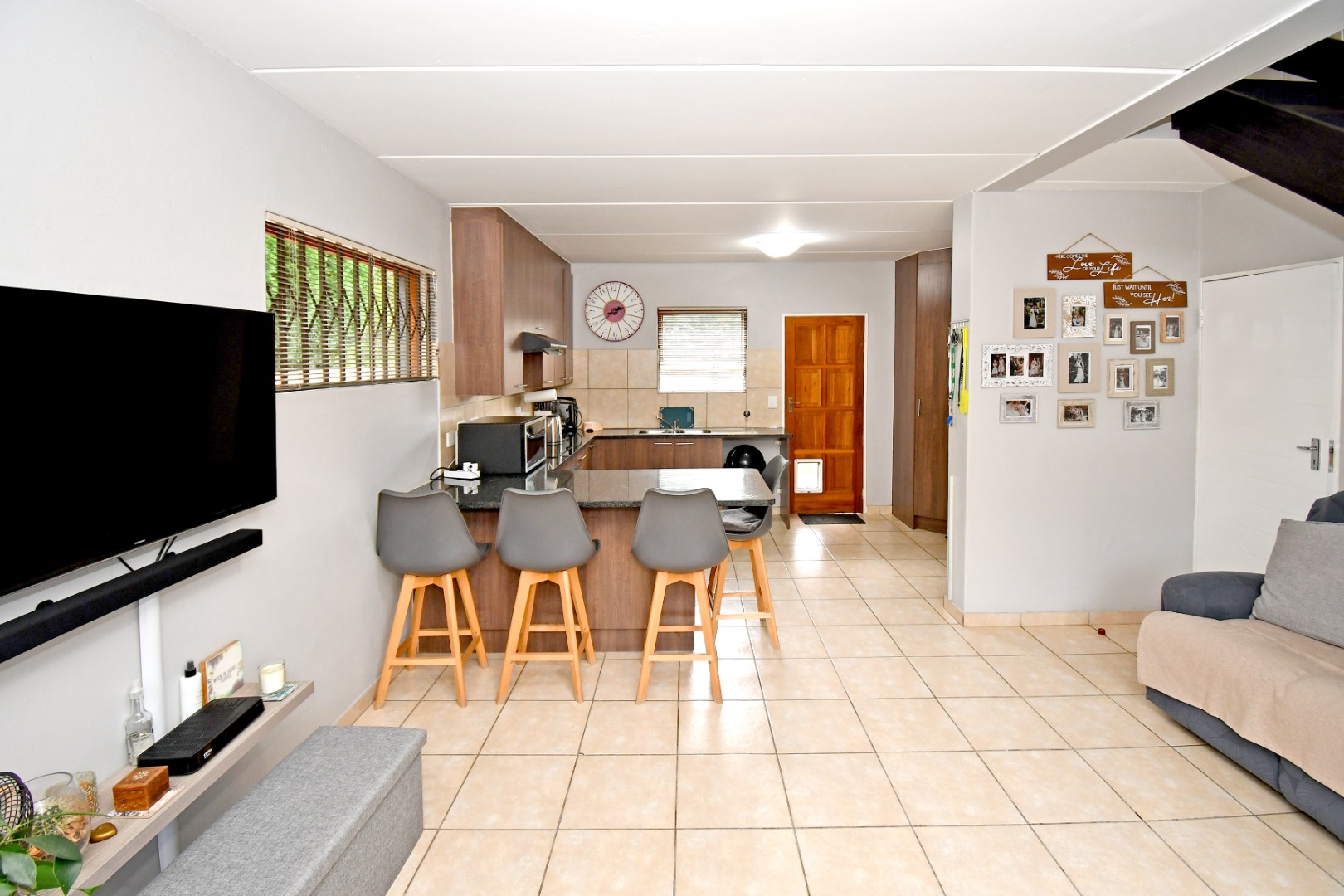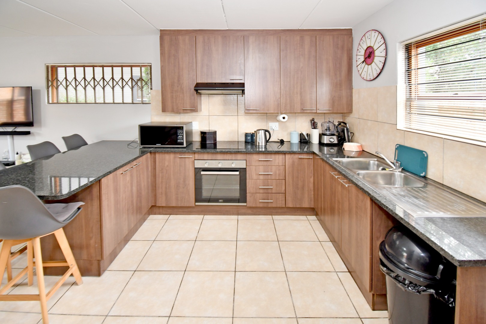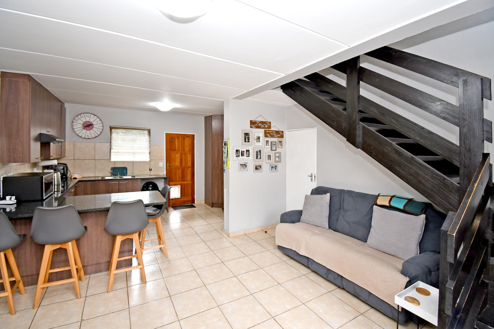 Welcome to this modern 3-bedroom, 2-bathroom residence, perfectly situated within a secure estate in the desirable Airfield suburb of Benoni, South Africa. This property presents a contemporary aesthetic with a well-maintained exterior featuring a mix of plaster and brick finishes, offering excellent kerb appeal. Inside, the home boasts a functional and inviting layout spanning 137 square metres. The open-plan design seamlessly integrates the spacious lounge with a well-appointed kitchen, which includes a convenient pantry. Sliding doors enhance the flow, connecting the interior living spaces to the private outdoor areas. The accommodation comprises three comfortable bedrooms, with one of the two bathrooms being an en-suite, providing added privacy and convenience for residents. Step outside to discover a private garden and a paved patio, ideal for relaxation or entertaining. The outdoor space is further enhanced by a gazebo, offering a shaded area perfect for al fresco dining and social gatherings. The property includes two integrated garages and additional parking, ensuring ample space for vehicles. This home is also pet-friendly, accommodating furry family members. Prioritising both security and sustainability, this residence is located within a security estate, benefiting from electric fencing, an access gate, and an intercom system for peace of mind. Modern amenities such as a battery inverter and solar panels contribute to energy efficiency, while fibre connectivity ensures high-speed internet access. Airfield, Benoni, offers a well-established suburban environment with convenient access to local amenities and transport routes, making it a desirable location for families and professionals alike. Key Features: * 3 Bedrooms, 2 Bathrooms (1 En-suite) * Open-plan Lounge & Kitchen with Pantry * Private Garden & Paved Patio with Gazebo * Double Garages & Additional Parking * Security Estate with Electric Fencing & Access Gate * Battery Inverter, Solar Panels & Fibre Ready * Pet-Friendly Environment