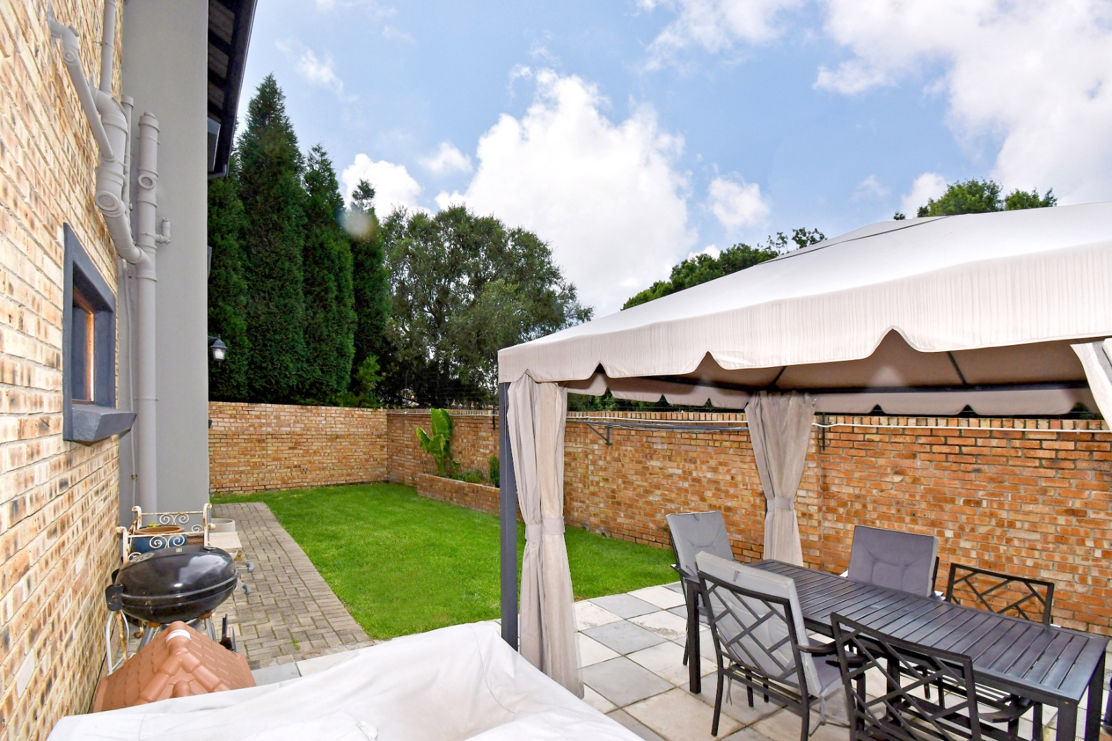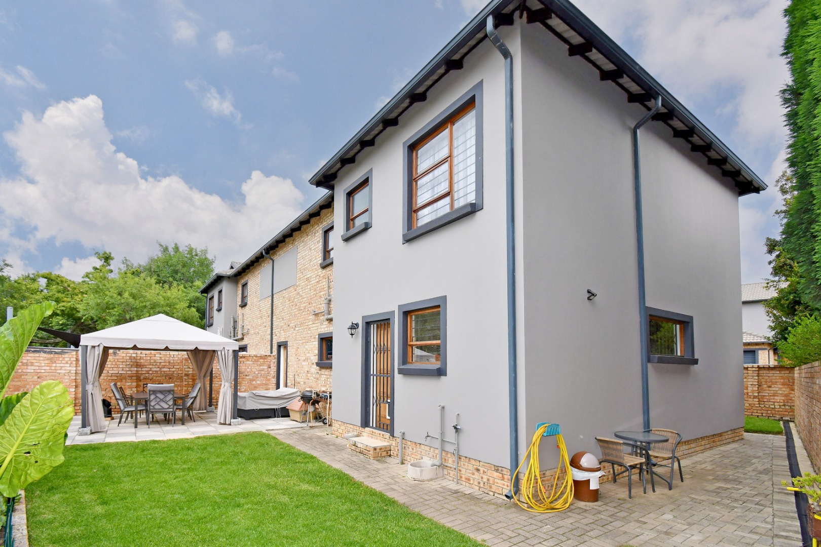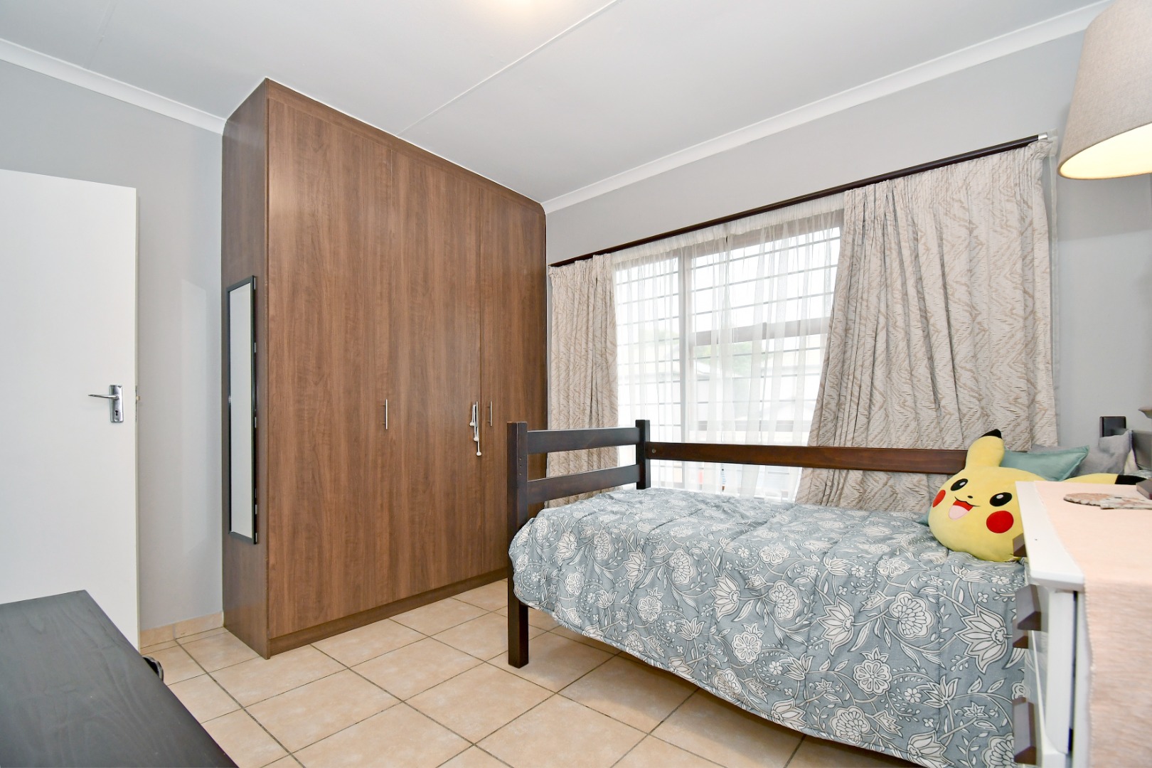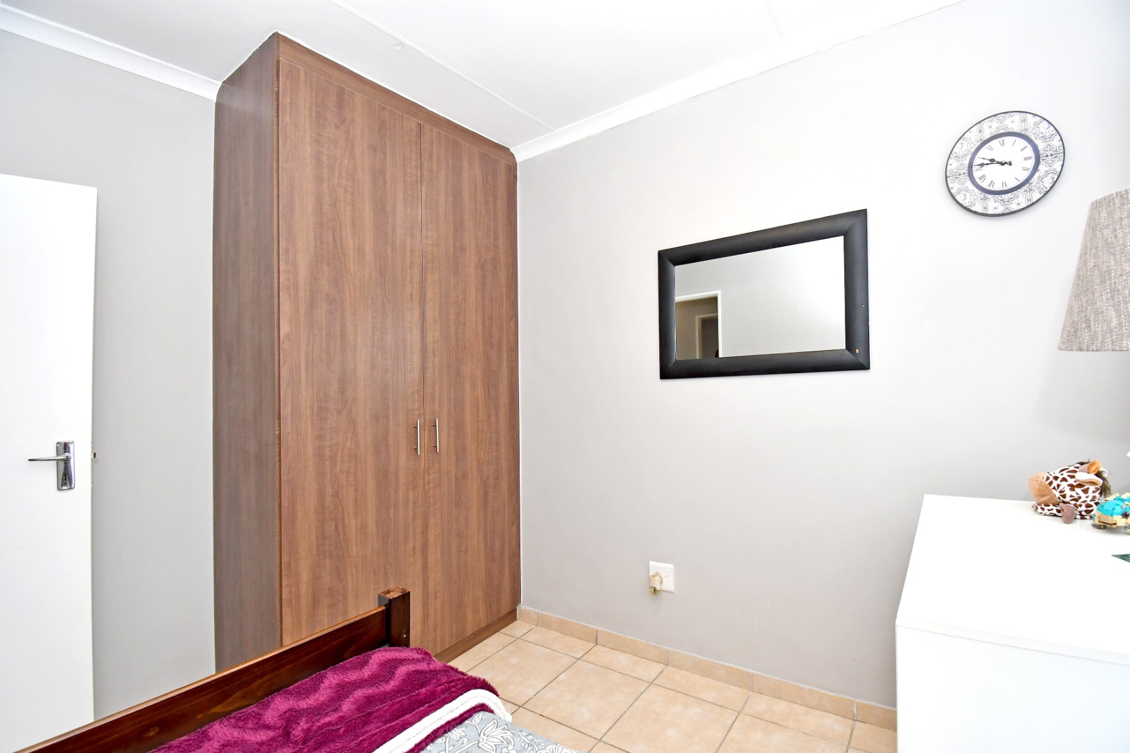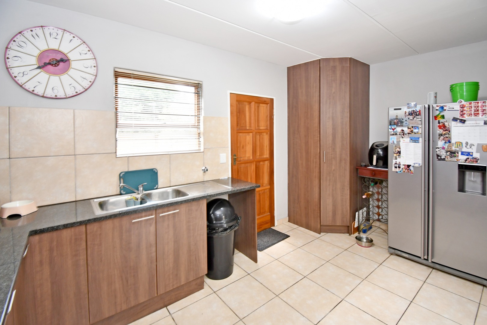 Welcome to this modern 3-bedroom, 2-bathroom residence, perfectly situated within a secure estate in the desirable Airfield suburb of Benoni, South Africa. This property presents a contemporary aesthetic with a well-maintained exterior featuring a mix of plaster and brick finishes, offering excellent kerb appeal. Inside, the home boasts a functional and inviting layout spanning 137 square metres. The open-plan design seamlessly integrates the spacious lounge with a well-appointed kitchen, which includes a convenient pantry. Sliding doors enhance the flow, connecting the interior living spaces to the private outdoor areas. The accommodation comprises three comfortable bedrooms, with one of the two bathrooms being an en-suite, providing added privacy and convenience for residents. Step outside to discover a private garden and a paved patio, ideal for relaxation or entertaining. The outdoor space is further enhanced by a gazebo, offering a shaded area perfect for al fresco dining and social gatherings. The property includes two integrated garages and additional parking, ensuring ample space for vehicles. This home is also pet-friendly, accommodating furry family members. Prioritising both security and sustainability, this residence is located within a security estate, benefiting from electric fencing, an access gate, and an intercom system for peace of mind. Modern amenities such as a battery inverter and solar panels contribute to energy efficiency, while fibre connectivity ensures high-speed internet access. Airfield, Benoni, offers a well-established suburban environment with convenient access to local amenities and transport routes, making it a desirable location for families and professionals alike. Key Features: * 3 Bedrooms, 2 Bathrooms (1 En-suite) * Open-plan Lounge & Kitchen with Pantry * Private Garden & Paved Patio with Gazebo * Double Garages & Additional Parking * Security Estate with Electric Fencing & Access Gate * Battery Inverter, Solar Panels & Fibre Ready * Pet-Friendly Environment