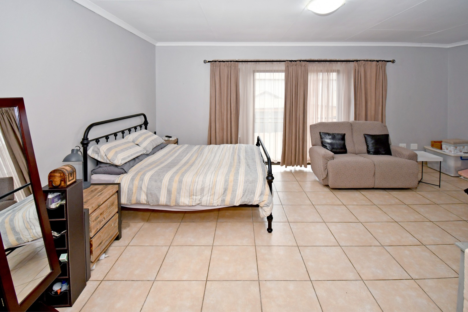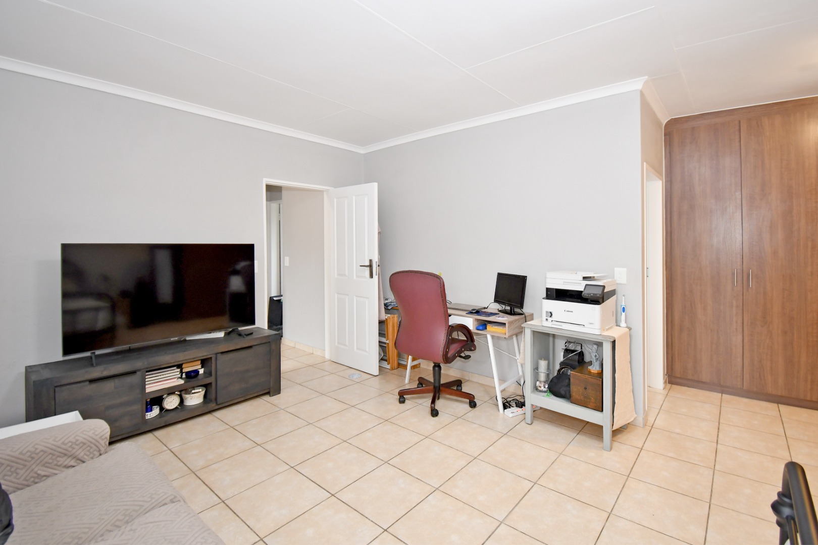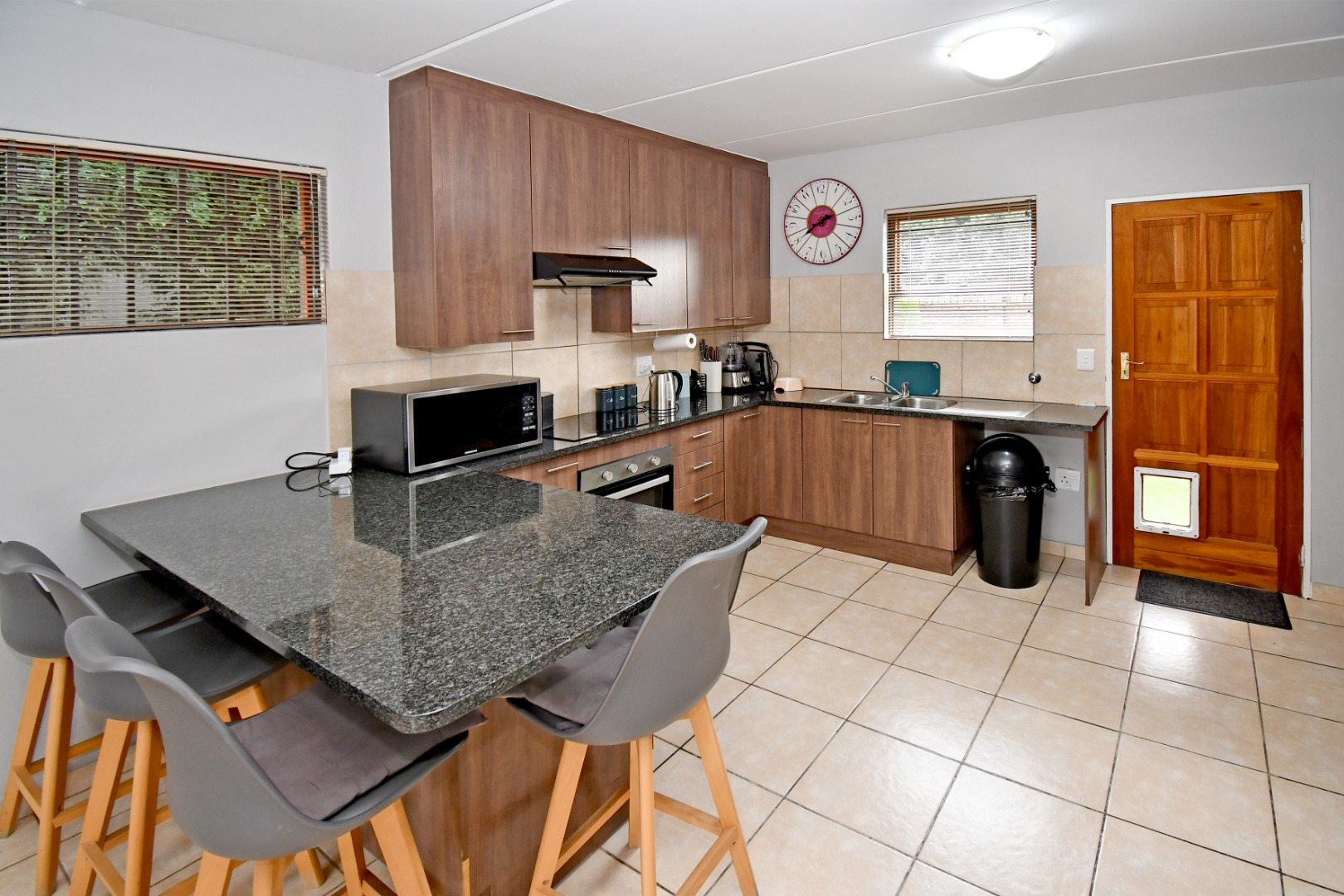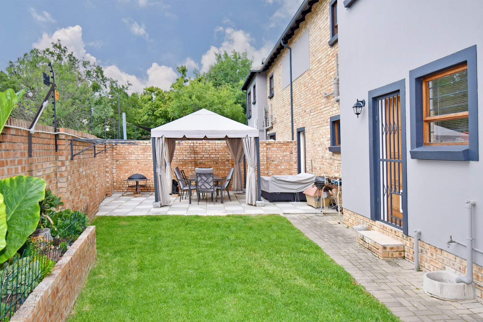 Welcome to this modern 3-bedroom, 2-bathroom residence, perfectly situated within a secure estate in the desirable Airfield suburb of Benoni, South Africa. This property presents a contemporary aesthetic with a well-maintained exterior featuring a mix of plaster and brick finishes, offering excellent kerb appeal. Inside, the home boasts a functional and inviting layout spanning 137 square metres. The open-plan design seamlessly integrates the spacious lounge with a well-appointed kitchen, which includes a convenient pantry. Sliding doors enhance the flow, connecting the interior living spaces to the private outdoor areas. The accommodation comprises three comfortable bedrooms, with one of the two bathrooms being an en-suite, providing added privacy and convenience for residents. Step outside to discover a private garden and a paved patio, ideal for relaxation or entertaining. The outdoor space is further enhanced by a gazebo, offering a shaded area perfect for al fresco dining and social gatherings. The property includes two integrated garages and additional parking, ensuring ample space for vehicles. This home is also pet-friendly, accommodating furry family members. Prioritising both security and sustainability, this residence is located within a security estate, benefiting from electric fencing, an access gate, and an intercom system for peace of mind. Modern amenities such as a battery inverter and solar panels contribute to energy efficiency, while fibre connectivity ensures high-speed internet access. Airfield, Benoni, offers a well-established suburban environment with convenient access to local amenities and transport routes, making it a desirable location for families and professionals alike. Key Features: * 3 Bedrooms, 2 Bathrooms (1 En-suite) * Open-plan Lounge & Kitchen with Pantry * Private Garden & Paved Patio with Gazebo * Double Garages & Additional Parking * Security Estate with Electric Fencing & Access Gate * Battery Inverter, Solar Panels & Fibre Ready * Pet-Friendly Environment