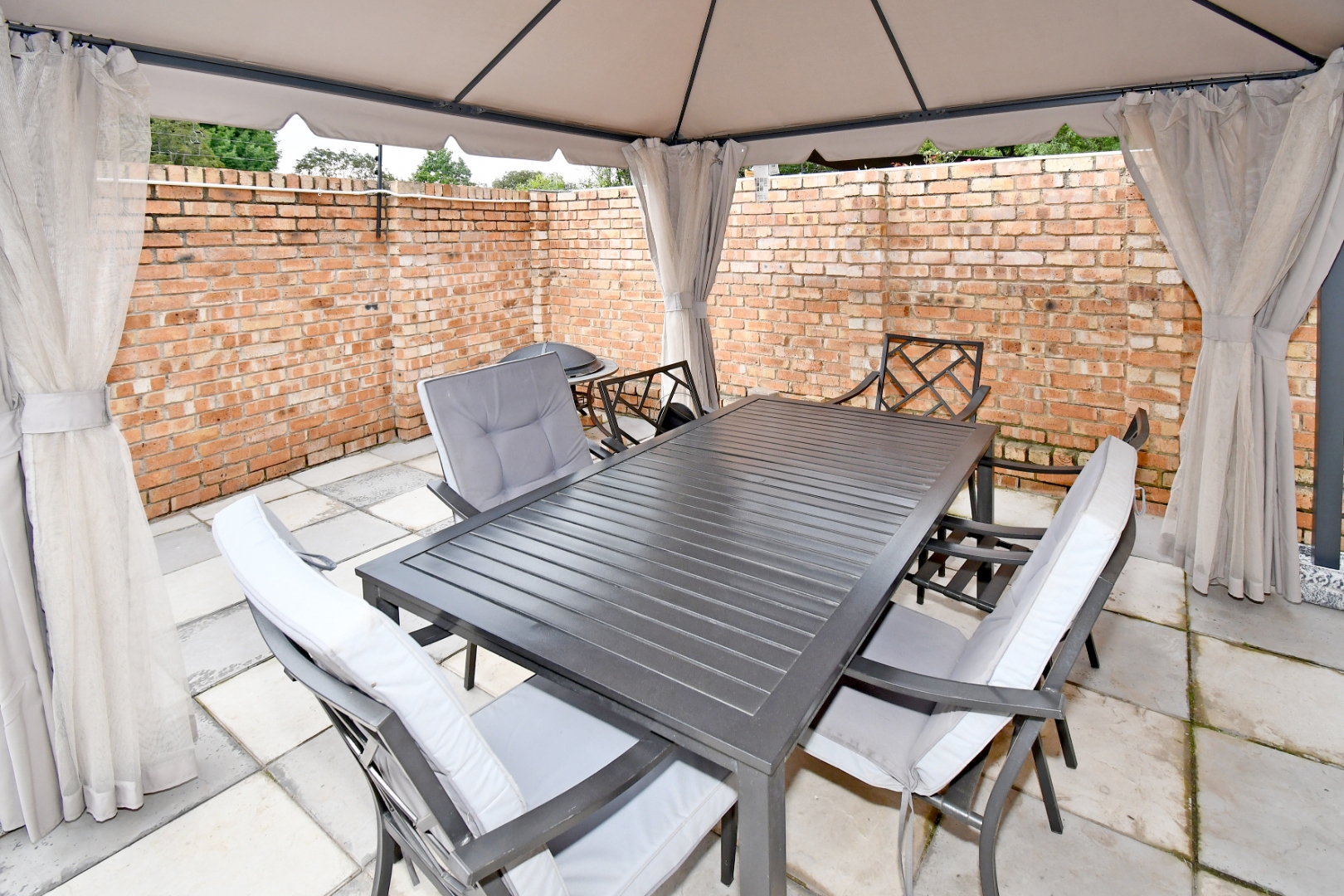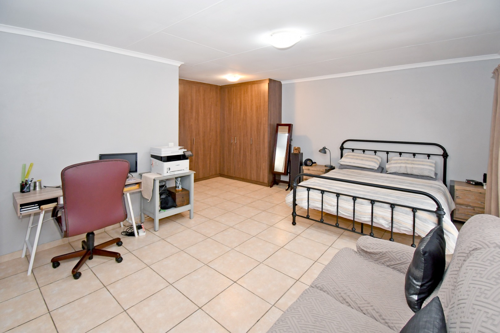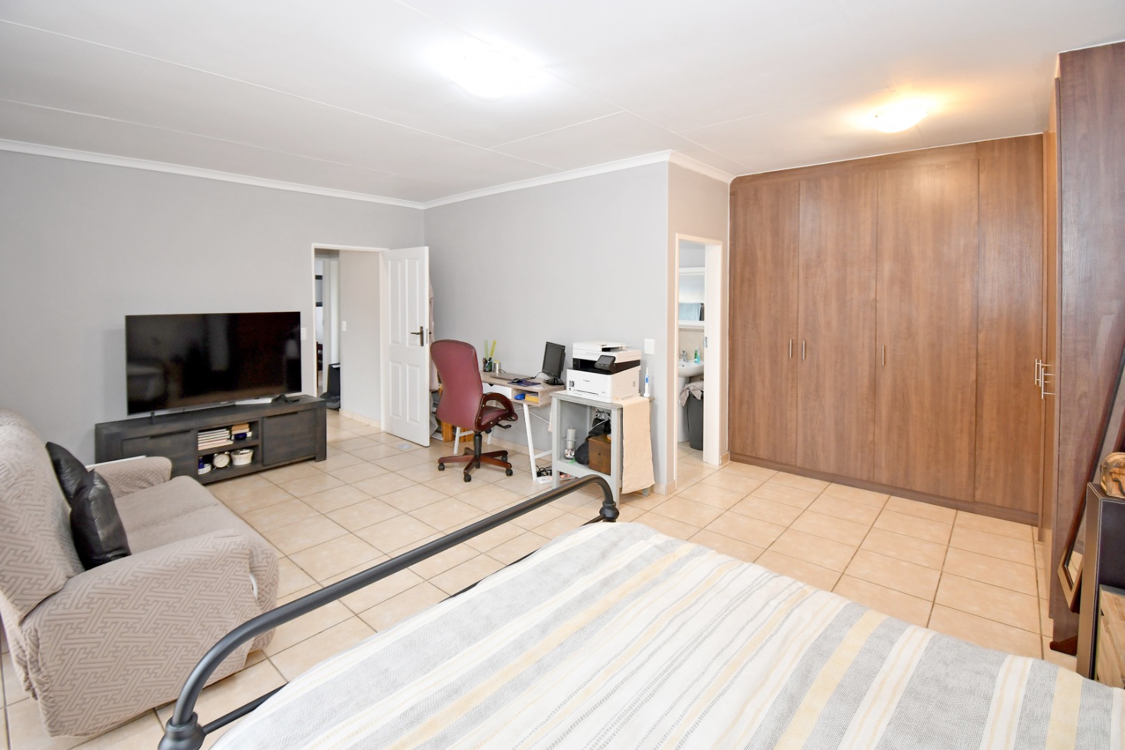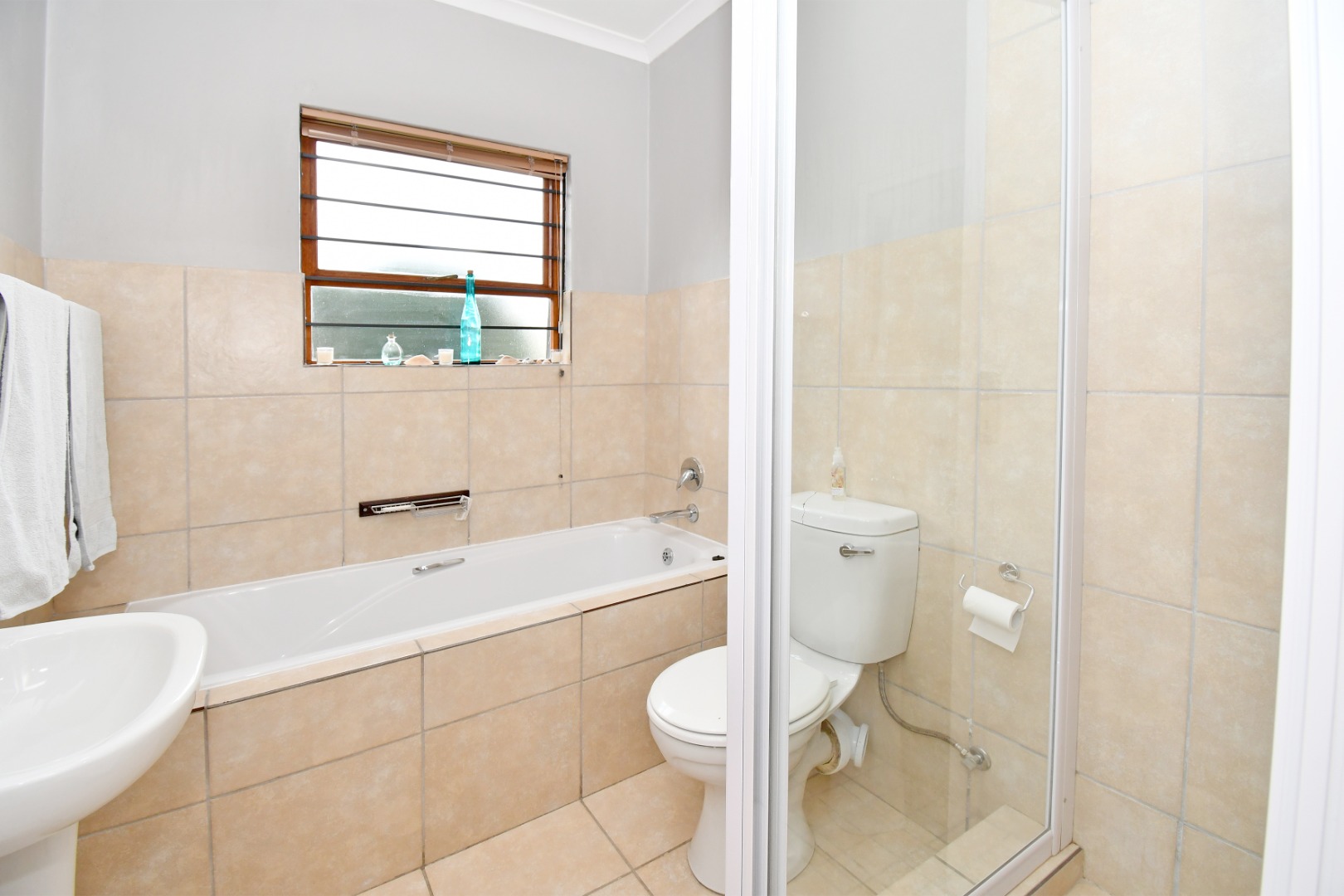 Welcome to this modern 3-bedroom, 2-bathroom residence, perfectly situated within a secure estate in the desirable Airfield suburb of Benoni, South Africa. This property presents a contemporary aesthetic with a well-maintained exterior featuring a mix of plaster and brick finishes, offering excellent kerb appeal. Inside, the home boasts a functional and inviting layout spanning 137 square metres. The open-plan design seamlessly integrates the spacious lounge with a well-appointed kitchen, which includes a convenient pantry. Sliding doors enhance the flow, connecting the interior living spaces to the private outdoor areas. The accommodation comprises three comfortable bedrooms, with one of the two bathrooms being an en-suite, providing added privacy and convenience for residents. Step outside to discover a private garden and a paved patio, ideal for relaxation or entertaining. The outdoor space is further enhanced by a gazebo, offering a shaded area perfect for al fresco dining and social gatherings. The property includes two integrated garages and additional parking, ensuring ample space for vehicles. This home is also pet-friendly, accommodating furry family members. Prioritising both security and sustainability, this residence is located within a security estate, benefiting from electric fencing, an access gate, and an intercom system for peace of mind. Modern amenities such as a battery inverter and solar panels contribute to energy efficiency, while fibre connectivity ensures high-speed internet access. Airfield, Benoni, offers a well-established suburban environment with convenient access to local amenities and transport routes, making it a desirable location for families and professionals alike. Key Features: * 3 Bedrooms, 2 Bathrooms (1 En-suite) * Open-plan Lounge & Kitchen with Pantry * Private Garden & Paved Patio with Gazebo * Double Garages & Additional Parking * Security Estate with Electric Fencing & Access Gate * Battery Inverter, Solar Panels & Fibre Ready * Pet-Friendly Environment