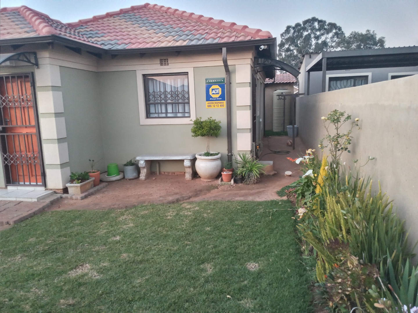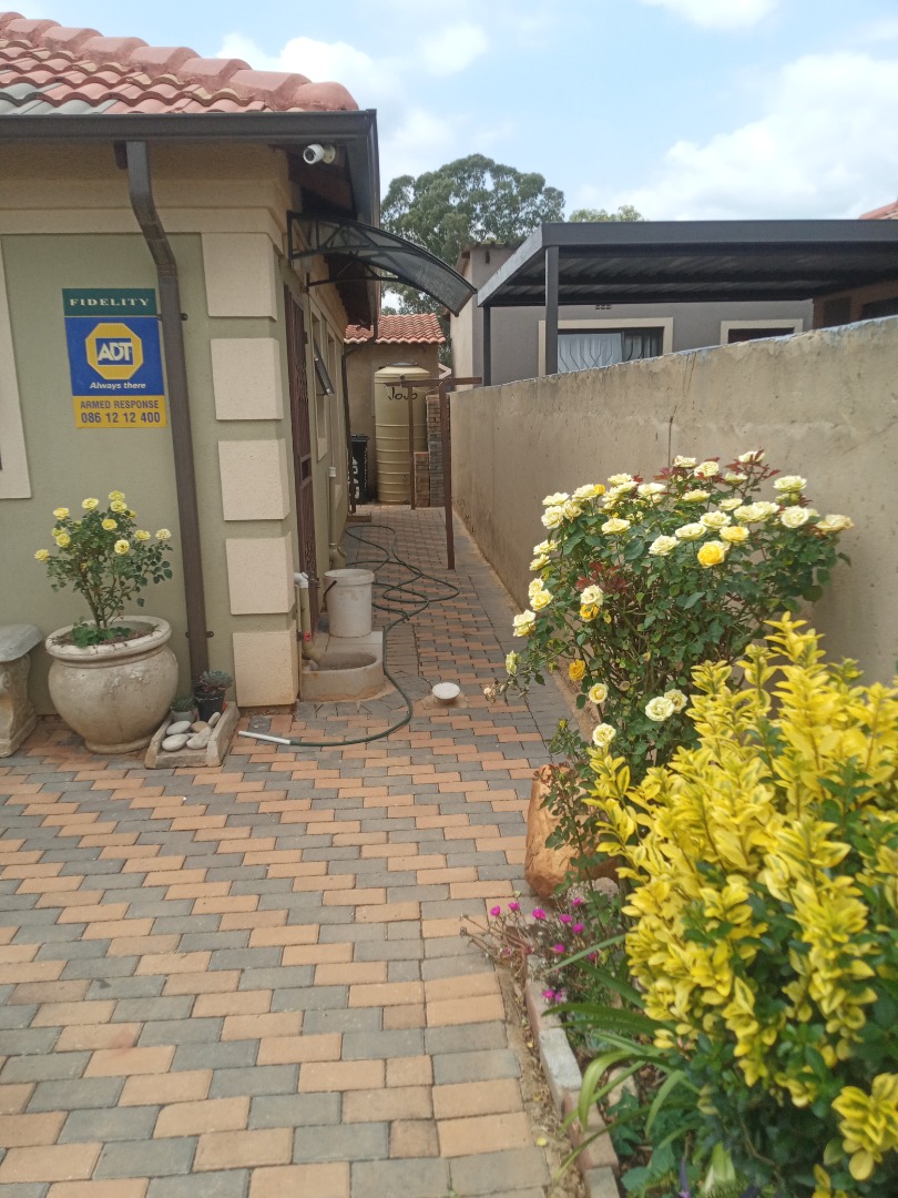 Discover this charming and secure residential property located in Alliance, Benoni. Boasting a modern aesthetic with a tiled roof and neat exterior paintwork, this home immediately impresses with its well-maintained appearance. The property features a secure perimeter, including a substantial metal gate and high boundary walls, ensuring privacy and peace of mind. Spanning a comfortable 125 sqm, the interior offers a practical layout designed for everyday living. It comprises three well-proportioned bedrooms and two bathrooms, with one being an en-suite for added convenience. A dedicated lounge area provides a comfortable space for relaxation, complemented by a functional kitchen, ready for your culinary endeavours. Outside, the 252 sqm erf provides a compact yet functional outdoor environment. Enjoy the small, neatly kept lawn and garden areas, perfect for a touch of greenery. The property benefits from a covered carport, offering shelter for vehicles, with ample open parking space for up to three vehicles in total. A paved walkway leads to the front door, enhancing the home's welcoming appeal. Security is a key feature, with robust measures including security gates on doors, burglar bars on windows, ADT signage, and CCTV surveillance, providing a safe living environment. Practical additions like a large water storage tank and a visible solar water heater contribute to the home's efficiency and sustainability, offering potential savings on utility costs. Situated in the established suburb of Alliance, Benoni, this property offers convenient access to local amenities and transport routes. Benoni is a vibrant city known for its family-friendly atmosphere and community facilities, making it an ideal location for homeowners. Key Features: * 3 Bedrooms, 2 Bathrooms (1 en-suite) * 1 Lounge, 1 Kitchen * 125 sqm Floor Size on 252 sqm Erf * Covered Carport & 3 Parking Spaces * Enhanced Security: Security Gates, Burglar Bars, CCTV, ADT * Water Storage Tank & Solar Water Heating * Neat Exterior & Small Garden Areas * Gated Access & High Boundary Walls