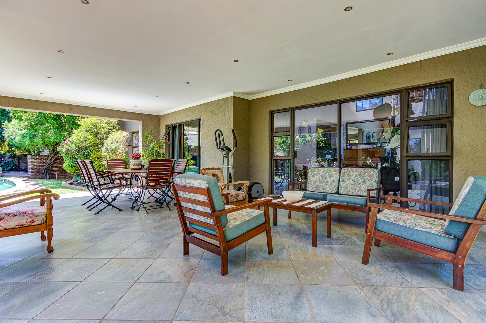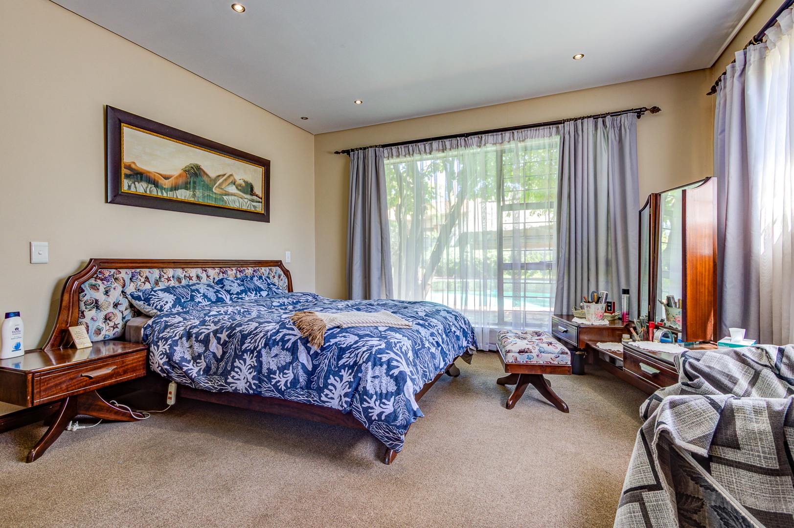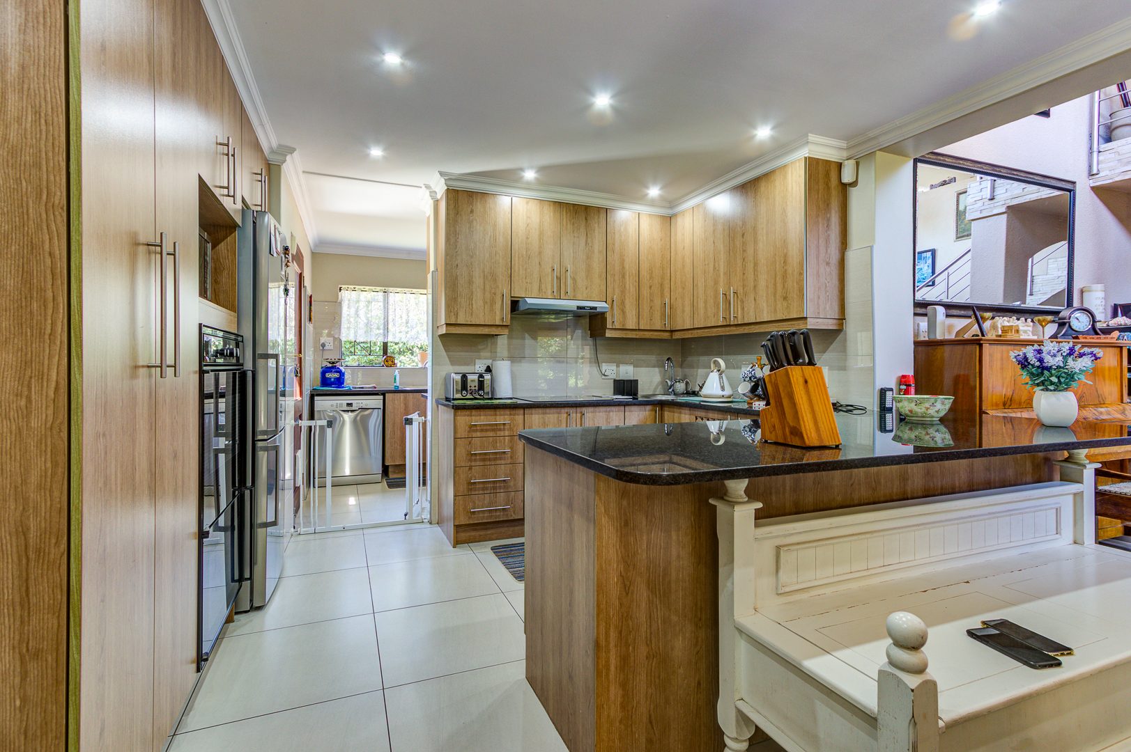Discover this spacious residential property for sale, nestled within a secure gated community in the desirable suburban area of Alphen Park, Benoni, South Africa. This family home offers an expansive 1318 sqm erf, providing ample space for comfortable living and outdoor enjoyment. The interior boasts five well-proportioned bedrooms and two bathrooms, including a private ensuite for added convenience. The layout features a single kitchen, a dedicated dining room, and a comfortable lounge, designed with an open-plan flow that enhances connectivity. A dedicated study provides an ideal space for work or quiet contemplation, catering to modern lifestyle needs. Outdoor living is a highlight, with a private swimming pool, a welcoming patio, and a lapa perfect for entertaining. The property includes a well-maintained garden and paved areas, complementing the exterior appeal. Practical amenities comprise two garages and four additional parking spaces, ensuring ample accommodation for vehicles. Staff quarters, complete with domestic rooms and outside toilets, add to the home's functionality, and pets are welcome. Security is paramount, with features such as 24-hour security, an alarm system, an access gate, a security gate, and a fence, all supported by an intercom system. The home is equipped with fibre connectivity for high-speed internet and a solar geyser, promoting energy efficiency. Satellite dish access is also available, ensuring comprehensive entertainment options. Key Features: * Five Bedrooms, Two Bathrooms (One Ensuite) * Open-Plan Living with Lounge, Dining Room, and Kitchen * Dedicated Study * Private Swimming Pool, Patio, and Lapa * Two Garages and Four Parking Spaces * Staff Quarters with Domestic Rooms and Outside Toilets * 24-Hour Security, Alarm System, Access Gate, Security Gate, Fence, Intercom * Fibre Connectivity and Solar Geyser * Pet-Friendly Garden