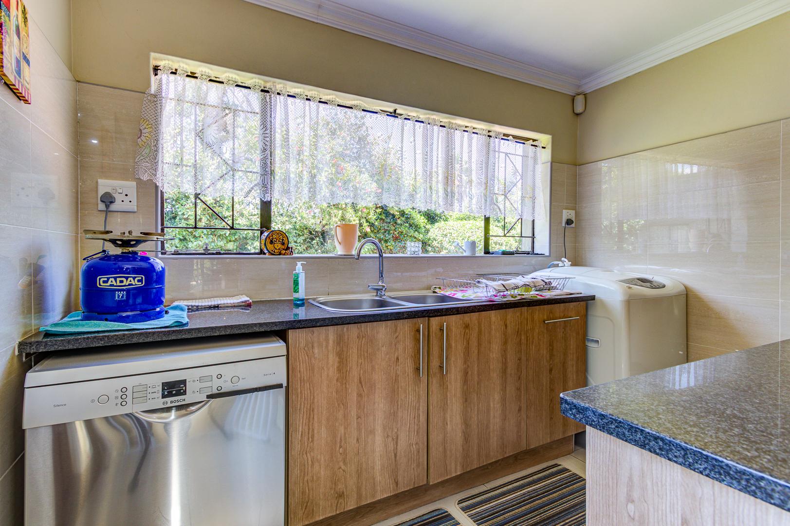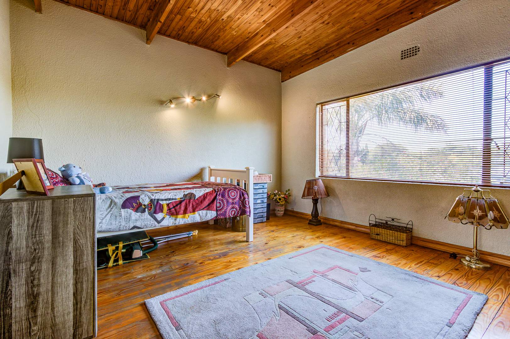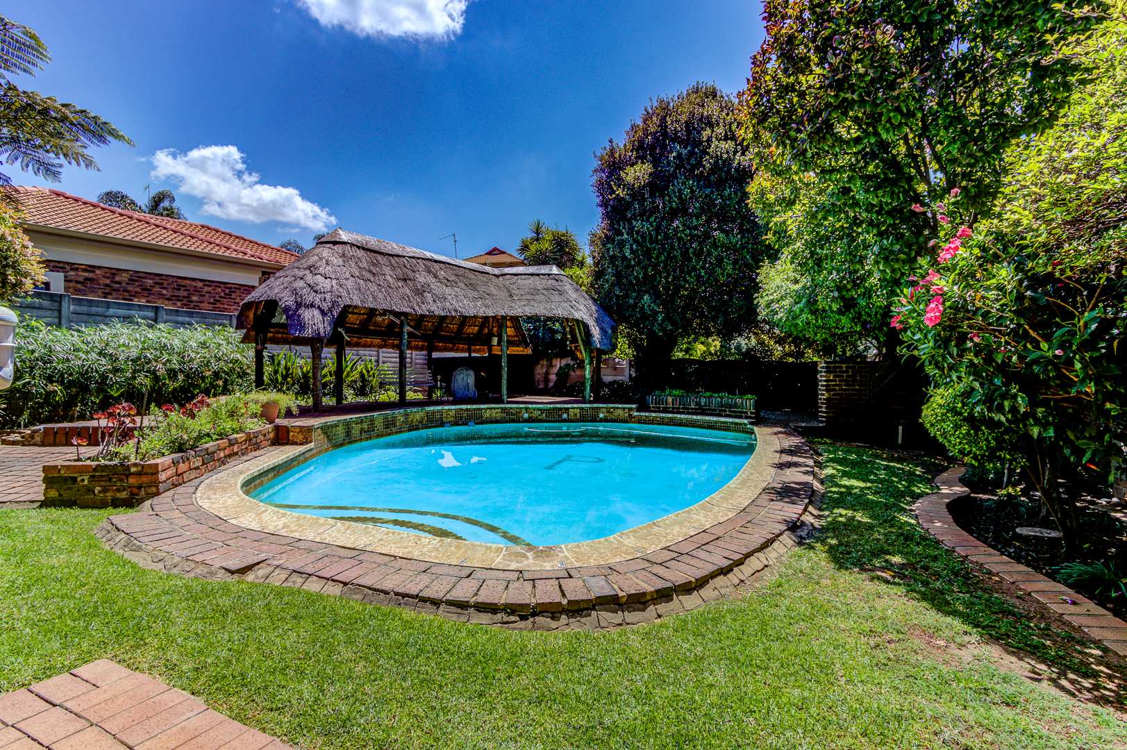 Discover this spacious residential property for sale, nestled within a secure gated community in the desirable suburban area of Alphen Park, Benoni, South Africa. This family home offers an expansive 1318 sqm erf, providing ample space for comfortable living and outdoor enjoyment. The interior boasts five well-proportioned bedrooms and two bathrooms, including a private ensuite for added convenience. The layout features a single kitchen, a dedicated dining room, and a comfortable lounge, designed with an open-plan flow that enhances connectivity. A dedicated study provides an ideal space for work or quiet contemplation, catering to modern lifestyle needs. Outdoor living is a highlight, with a private swimming pool, a welcoming patio, and a lapa perfect for entertaining. The property includes a well-maintained garden and paved areas, complementing the exterior appeal. Practical amenities comprise two garages and four additional parking spaces, ensuring ample accommodation for vehicles. Staff quarters, complete with domestic rooms and outside toilets, add to the home's functionality, and pets are welcome. Security is paramount, with features such as 24-hour security, an alarm system, an access gate, a security gate, and a fence, all supported by an intercom system. The home is equipped with fibre connectivity for high-speed internet and a solar geyser, promoting energy efficiency. Satellite dish access is also available, ensuring comprehensive entertainment options. Key Features: * Five Bedrooms, Two Bathrooms (One Ensuite) * Open-Plan Living with Lounge, Dining Room, and Kitchen * Dedicated Study * Private Swimming Pool, Patio, and Lapa * Two Garages and Four Parking Spaces * Staff Quarters with Domestic Rooms and Outside Toilets * 24-Hour Security, Alarm System, Access Gate, Security Gate, Fence, Intercom * Fibre Connectivity and Solar Geyser * Pet-Friendly Garden