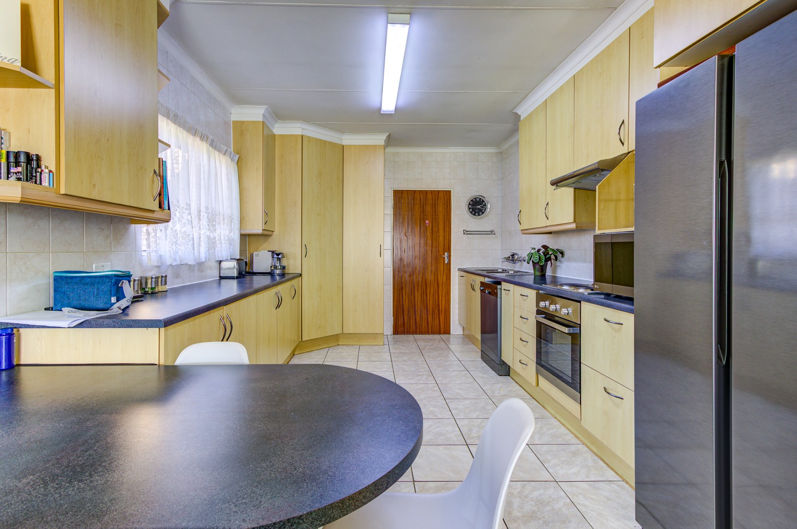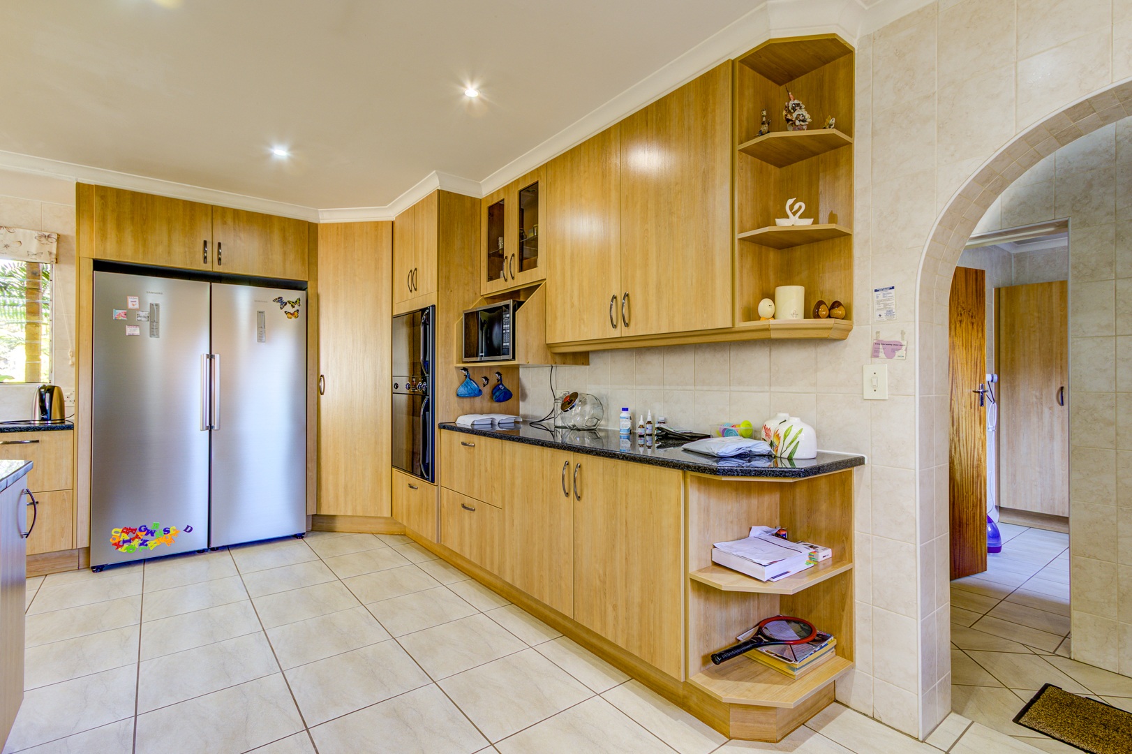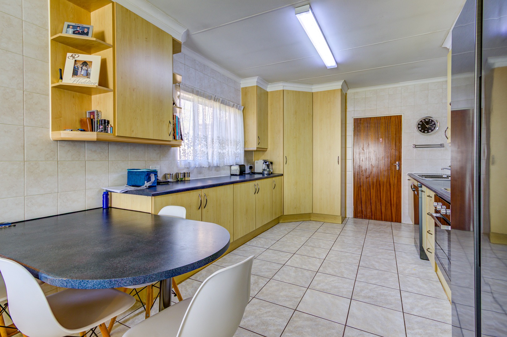 From the moment you enter through the spacious foyer, you're greeted by an elegant sunken lounge to your right and a chef’s dream kitchen to your left. The well-appointed kitchen features granite countertops, an eye-level oven, ample cabinetry, a breakfast counter, separate scullery, and a laundry room—perfect for both everyday living and entertaining.