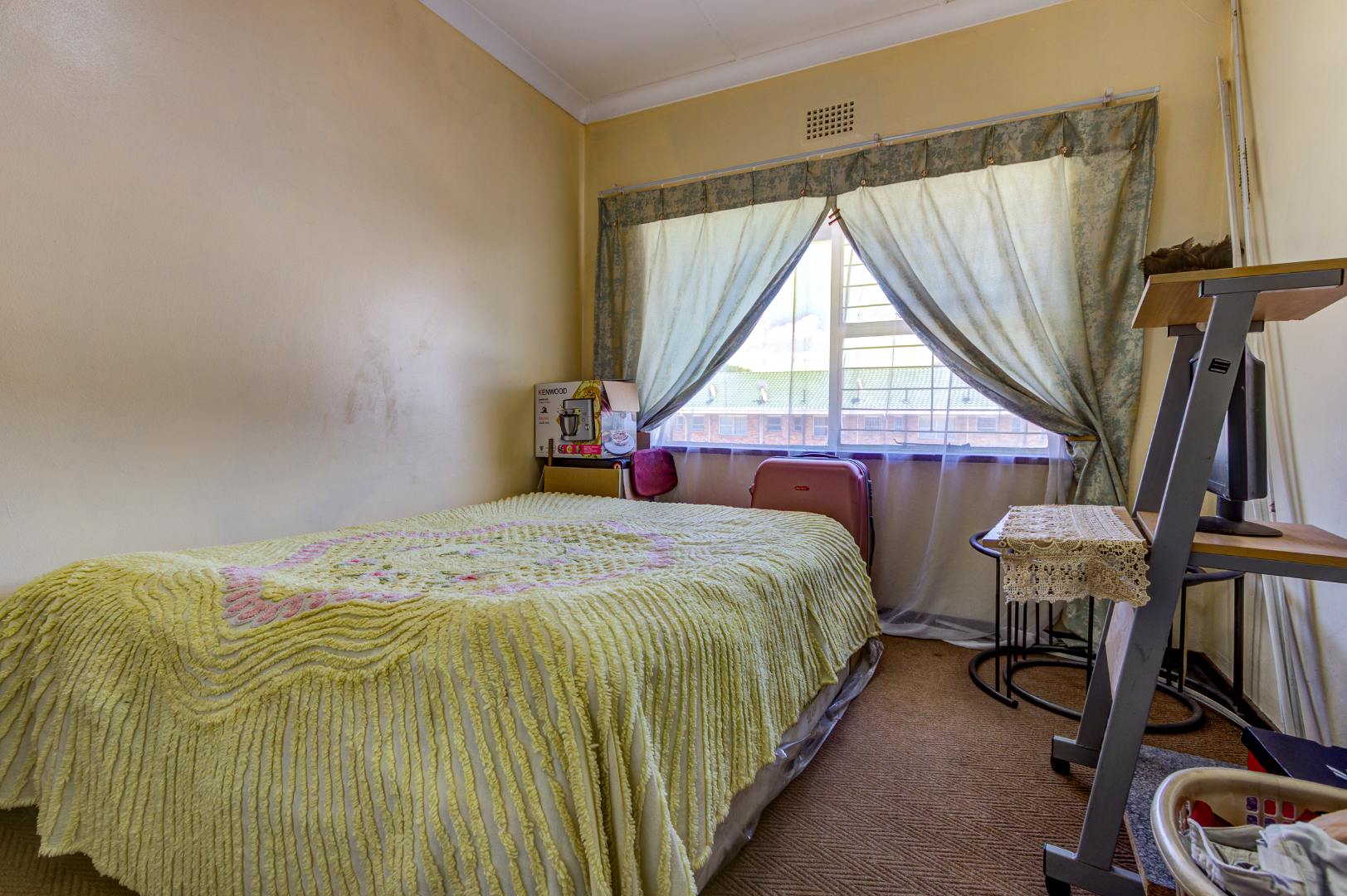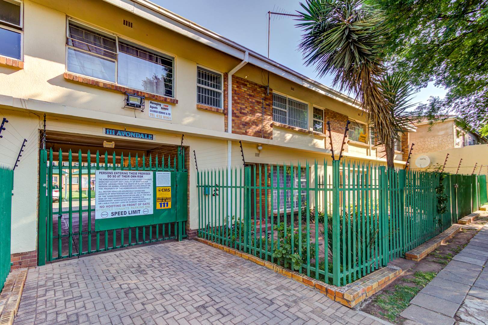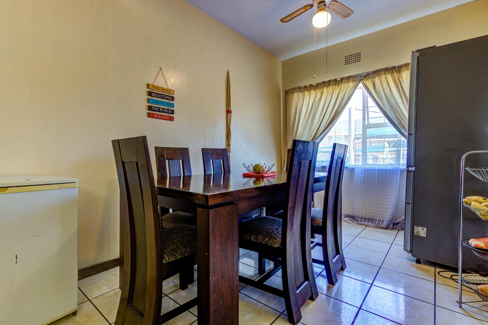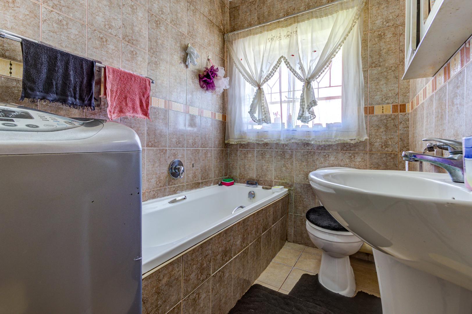 Discover this inviting 110 sqm apartment located in the established Avondale complex, offering a blend of comfort and security in Benoni Central. The property immediately impresses with its well-maintained exterior, featuring a classic brick and painted facade, green tiled roof, and a landscaped front area with mature trees. Enhanced security is a key feature, evident through the gated entrance, robust metal fencing, electric wiring, and window burglar bars, ensuring peace of mind for residents. Step inside to a functional and welcoming interior. The spacious lounge provides ample room for relaxation and entertaining, complemented by a dedicated dining area perfect for family meals. The kitchen is well-equipped with light wood-look cabinetry, durable tiled flooring, and includes a built-in oven and hob, offering practical space for culinary pursuits. Natural light streams into the living areas, creating a bright and airy atmosphere. This apartment boasts three comfortable bedrooms, providing generous accommodation for a family or individuals seeking extra space. A well-appointed bathroom, fully tiled for easy maintenance, features a bathtub, toilet, and basin, with the added convenience of space for a washing machine. The tiled flooring extends throughout the main living areas, ensuring durability and ease of cleaning. Outdoor amenities include a single garage and an additional parking space, addressing practical needs. The complex also offers access to a garden area, providing a touch of greenery and outdoor enjoyment. This property benefits from its convenient location within the vibrant city of Benoni, South Africa, offering access to local amenities and transport links. Key Features: * Three spacious bedrooms * One well-appointed bathroom * Dedicated lounge and dining areas * Equipped kitchen with built-in oven and hob * Single garage and additional parking * Secure complex with access gate, electric fencing, and burglar bars * 110 sqm floor size * Access to a garden area