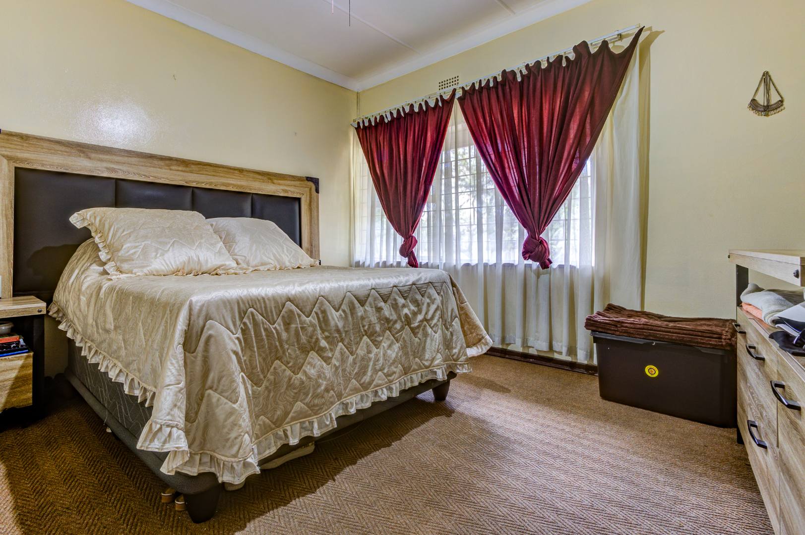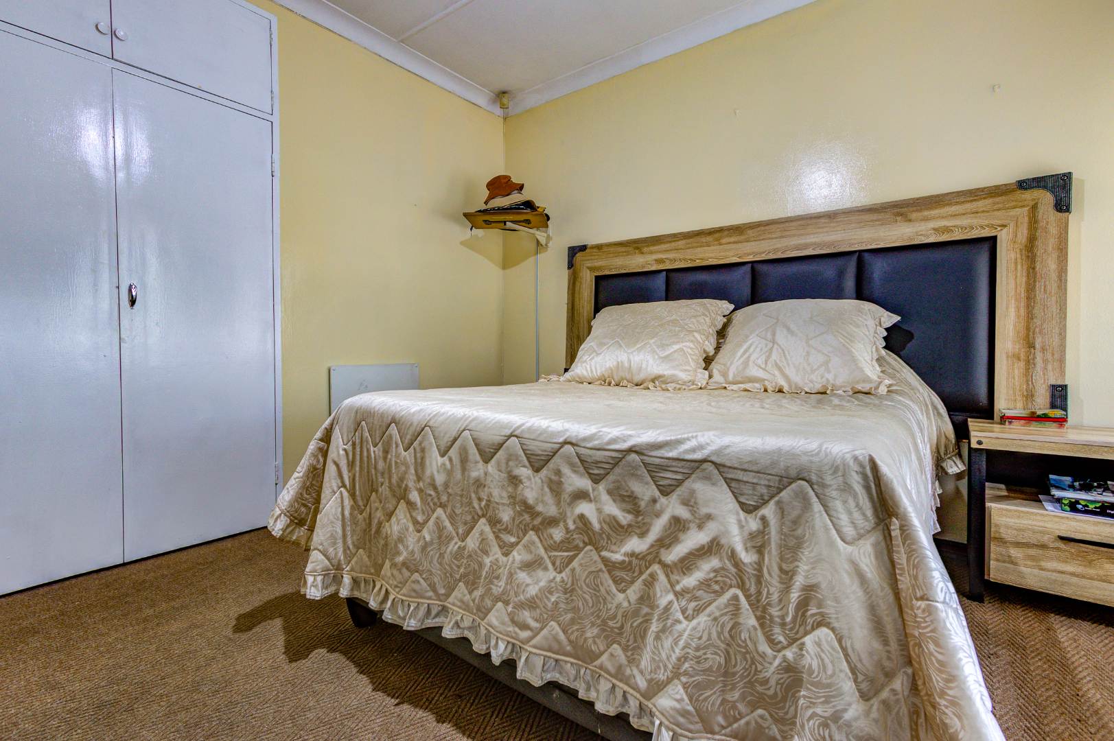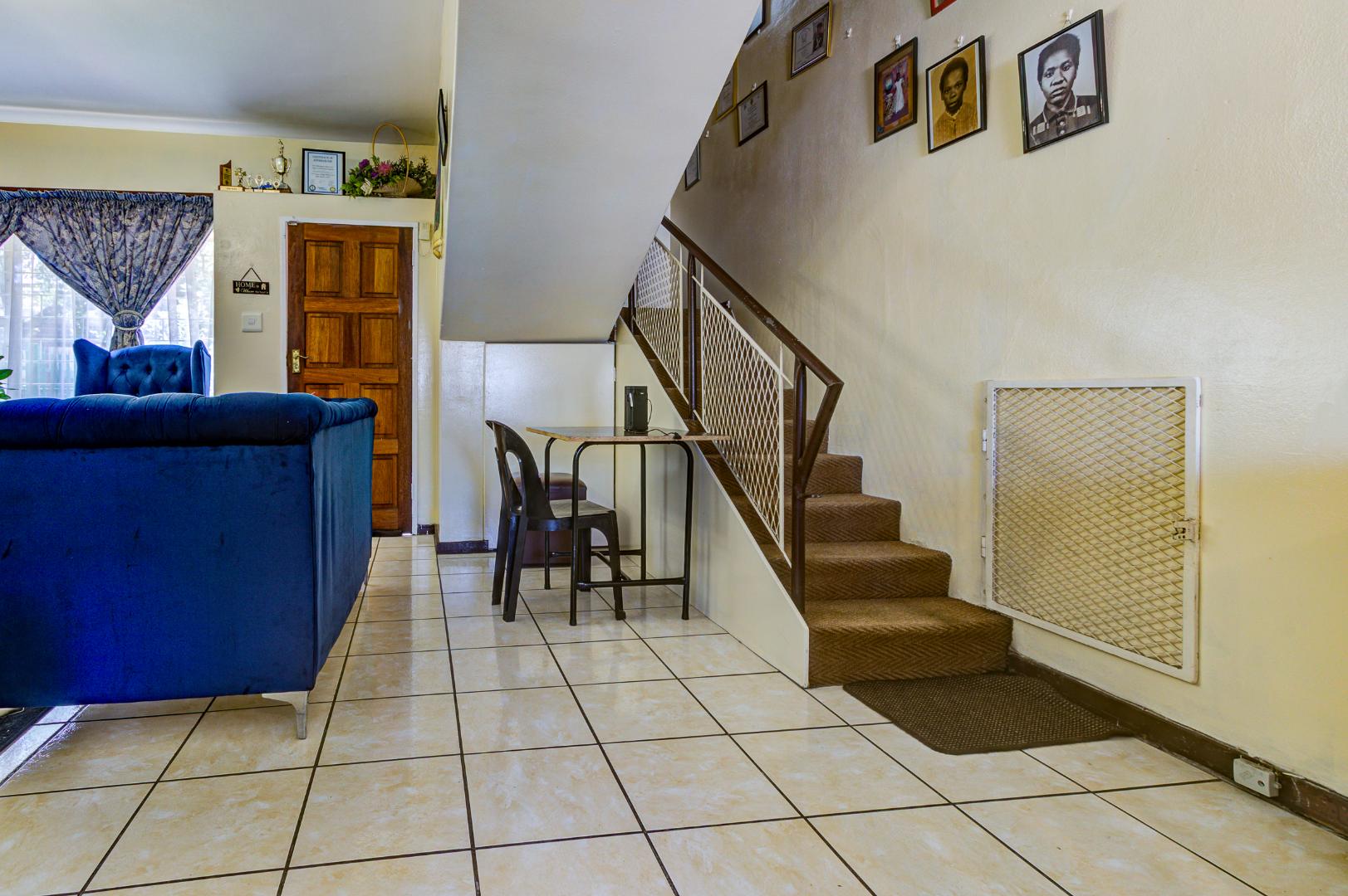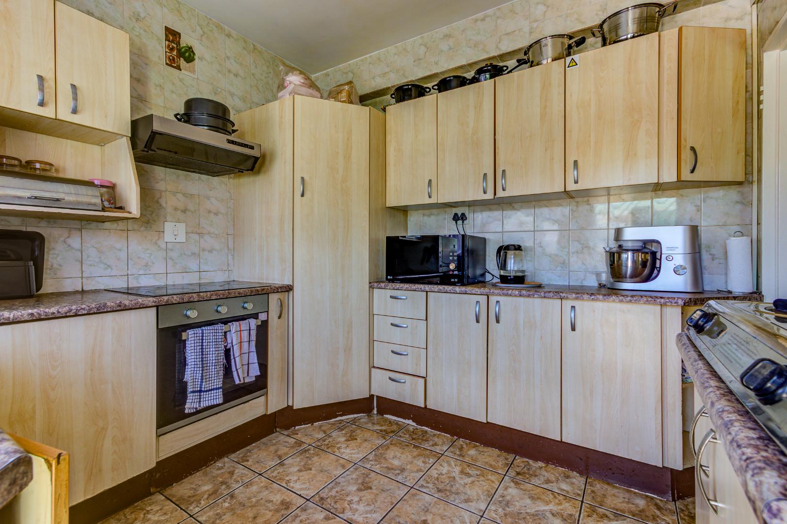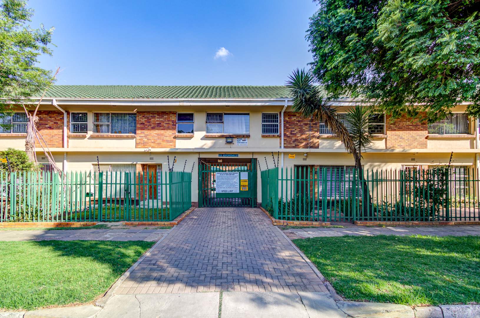Discover this inviting 110 sqm apartment located in the established Avondale complex, offering a blend of comfort and security in Benoni Central. The property immediately impresses with its well-maintained exterior, featuring a classic brick and painted facade, green tiled roof, and a landscaped front area with mature trees. Enhanced security is a key feature, evident through the gated entrance, robust metal fencing, electric wiring, and window burglar bars, ensuring peace of mind for residents. Step inside to a functional and welcoming interior. The spacious lounge provides ample room for relaxation and entertaining, complemented by a dedicated dining area perfect for family meals. The kitchen is well-equipped with light wood-look cabinetry, durable tiled flooring, and includes a built-in oven and hob, offering practical space for culinary pursuits. Natural light streams into the living areas, creating a bright and airy atmosphere. This apartment boasts three comfortable bedrooms, providing generous accommodation for a family or individuals seeking extra space. A well-appointed bathroom, fully tiled for easy maintenance, features a bathtub, toilet, and basin, with the added convenience of space for a washing machine. The tiled flooring extends throughout the main living areas, ensuring durability and ease of cleaning. Outdoor amenities include a single garage and an additional parking space, addressing practical needs. The complex also offers access to a garden area, providing a touch of greenery and outdoor enjoyment. This property benefits from its convenient location within the vibrant city of Benoni, South Africa, offering access to local amenities and transport links. Key Features: * Three spacious bedrooms * One well-appointed bathroom * Dedicated lounge and dining areas * Equipped kitchen with built-in oven and hob * Single garage and additional parking * Secure complex with access gate, electric fencing, and burglar bars * 110 sqm floor size * Access to a garden area
