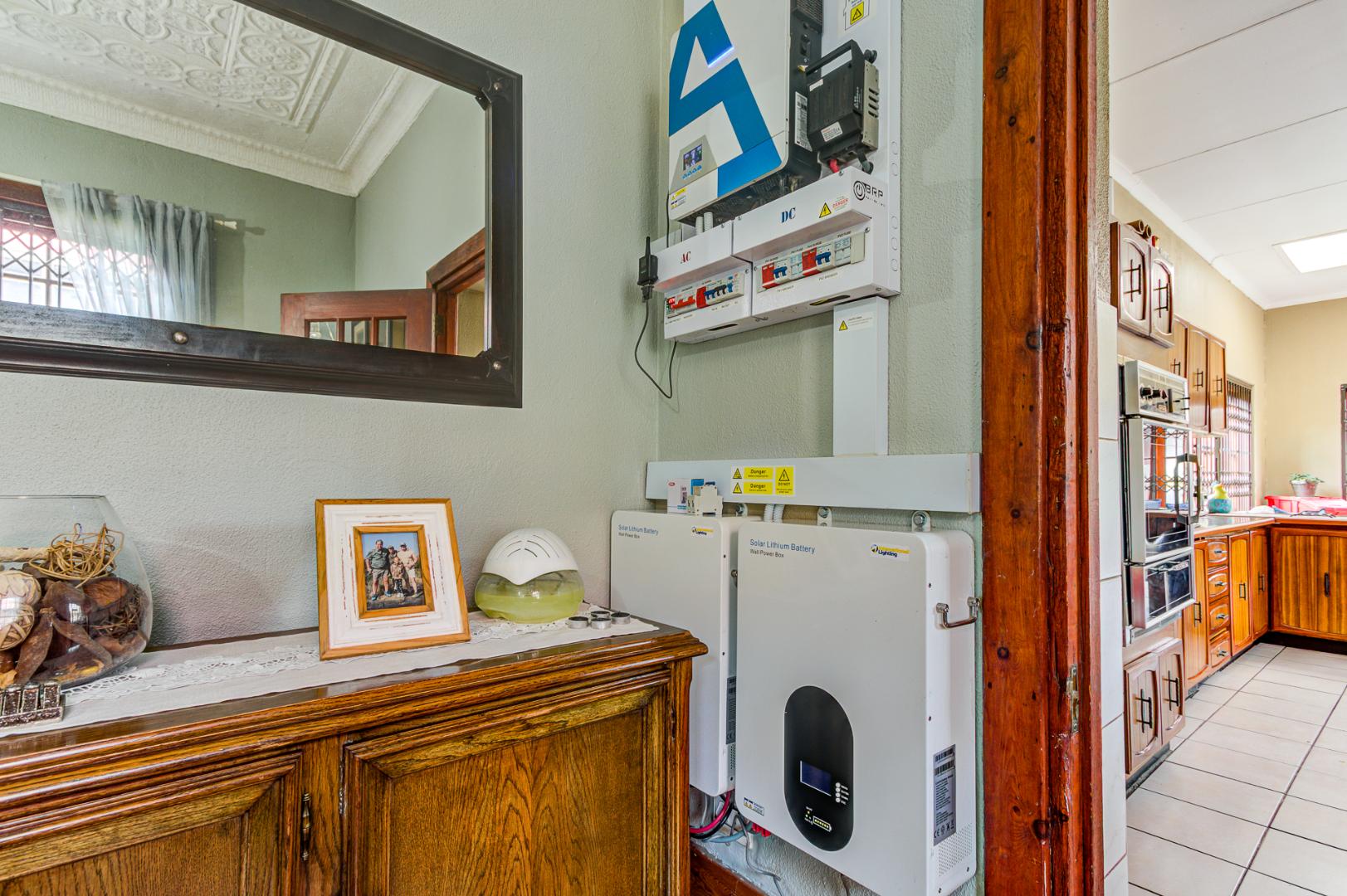 Security is a priority, with features such as electric fencing, burglar bars, a security gate, and a totally walled perimeter ensuring peace of mind. This home is also equipped with modern conveniences, including solar panels, a battery inverter, and a gas geyser, contributing to energy efficiency. Fibre internet connectivity is available, catering to contemporary lifestyle needs. Pets are welcome, making this an ideal choice for animal lovers. Please note that photo analysis was not possible for this listing.