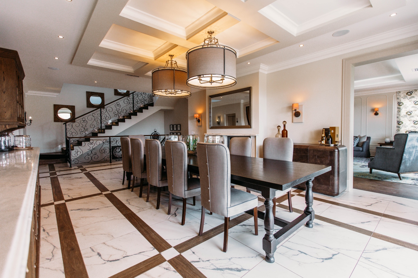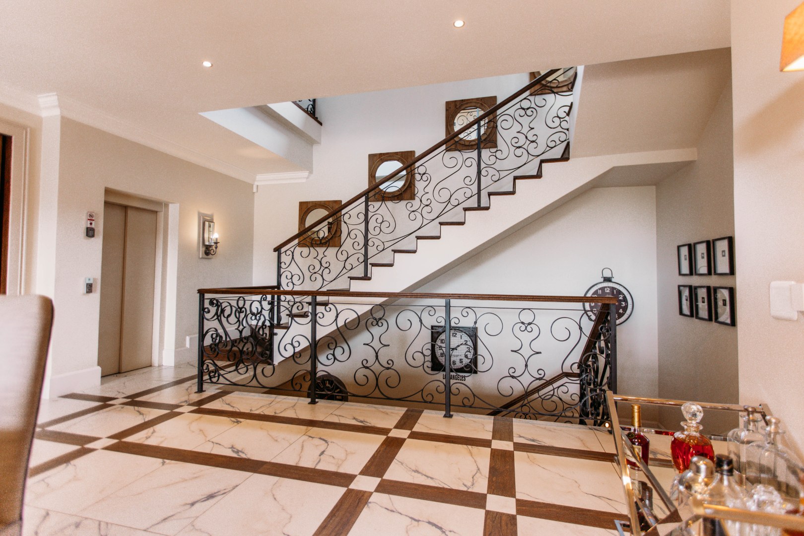 From here you can opt for the elevator or the beautifully designed wrought iron staircase to reach the other levels.