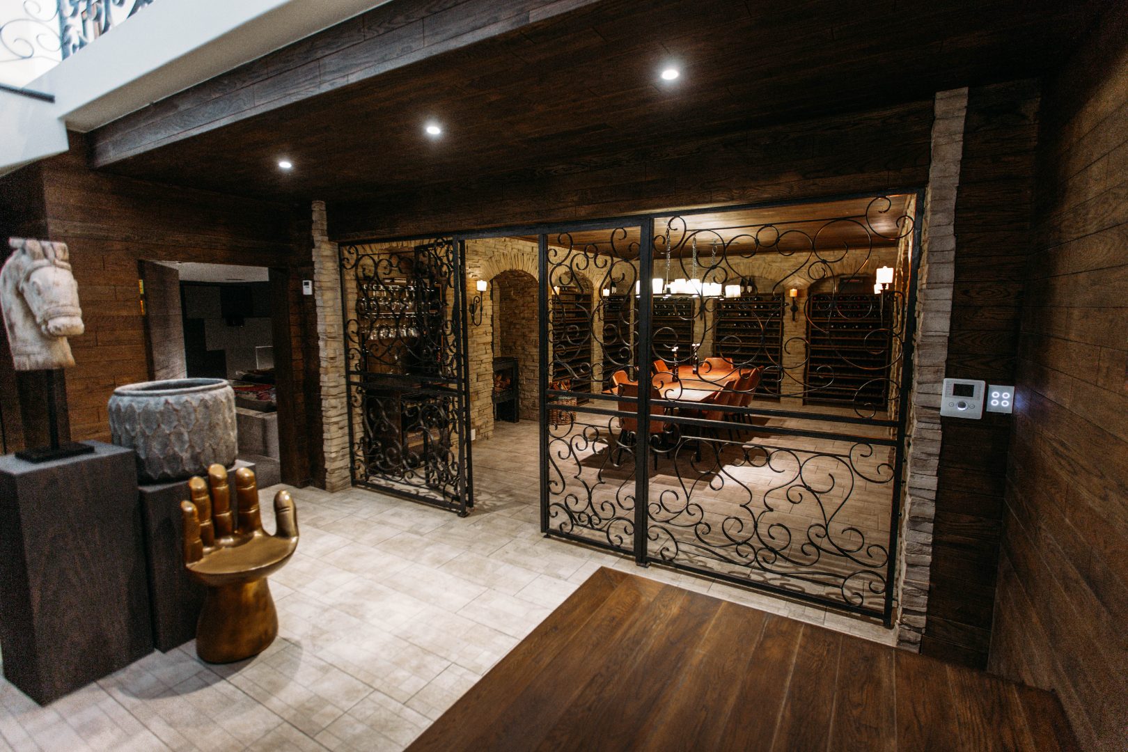 Using the elevator or staircase you enter the basement area with the wine cellar for the wine connoisseur as well as the sumptuous and comfortable movie theatre for total relaxation.