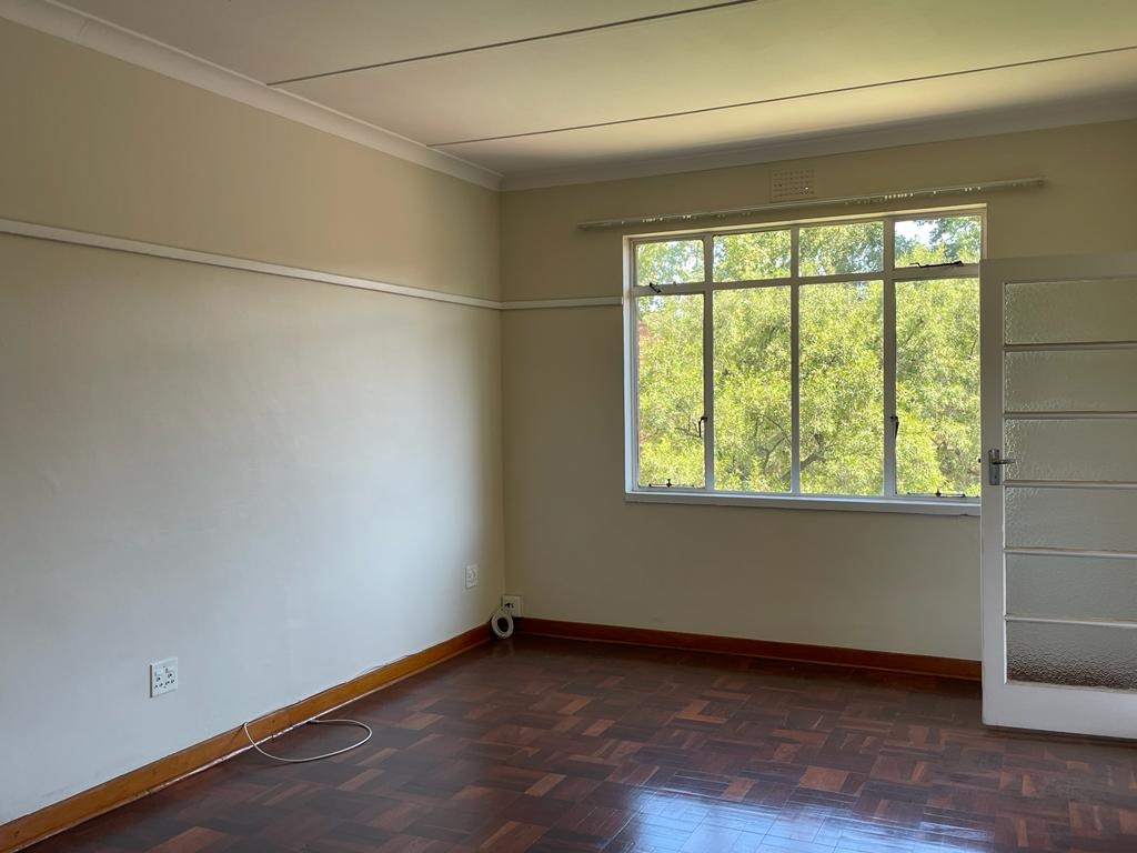 Sunny spacious lounge with wooden ( parquet ) floors opening to small balcony overlooking the communal garden.