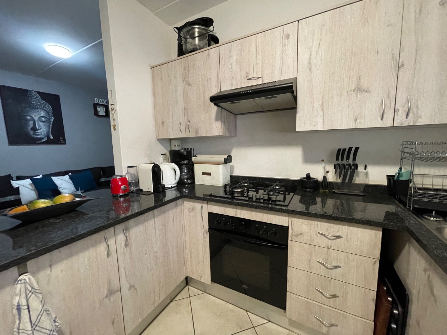 As you step inside, you'll immediately notice the bright and airy open-plan living area. It’s got that perfect flow for unwinding after a long day or hosting a casual get-together with your favourite people. The kitchen is a real showstopper, featuring gorgeous granite countertops and a gas stove – a dream come true for anyone who enjoys cooking up a storm. And here’s the cool part: those awesome stackable doors open right up to your very own entertainment and braai lapa! Think endless summer evenings, delicious food, and great company, all in your private outdoor space, complete with a lovely garden.