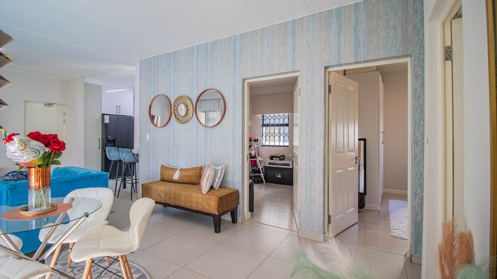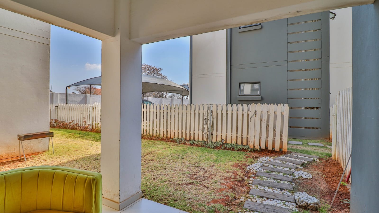 Discover this inviting ground-floor unit located in the desirable Brentwood Park, Benoni. Boasting a modern two-tone exterior, this property offers a private patio and a dedicated small garden area, perfect for outdoor relaxation and entertaining. The covered patio extends to a fenced backyard, complete with a charming stepping stone path, providing a tranquil retreat. Enhanced security features, including window and door bars, ensure peace of mind within this complex setting.
