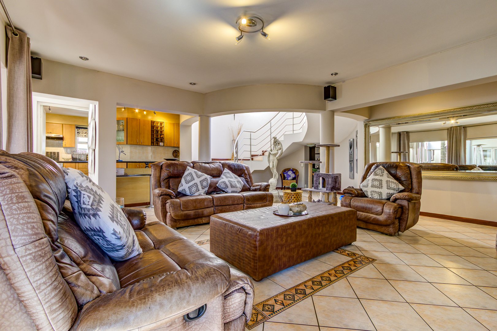 Security is top-notch, featuring an advanced alarm system, outdoor beams, and 24-hour guarded access with CCTV cameras throughout the estate.