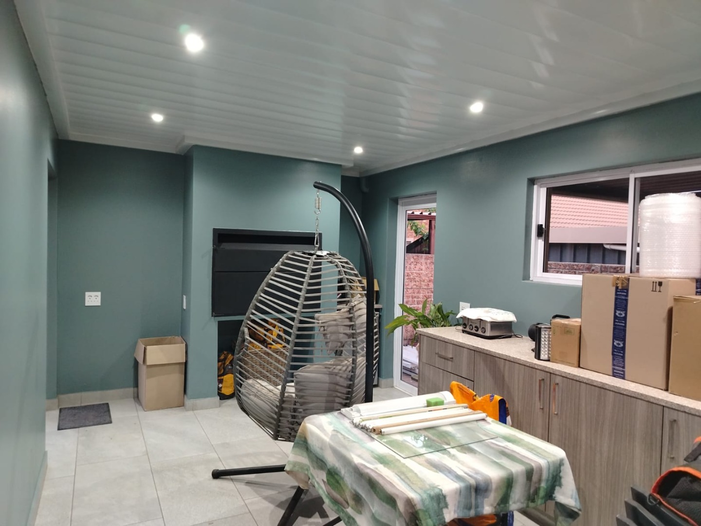 Inside, you’ll find an open-plan kitchen and lounge area, creating a warm and inviting flow for everyday living. The home includes a dedicated entertainment area with built-in braai.