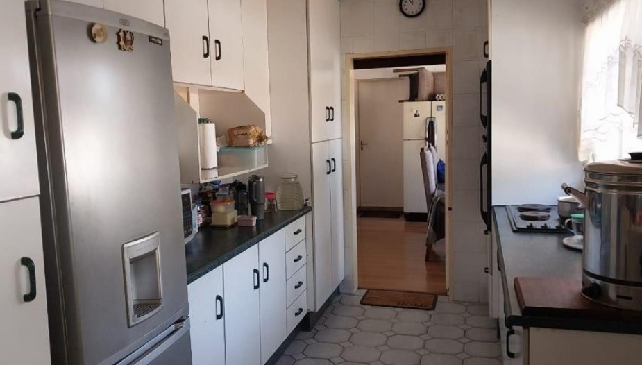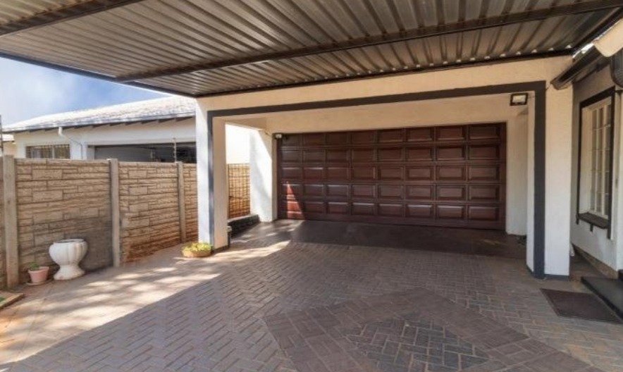 This inviting two-story family home, boasting a modern Tudor-style aesthetic, is ideally situated in the established suburb of Brentwood, Benoni, South Africa. The property presents a welcoming kerb appeal with its attractive design, a secure front gate, and a paved driveway leading to ample parking facilities. Inside, the functional galley-style kitchen features white cabinetry, dark countertops, and a built-in stovetop, complemented by a modern stainless steel refrigerator. This space offers practical meal preparation and flows into an adjacent area, suitable for dining. The home provides comfortable accommodation with four well-proportioned bedrooms and two bathrooms. One bathroom is fully tiled, equipped with a built-in bathtub and a convenient handheld shower, ensuring everyday comfort. The outdoor living spaces are a true highlight, designed for relaxation and entertaining. A private backyard features a sparkling swimming pool, perfect for cooling off during warmer months. Surrounding the pool is extensive brick paving, creating a neat patio area with space for outdoor seating. A dedicated built-in braai area enhances the potential for social gatherings, all set within an established garden. Security is a key consideration, with security bars fitted on windows and a robust concrete perimeter fence providing peace of mind. The property offers generous secure parking, including a double garage and an attached double carport, accommodating multiple vehicles. Pets are also welcome, making this a suitable home for families. Key Features: * 4 Bedrooms, 2 Bathrooms * Private Swimming Pool * Built-in Braai Area * Double Garage & Double Carport * Paved Driveway * Established Garden * Pet-Friendly * Located in Brentwood, Benoni