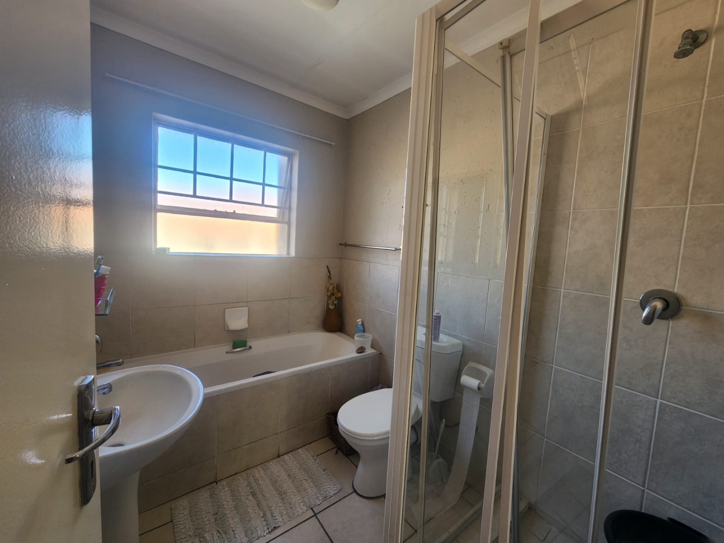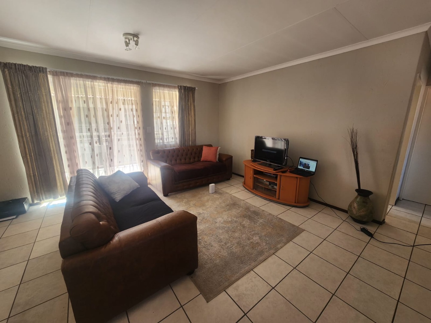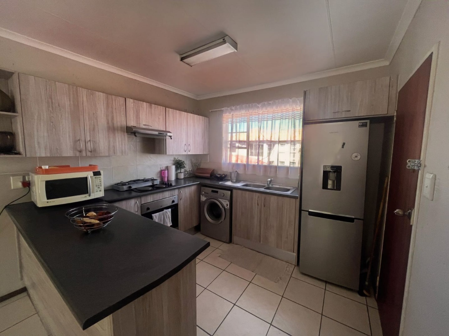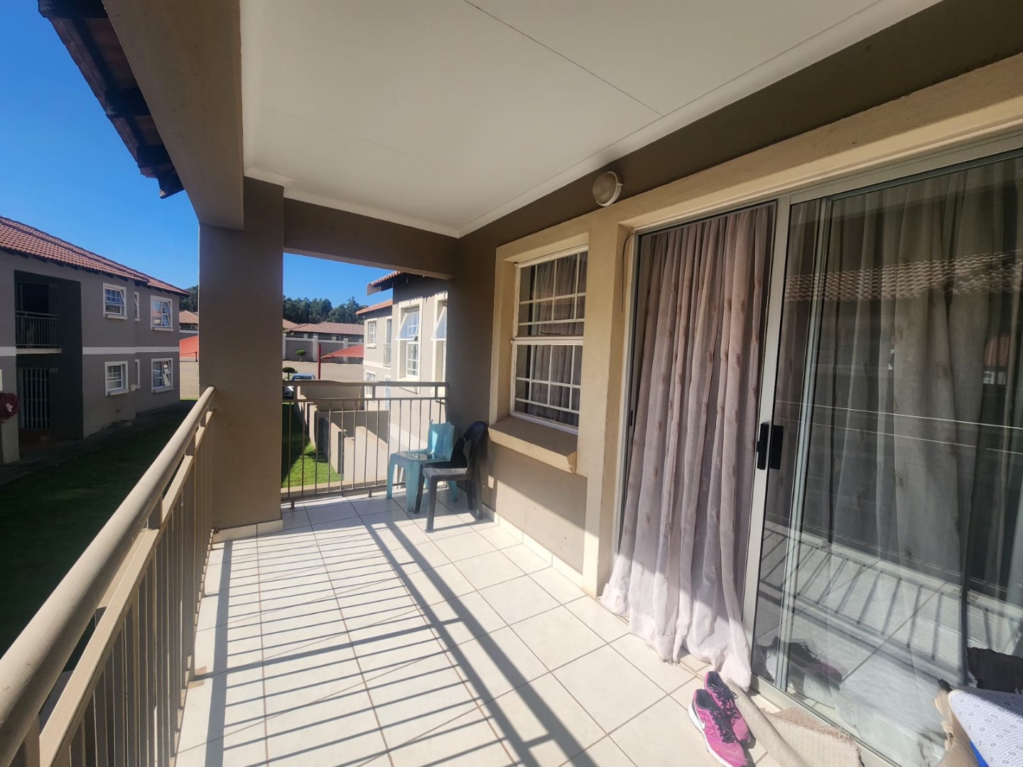 Discover comfortable living in this modern 2-bedroom, 1-bathroom apartment, ideally situated within a well-maintained complex in Cloverdene, Benoni. Spanning 73 square metres, this residence offers a practical and inviting layout designed for contemporary lifestyles. The heart of the home features an open-plan living and dining area, bathed in natural light from large windows and sliding doors, creating a bright and airy atmosphere. Durable tiled flooring extends throughout these communal spaces, ensuring easy maintenance. The kitchen is both functional and stylish, equipped with modern light wood-grain cabinetry, dark countertops, and essential appliances including a built-in oven, a large stainless steel refrigerator, and an integrated washing machine. This efficient space caters to all your culinary needs. The two bedrooms provide comfortable retreats, each benefiting from ample natural light, offering a versatile canvas for personalisation. The single bathroom is fully tiled and includes both a bathtub and a separate shower cubicle, complemented by a modern pedestal sink. Step outside to a private, covered balcony, a perfect spot for relaxation or enjoying a built-in braai, while overlooking the communal green grounds. The property includes two dedicated parking bays, adding to the convenience. Residents benefit from a robust security infrastructure, featuring a fence, security post, access gate, electric fencing, burglar bars, and 24-hour security, ensuring peace of mind. The unit is also fibre-ready, providing high-speed internet connectivity. This suburban complex offers a tranquil environment with well-maintained paved walkways and green areas, presenting a welcoming kerb appeal with its neutral-toned buildings and tiled roofs. Cloverdene provides a convenient location within Benoni, offering a balanced lifestyle. Key Features: * 2 Bedrooms, 1 Bathroom * 73 sqm Floor Size * Modern Kitchen with Appliances * Spacious Open-Plan Living * Private Covered Balcony * Built-in Braai * 2 Dedicated Parking Bays * Fibre Ready * 24-Hour Security