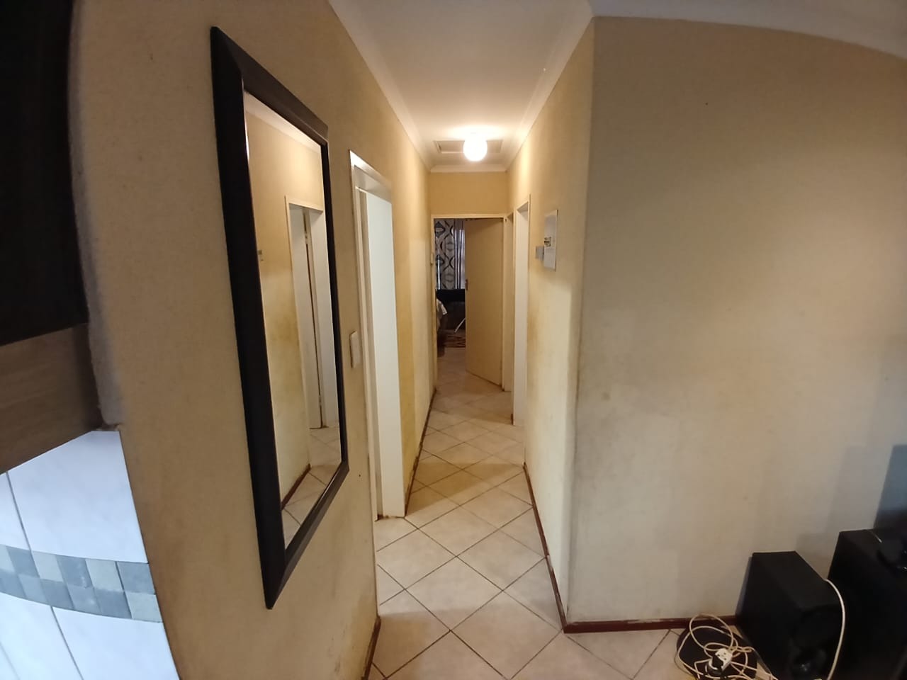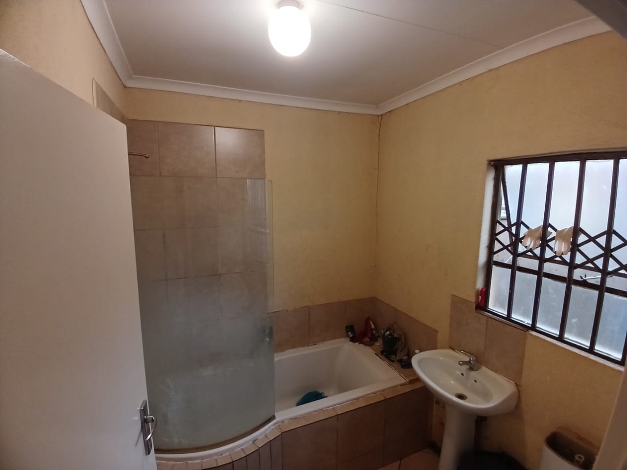 This single-story residence in Crystal Park, Benoni, offers a practical and secure living environment. Featuring a durable tiled roof and a solid concrete boundary wall, the property ensures privacy. Enhanced security includes bars on windows, security gates on doors, and a Chubb alarm system. A solar geyser promotes energy efficiency, adding value to this suburban home. Inside, an open-plan layout seamlessly connects the living area to the kitchen, which boasts modern dark cabinetry, a built-in hob, extractor fan, and space for a double-door refrigerator. Tiled flooring extends throughout the home, which includes three comfortable bedrooms and two bathrooms, one of which is en-suite. The bathrooms, while functional, present an opportunity for future personalization. The exterior features a built-in braai area for outdoor enjoyment. The spacious yard, currently unlandscaped, provides a blank canvas for gardening enthusiasts. With two dedicated parking spaces, convenience is assured. Situated in the tranquil suburban setting of Crystal Park, this property offers easy access to local amenities and transport routes. Key Features: * 3 Bedrooms, 2 Bathrooms (1 En-suite) * Open-plan Lounge & Kitchen * Modern Kitchen Cabinetry * Built-in Braai Area * Solar Geyser * Security Bars, Gates & Chubb Alarm * 2 Parking Spaces * Erf Size: 250 sqm