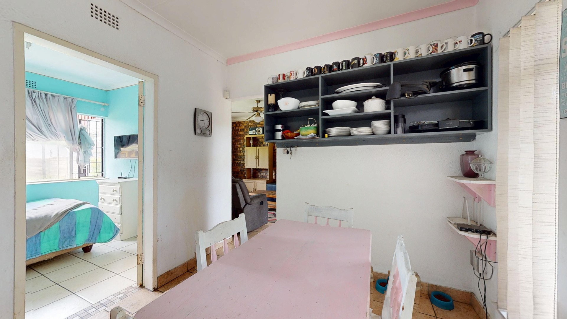 Discover this inviting 3-bedroom, 2-bathroom family home situated in the established suburban area of Crystal Park, Benoni. Boasting a generous 850 sqm erf and a comfortable 158 sqm floor size, this property offers ample space for both indoor and outdoor living. The single-story layout ensures easy accessibility and a practical flow throughout. The interior features a welcoming lounge, providing a comfortable space for relaxation and family gatherings. The kitchen, while offering a distinctive retro-inspired aesthetic with its pink and light blue cabinetry, is well-equipped with ample storage and a functional island featuring a stovetop. Large windows throughout the home, complemented by ceiling fans in key living areas, ensure good natural light and air circulation. The three bedrooms are well-proportioned, with one benefiting from an en-suite bathroom, adding convenience and privacy. Step outside to appreciate the property's significant outdoor appeal. The large, fenced grassy front and back yards provide excellent space for children, pets, or gardening enthusiasts, with mature trees offering shade and privacy. A covered outdoor patio area extends the living space, perfect for alfresco dining or entertaining. Parking is well catered for with a single garage and an additional three open parking spaces. This home presents a solid foundation for those looking to personalize and create their ideal living environment in a tranquil setting. Crystal Park offers a suburban lifestyle in Benoni, providing convenient access to local amenities and transport routes, making it an ideal location for families. Key Features: * 3 Bedrooms, 2 Bathrooms (1 En-suite) * Spacious 850 sqm Erf * Comfortable 158 sqm Floor Size * Single Garage plus 3 Parking Spaces * Large Grassy Yards with Covered Patio * Functional Kitchen with Ample Storage * Tiled Flooring and Ceiling Fans * Suburban Location in Crystal Park, Benoni