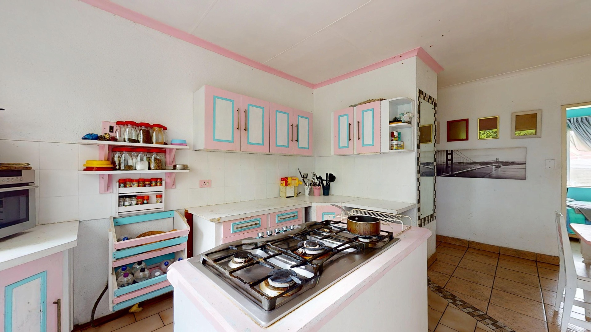 Discover this inviting 3-bedroom, 2-bathroom family home situated in the established suburban area of Crystal Park, Benoni. Boasting a generous 850 sqm erf and a comfortable 158 sqm floor size, this property offers ample space for both indoor and outdoor living. The single-story layout ensures easy accessibility and a practical flow throughout. The interior features a welcoming lounge, providing a comfortable space for relaxation and family gatherings. The kitchen, while offering a distinctive retro-inspired aesthetic with its pink and light blue cabinetry, is well-equipped with ample storage and a functional island featuring a stovetop. Large windows throughout the home, complemented by ceiling fans in key living areas, ensure good natural light and air circulation. The three bedrooms are well-proportioned, with one benefiting from an en-suite bathroom, adding convenience and privacy. Step outside to appreciate the property's significant outdoor appeal. The large, fenced grassy front and back yards provide excellent space for children, pets, or gardening enthusiasts, with mature trees offering shade and privacy. A covered outdoor patio area extends the living space, perfect for alfresco dining or entertaining. Parking is well catered for with a single garage and an additional three open parking spaces. This home presents a solid foundation for those looking to personalize and create their ideal living environment in a tranquil setting. Crystal Park offers a suburban lifestyle in Benoni, providing convenient access to local amenities and transport routes, making it an ideal location for families. Key Features: * 3 Bedrooms, 2 Bathrooms (1 En-suite) * Spacious 850 sqm Erf * Comfortable 158 sqm Floor Size * Single Garage plus 3 Parking Spaces * Large Grassy Yards with Covered Patio * Functional Kitchen with Ample Storage * Tiled Flooring and Ceiling Fans * Suburban Location in Crystal Park, Benoni