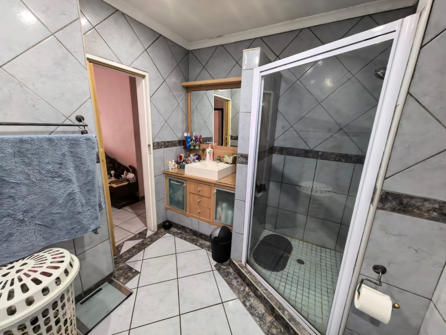 equipped with a scullery and laundry for added convenience. Adjacent to the lounge is a versatile room currently used as an indoor gym, which can easily be transformed into an office, study, or prayer room, complete with its own door leading to the backyard.