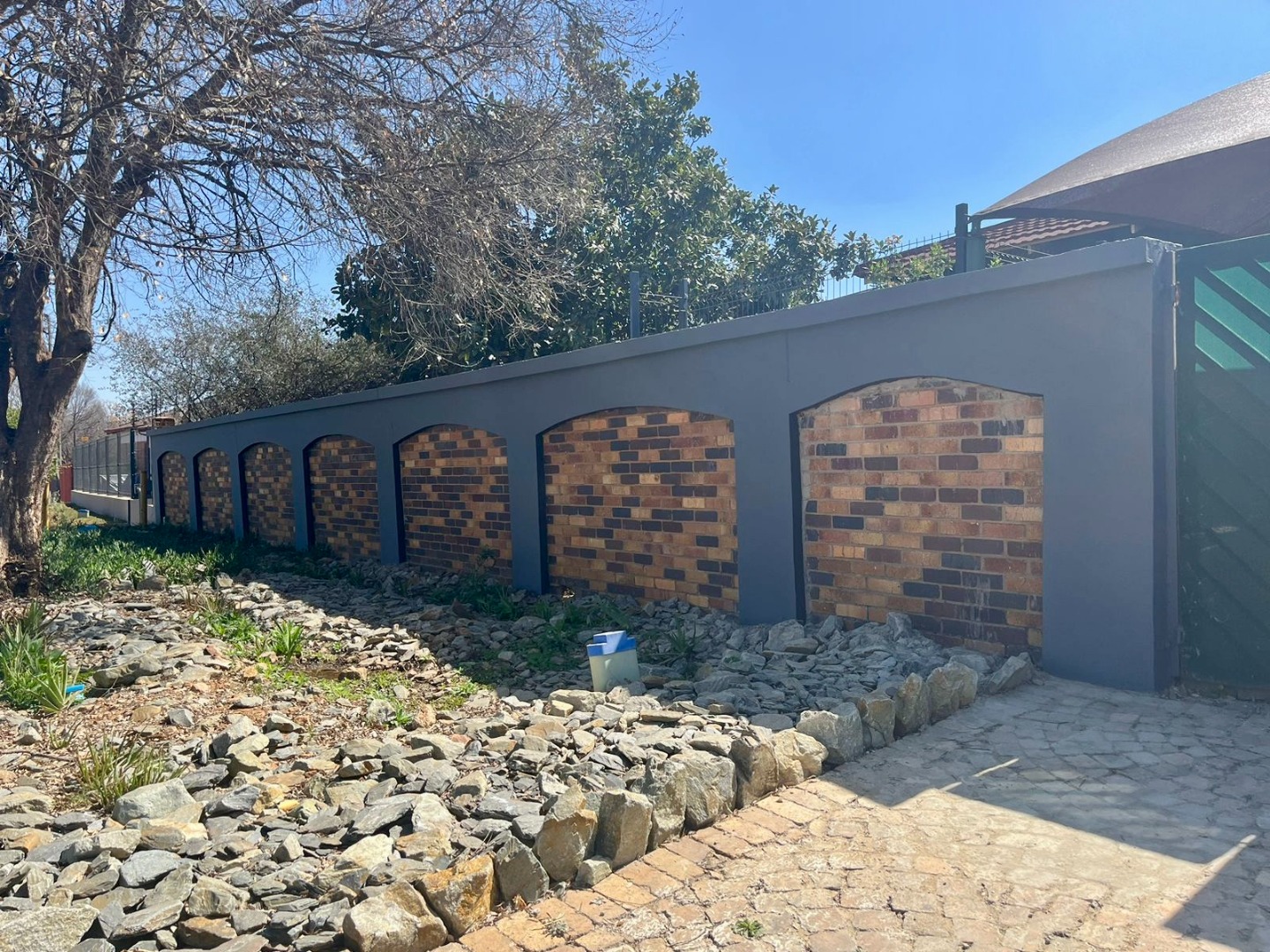 Discover this charming 3-bedroom, 2-bathroom residence nestled in the suburban heart of Farrarmere, Benoni. This property offers a generous Erf size of 1190 sqm, providing ample space for comfortable living and outdoor enjoyment. The kerb appeal is enhanced by a modern perimeter wall featuring a blend of brick and grey plastered sections, topped with fencing for added security, and complemented by a sturdy access gate and paved pedestrian walkway.