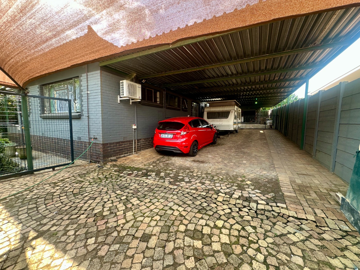 Security is a priority with a totally walled perimeter, an access gate, and security gates on external doors. The property's layout and features cater to a comfortable family lifestyle, with pets allowed. Located in the well-established suburb of Farrarmere, residents benefit from a peaceful community atmosphere with convenient access to local amenities in Benoni, South Africa.