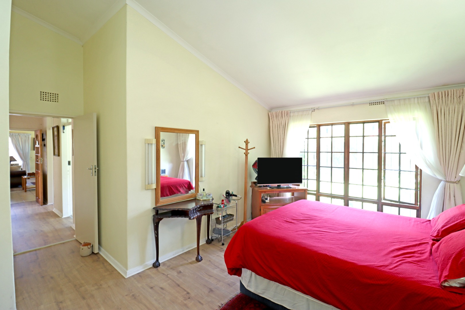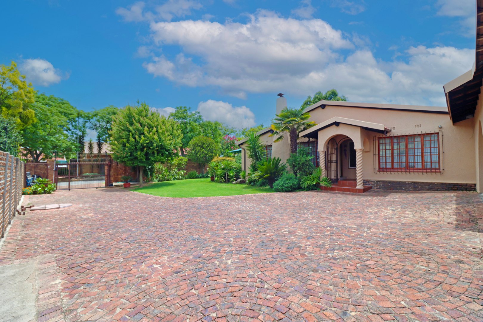 Discover this inviting family home situated in the established suburb of Farrarmere, Benoni, South Africa. Boasting a generous stand size of 1541 sqm and a floor size of 340 sqm, this property offers ample space for comfortable living and entertaining. The well-maintained exterior features a large, manicured garden and a paved driveway leading to multiple garages.
