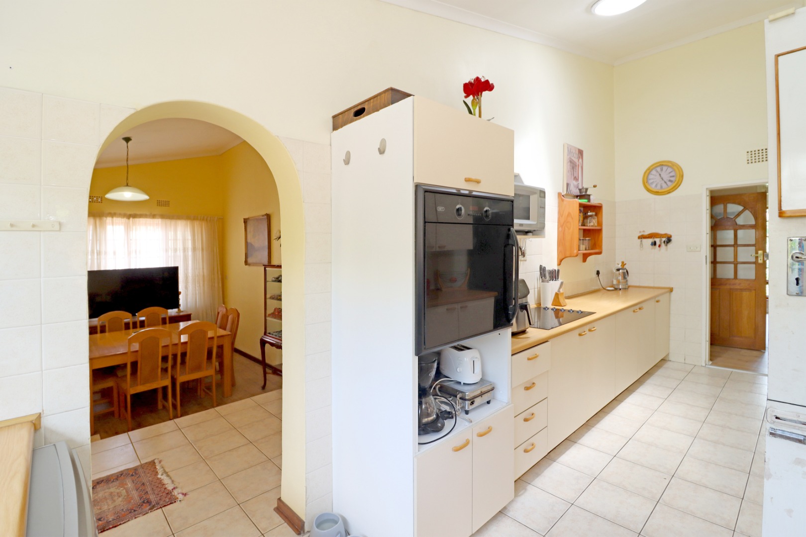 Security is well-addressed with electric fencing, burglar bars, and a security gate, ensuring peace of mind. The home also benefits from fibre connectivity, catering to modern communication needs. This property combines spacious living with excellent outdoor amenities in a desirable location.