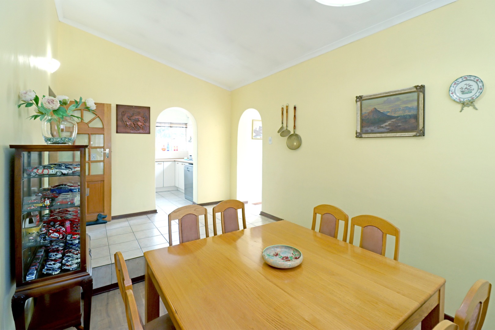 The interior presents an open-plan layout, connecting the lounge and dining areas, ideal for family gatherings and daily life. The functional kitchen provides a central hub for culinary activities. This home is designed for practical living, offering a harmonious flow between its various spaces.