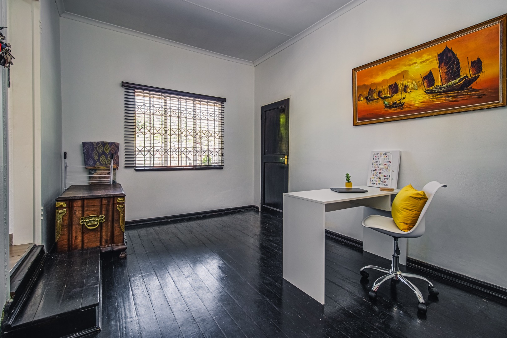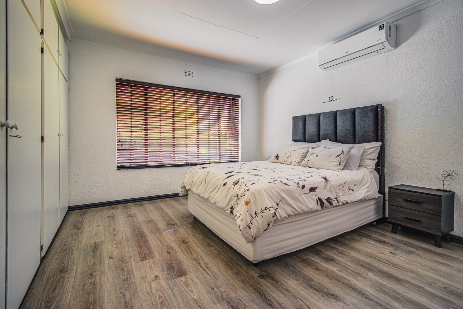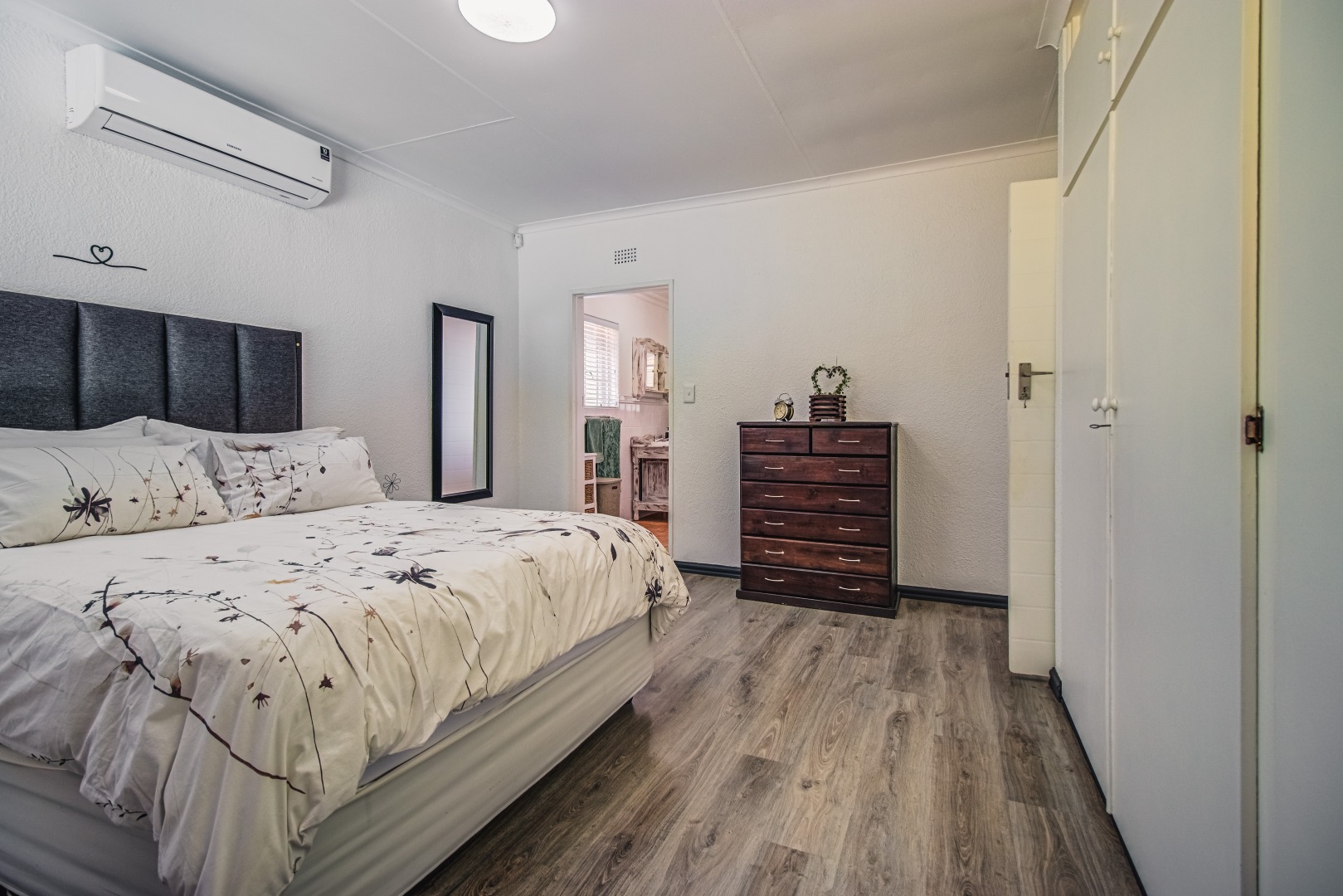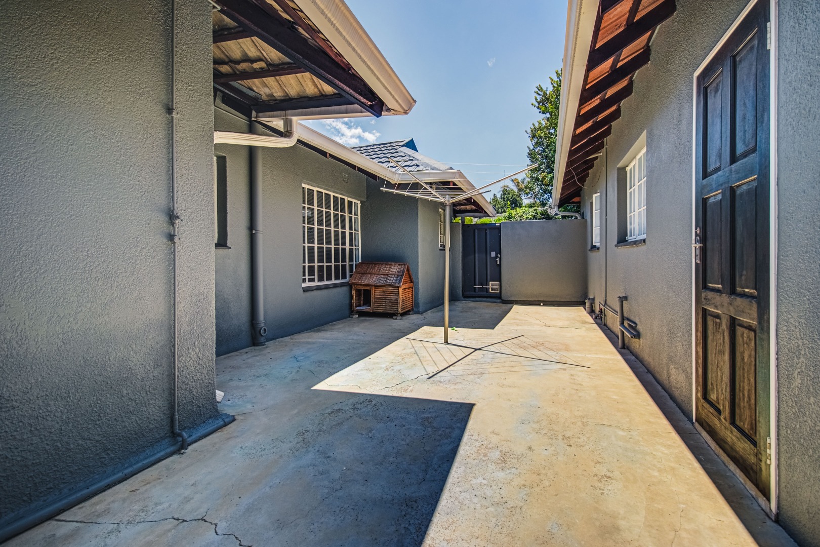 Ensuring peace of mind, the property is secured with electric fencing and an alarm system. Modern conveniences include a solar heated pool, air conditioning for comfort, and fibre connectivity for high-speed internet.