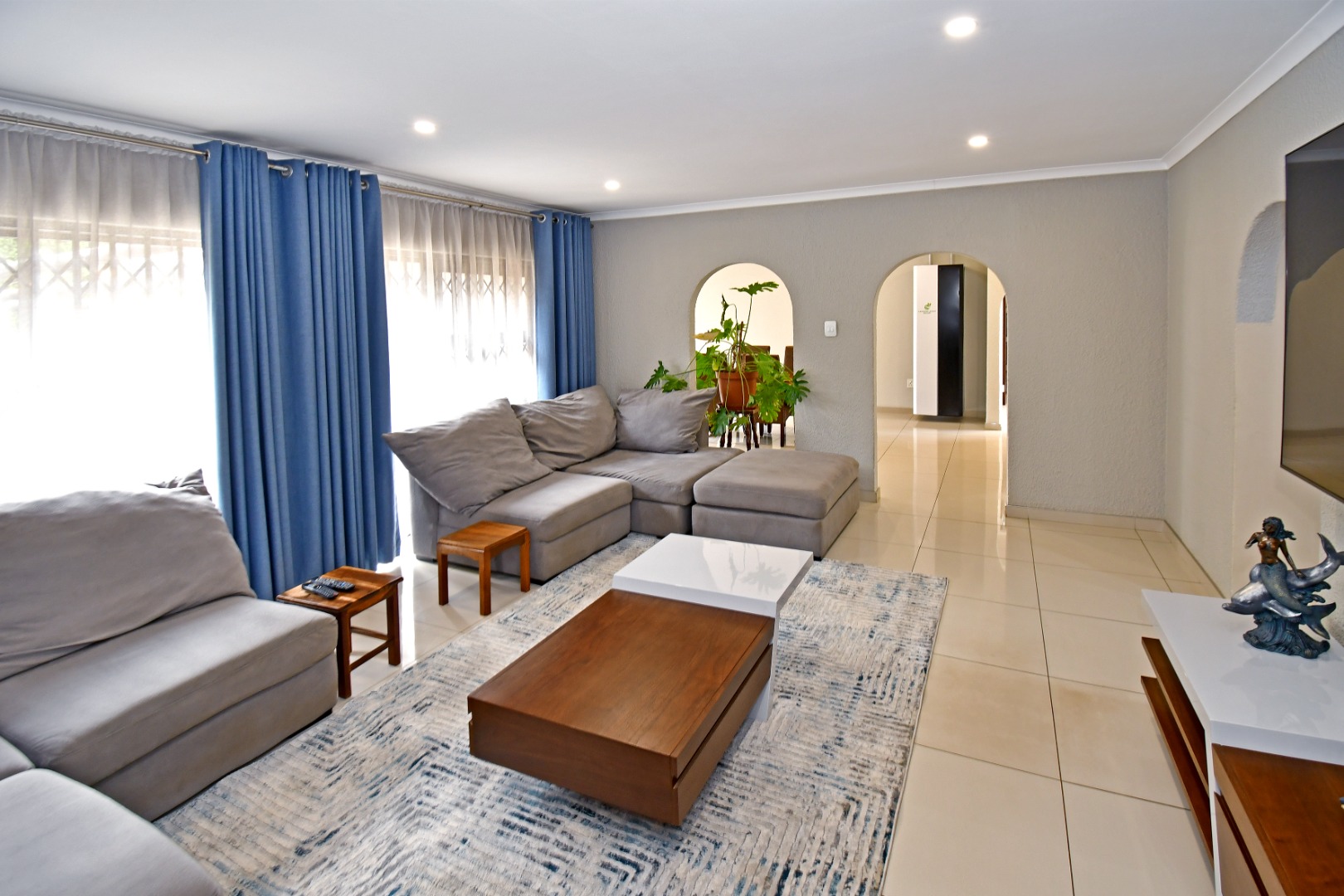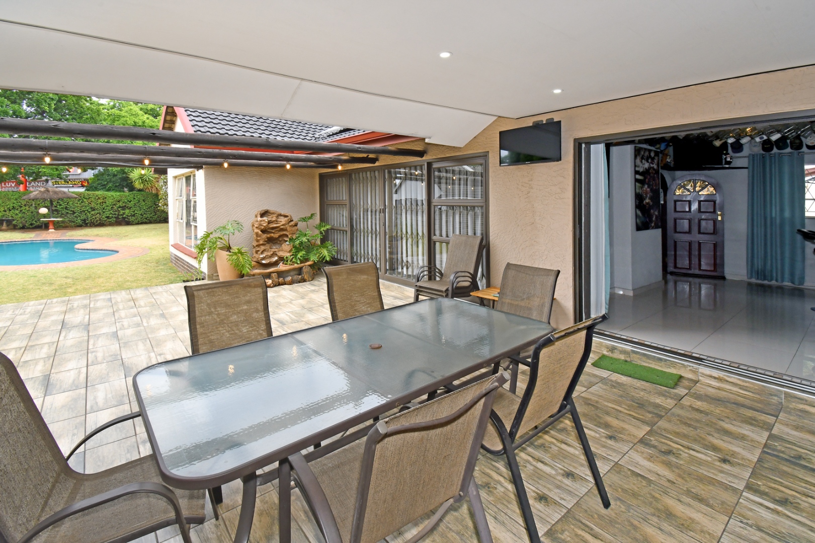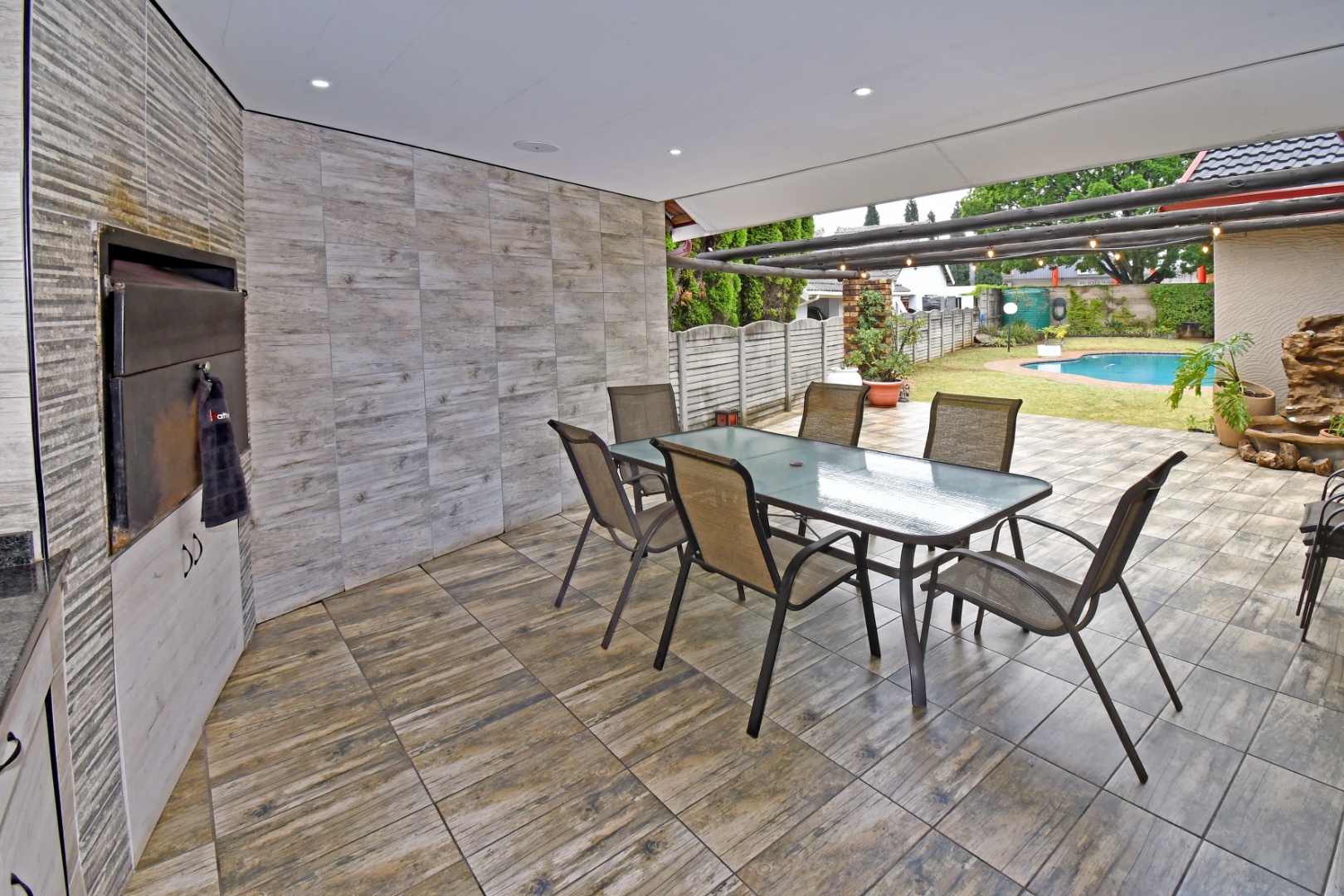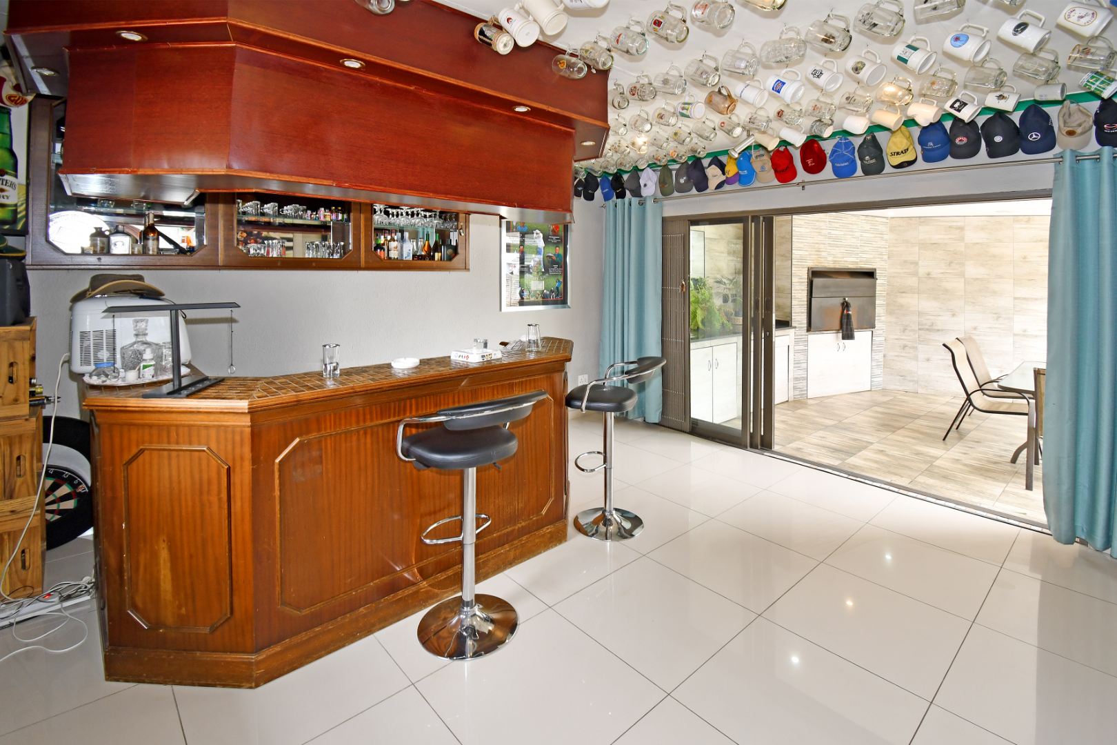 The generous living areas include a lounge that opens onto the garden, creating a great indoor-outdoor flow and a large dining room. A separate barroom with a fitted bar opens onto the entertainment area with built in braai and more for effortless entertaining.