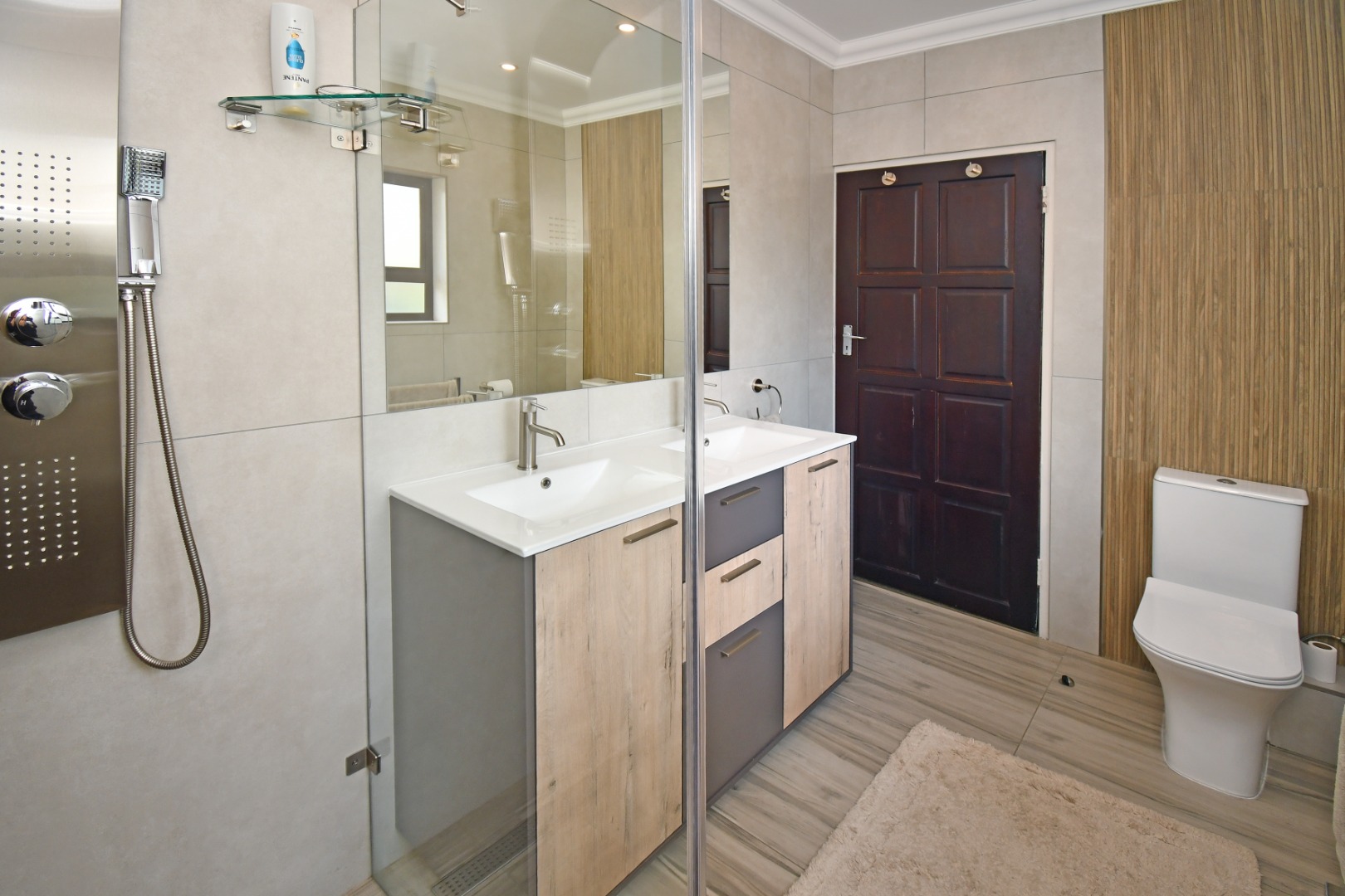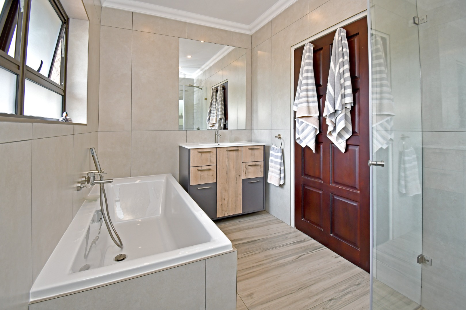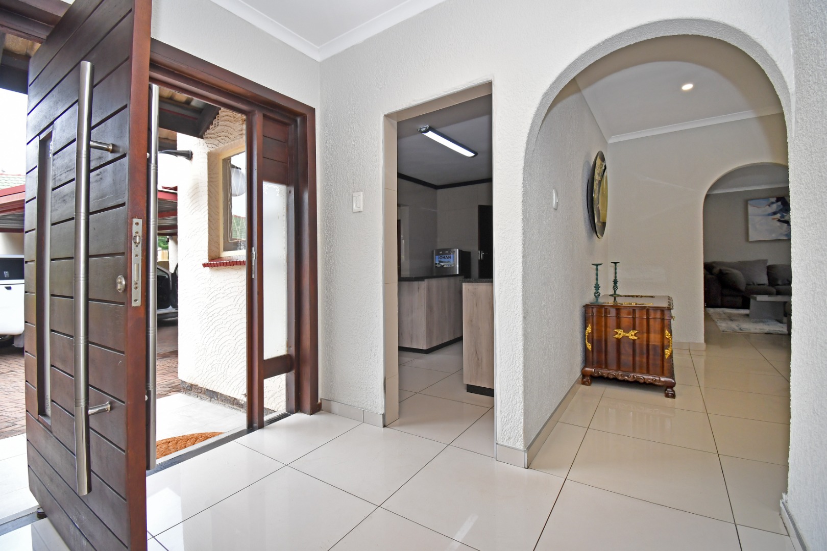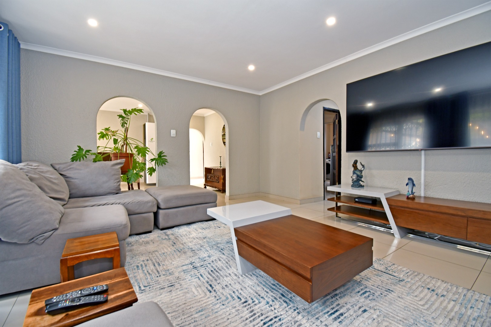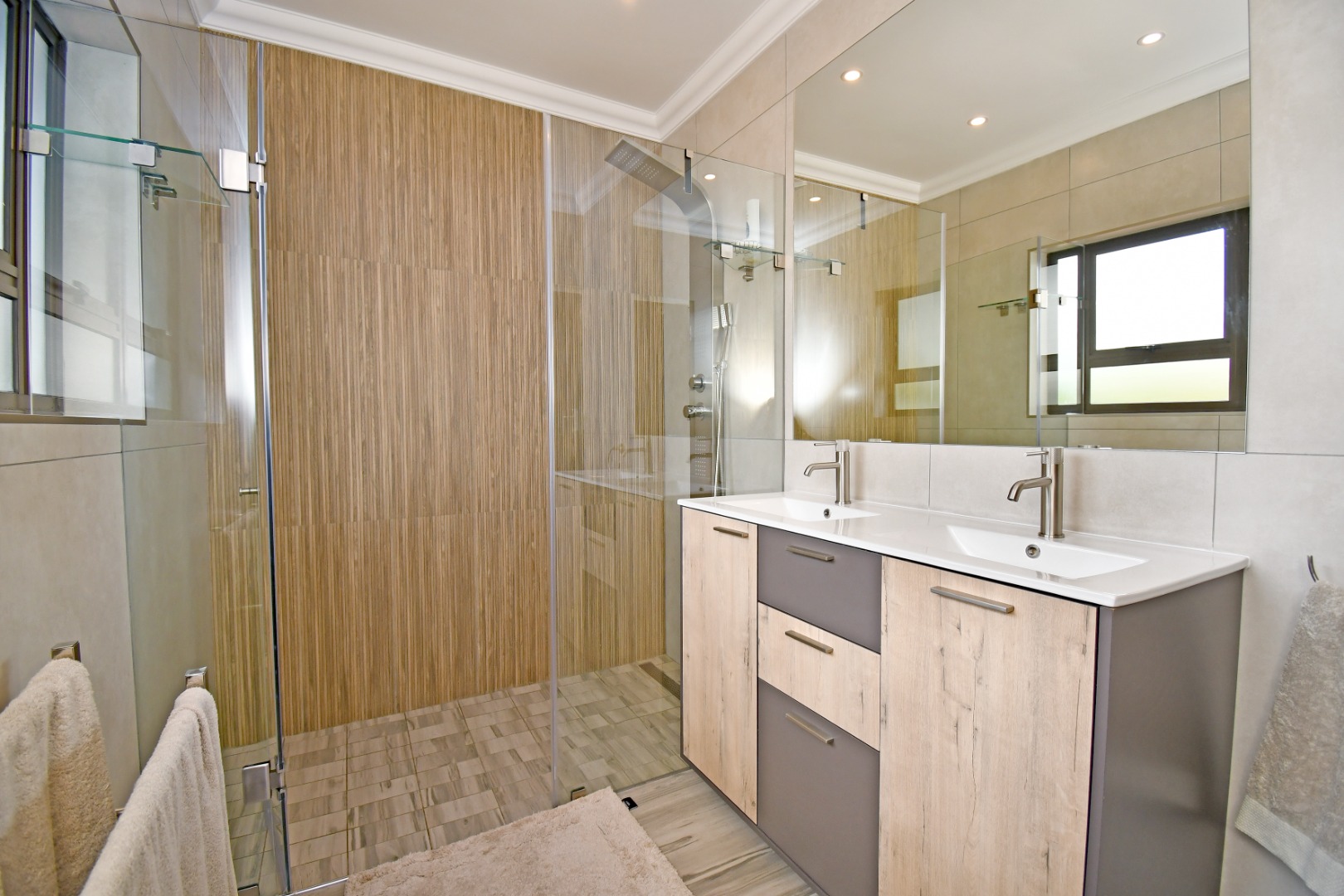 The generous living areas include a lounge that opens onto the garden, creating a great indoor-outdoor flow and a large dining room. A separate barroom with a fitted bar opens onto the entertainment area with built in braai and more for effortless entertaining.