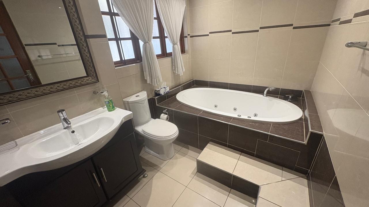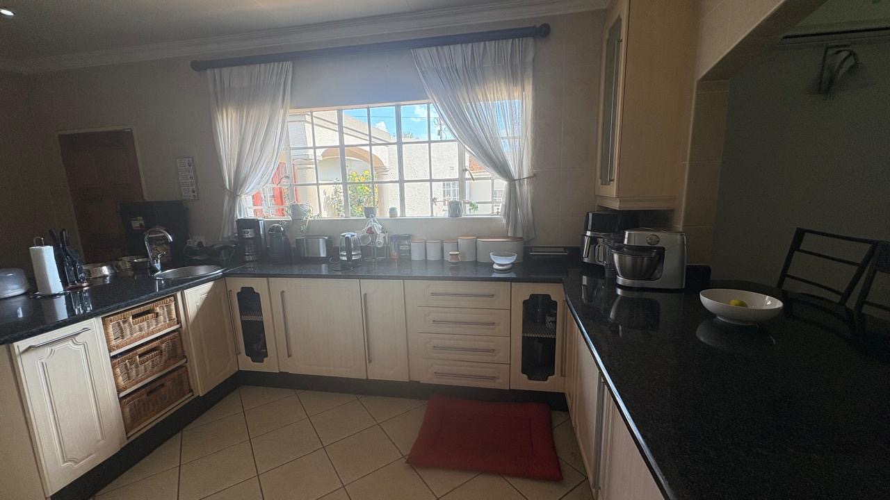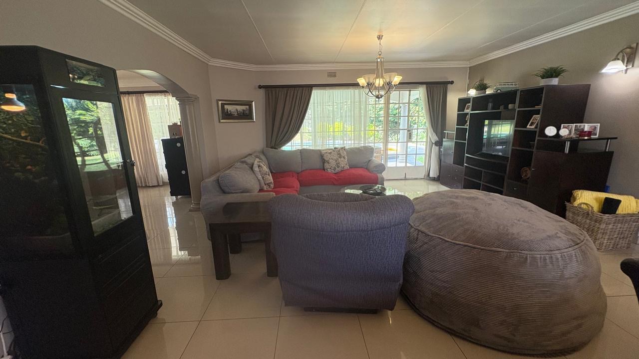 This home offers a spacious and functional layout designed for comfortable living. The open-plan living and dining areas are adorned with durable tiled flooring and feature decorative architectural elements such as arches and pillars, creating a sense of flow. The property includes two distinct lounges and a dedicated dining room, alongside a well-appointed kitchen, catering to various lifestyle needs.