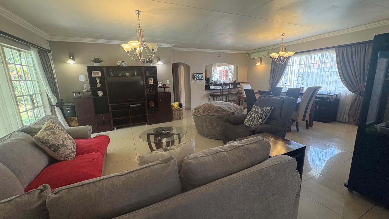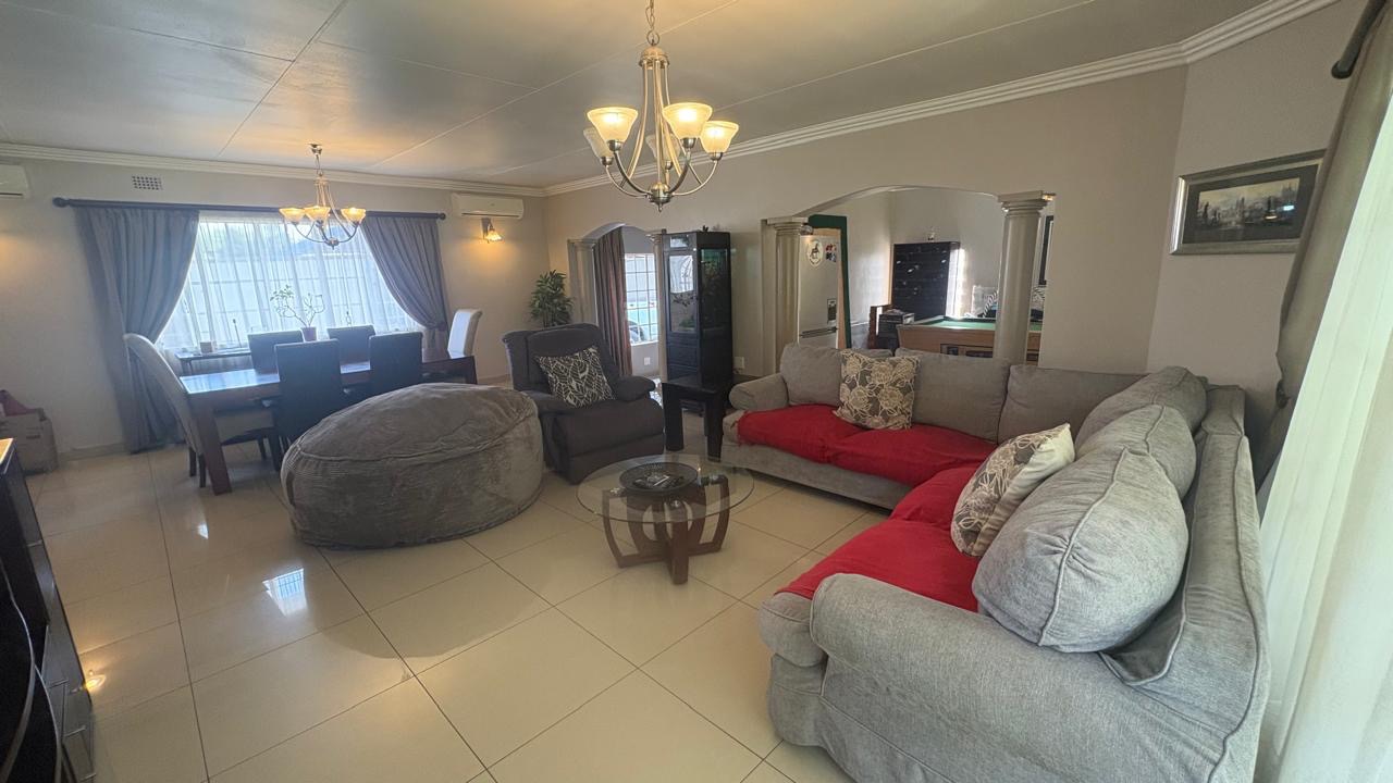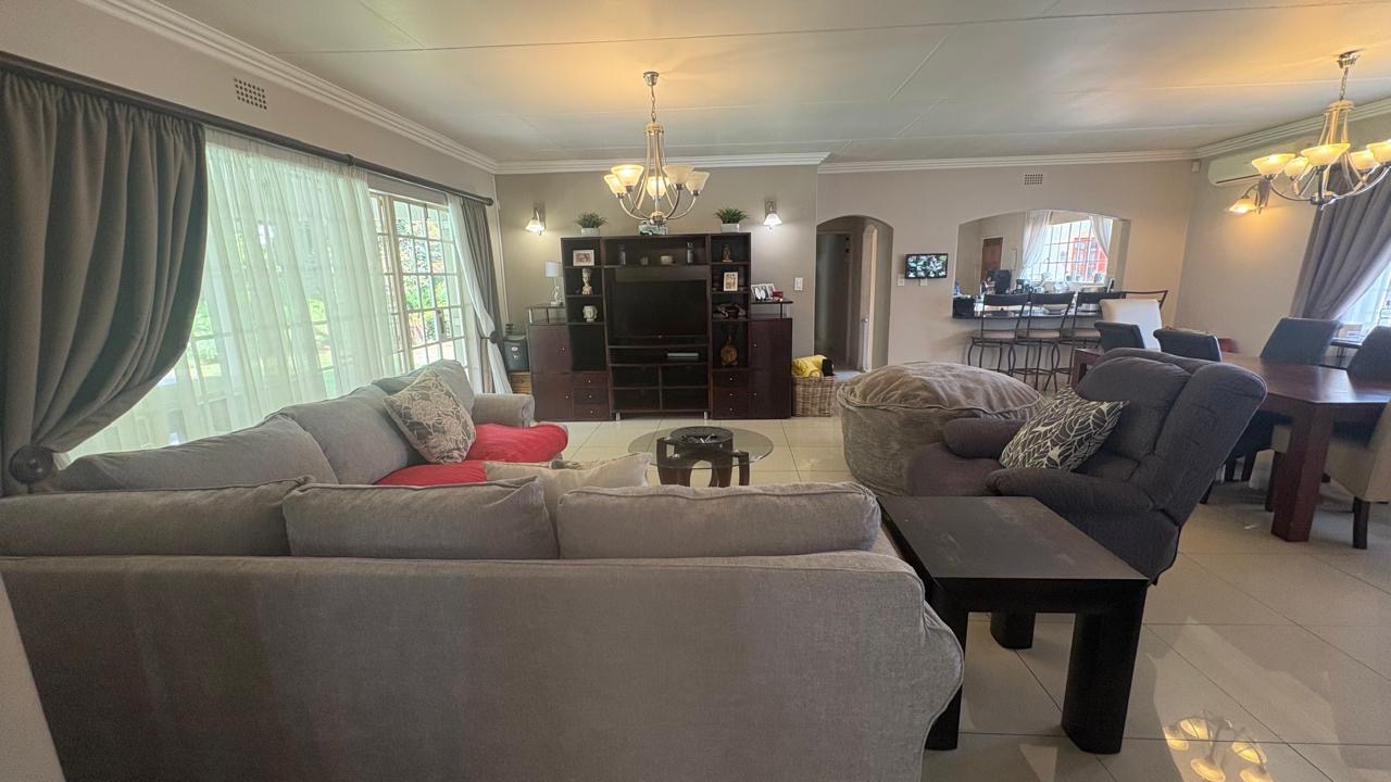 This home offers a spacious and functional layout designed for comfortable living. The open-plan living and dining areas are adorned with durable tiled flooring and feature decorative architectural elements such as arches and pillars, creating a sense of flow. The property includes two distinct lounges and a dedicated dining room, alongside a well-appointed kitchen, catering to various lifestyle needs.