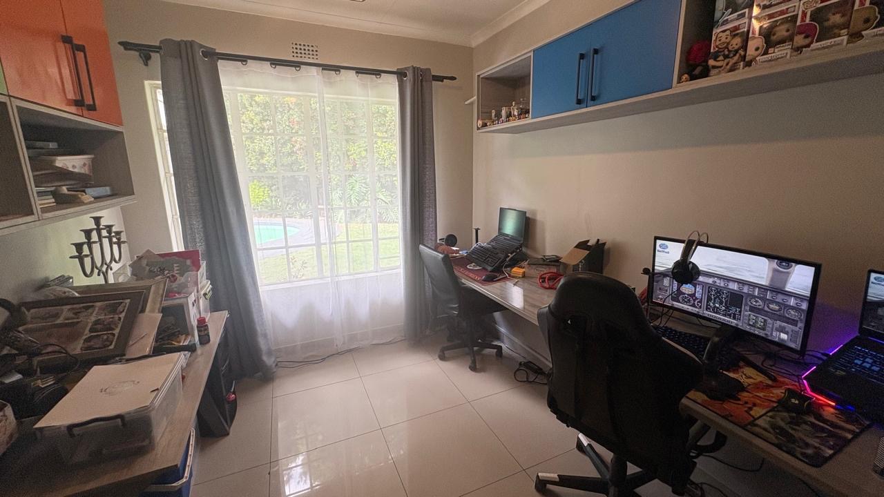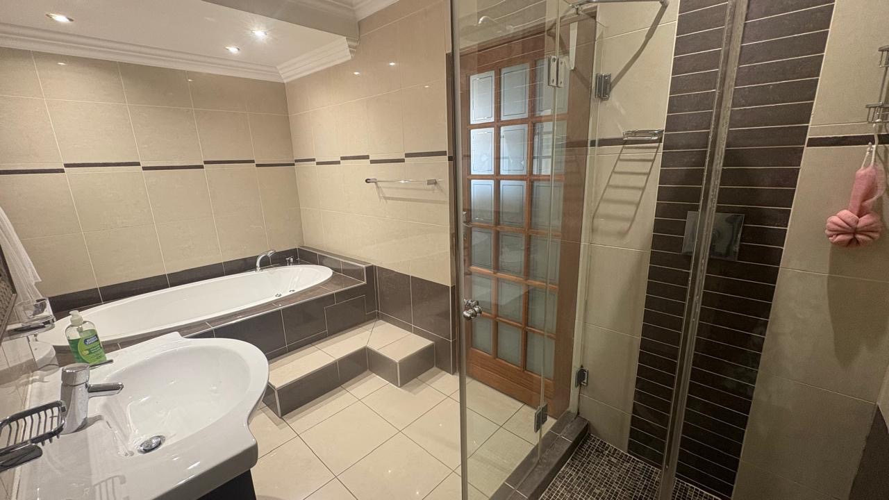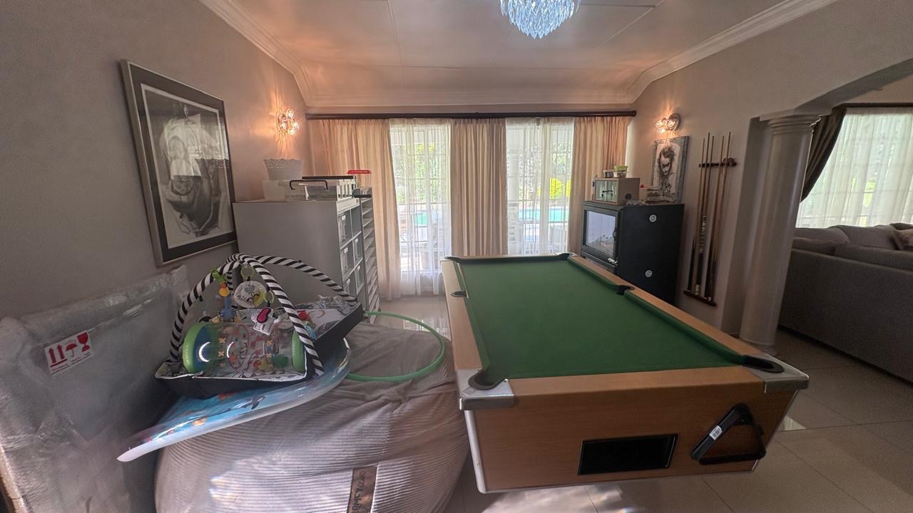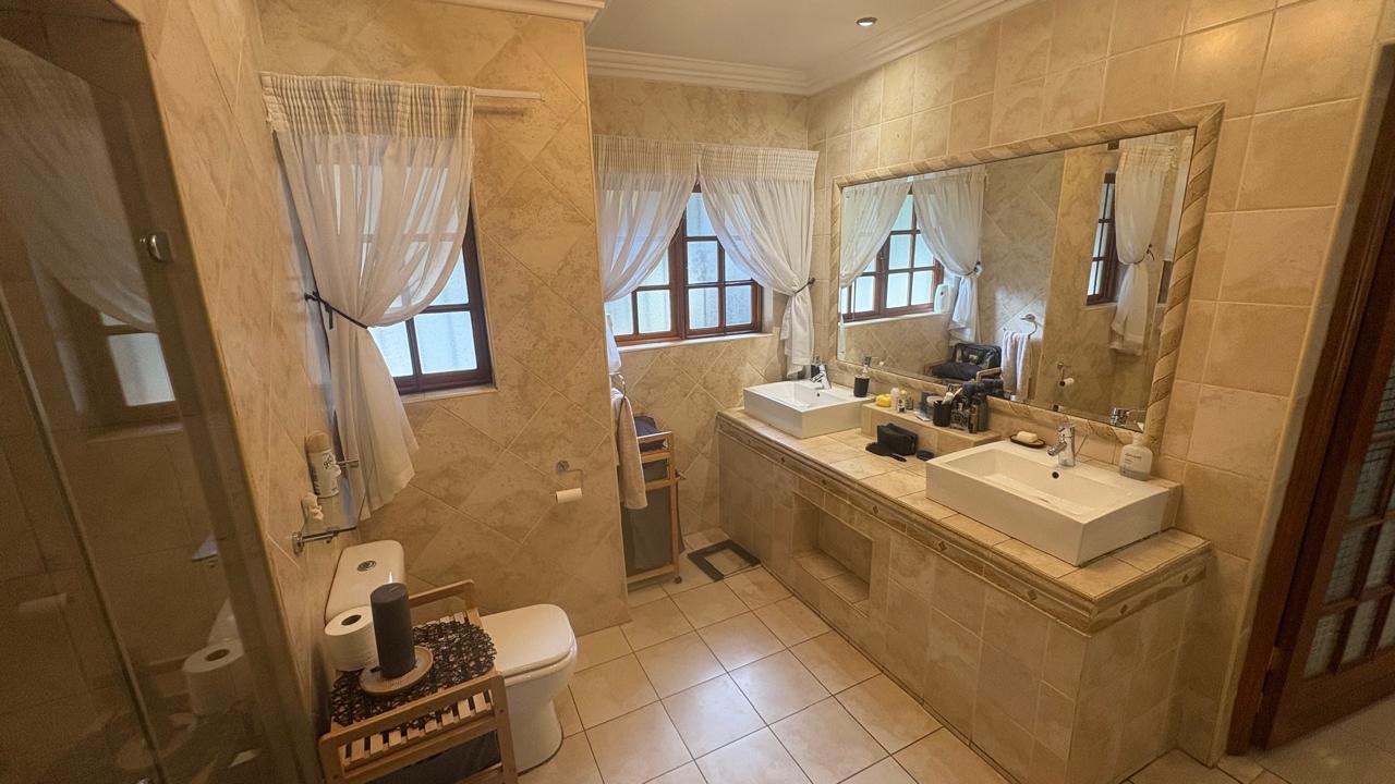 This home offers a spacious and functional layout designed for comfortable living. The open-plan living and dining areas are adorned with durable tiled flooring and feature decorative architectural elements such as arches and pillars, creating a sense of flow. The property includes two distinct lounges and a dedicated dining room, alongside a well-appointed kitchen, catering to various lifestyle needs.