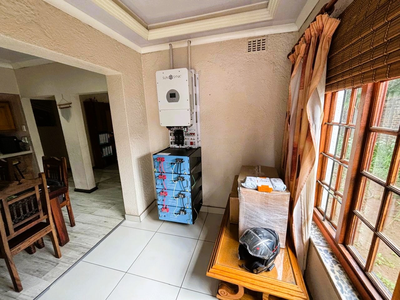 Energy efficiency is a priority, with solar panels and a state-of-the-art inverter that powers everything, leaving the owner with almost no municipal electricity costs. Also included, a neatly installed 2500 litre water tank that supply the entire home with water from the borehole (Filtered).