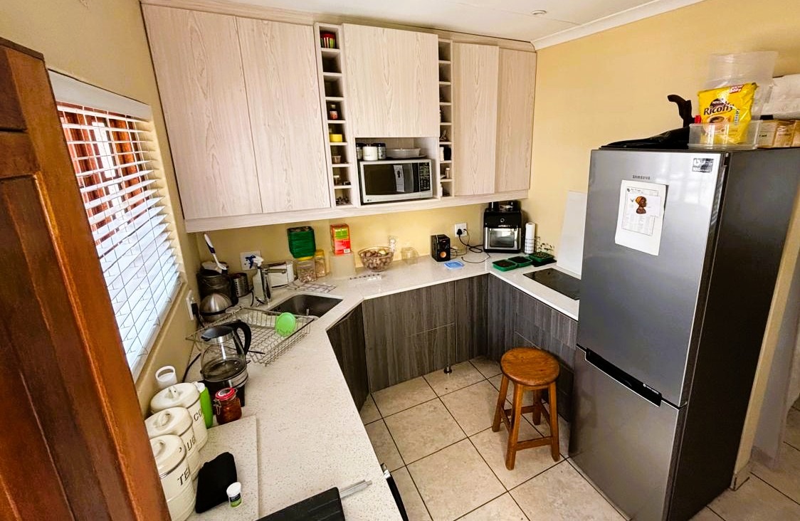 Energy efficiency is a priority, with solar panels and a state-of-the-art inverter that powers everything, leaving the owner with almost no municipal electricity costs. Also included, a neatly installed 2500 litre water tank that supply the entire home with water from the borehole (Filtered).