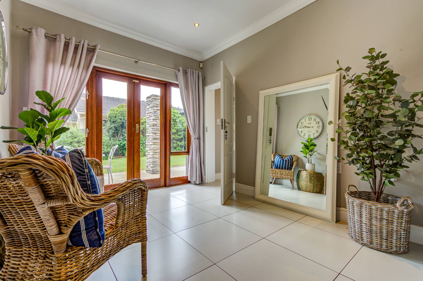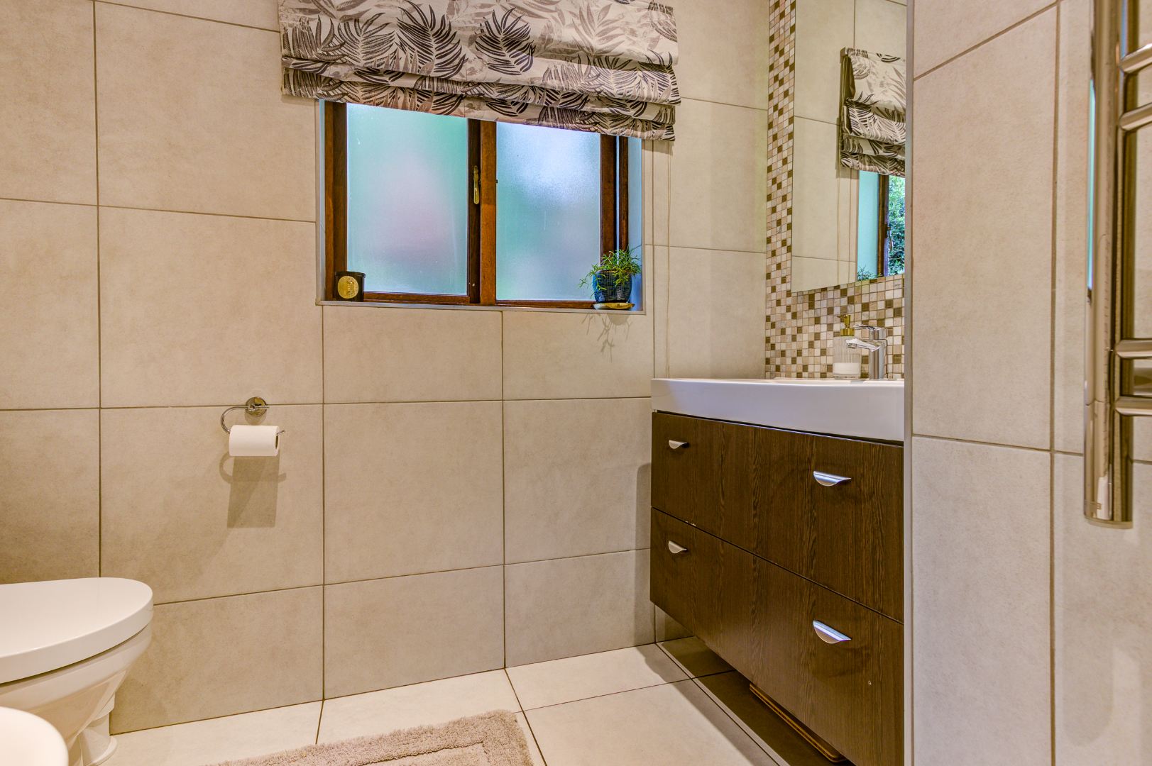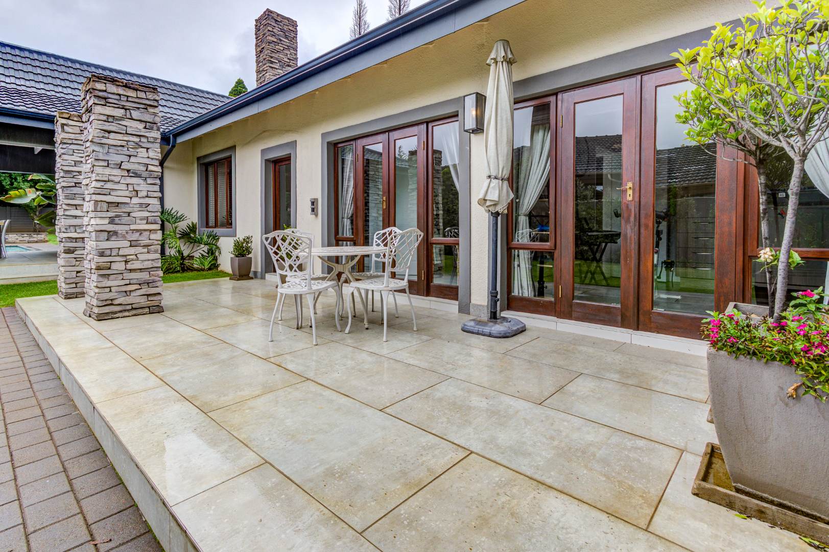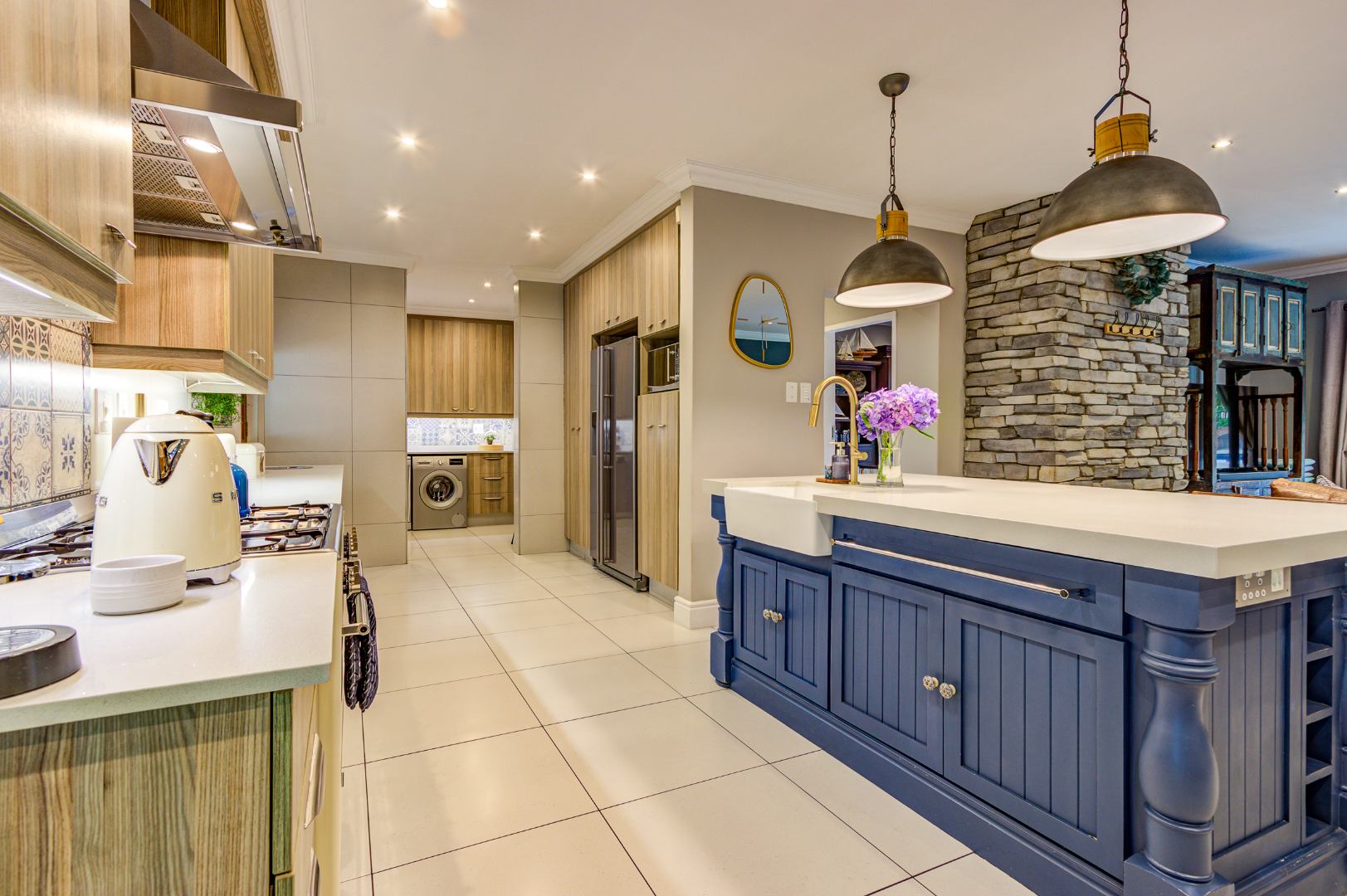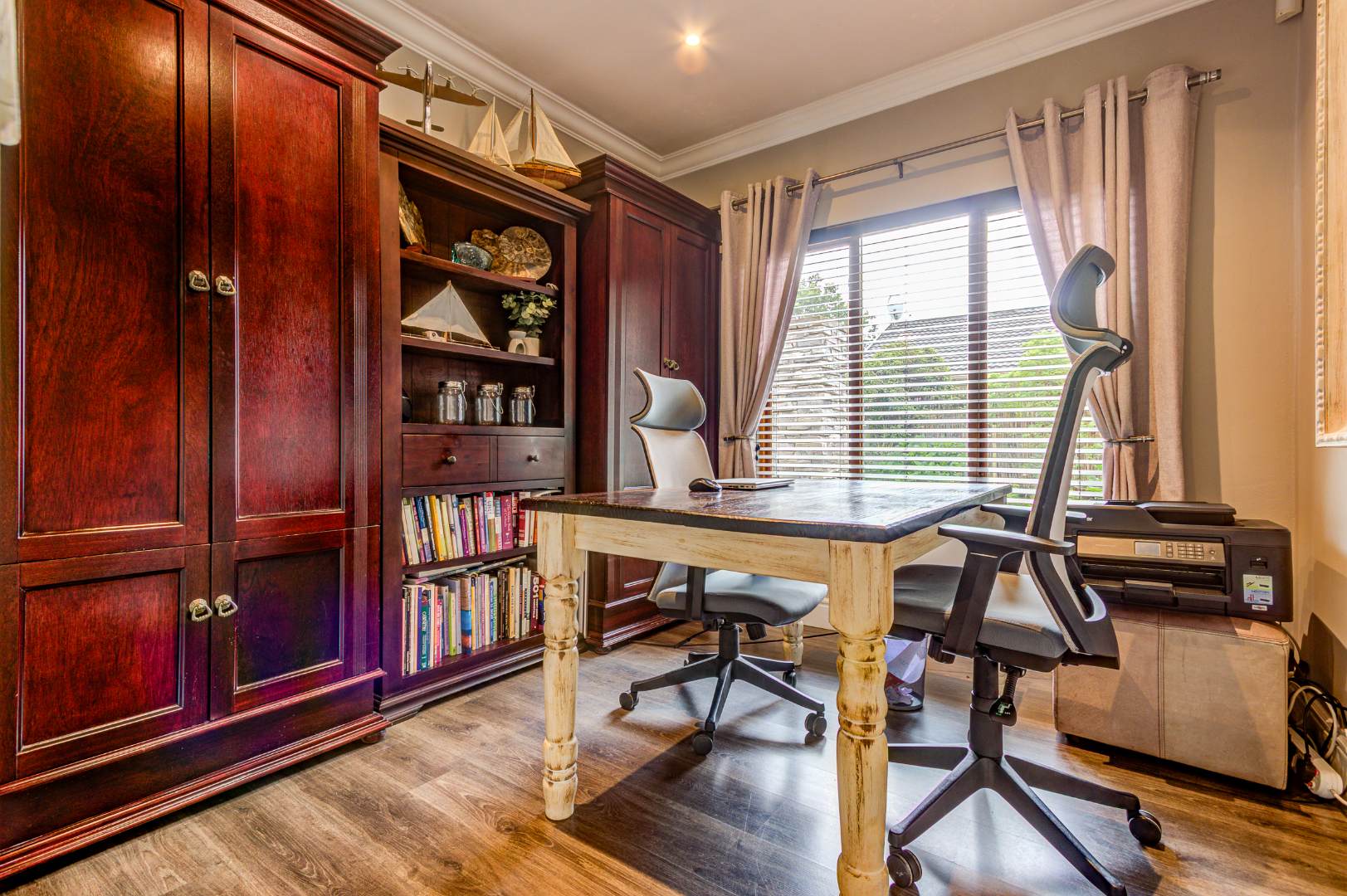 Step inside to an inviting entrance hall that ushers you into a world of refined living. The open-plan design seamlessly connects the spacious lounge, dining room, and a well-appointed kitchen complete with a scullery. Natural light floods the interiors through large wooden French doors, illuminating the neutral palette, elegant crown molding, and pristine tiled flooring. A versatile multi-purpose flat, currently configured with a lounge, 2 bedrooms and full bathroom, offers exceptional flexibility, while a dedicated study provides a quiet retreat. Over and above the two bedrooms in the flat, the home boasts three generously proportioned bedrooms, including a luxurious en-suite bathroom, alongside a second bathroom, ensuring comfort and privacy for all.