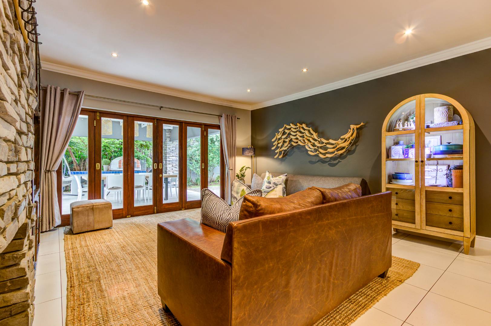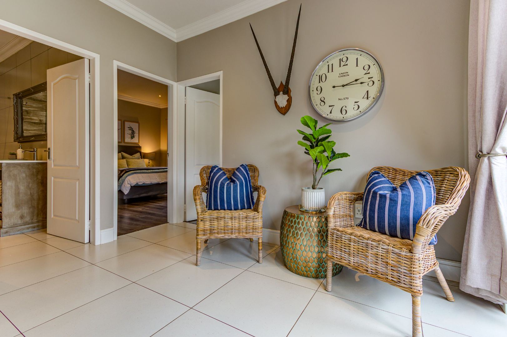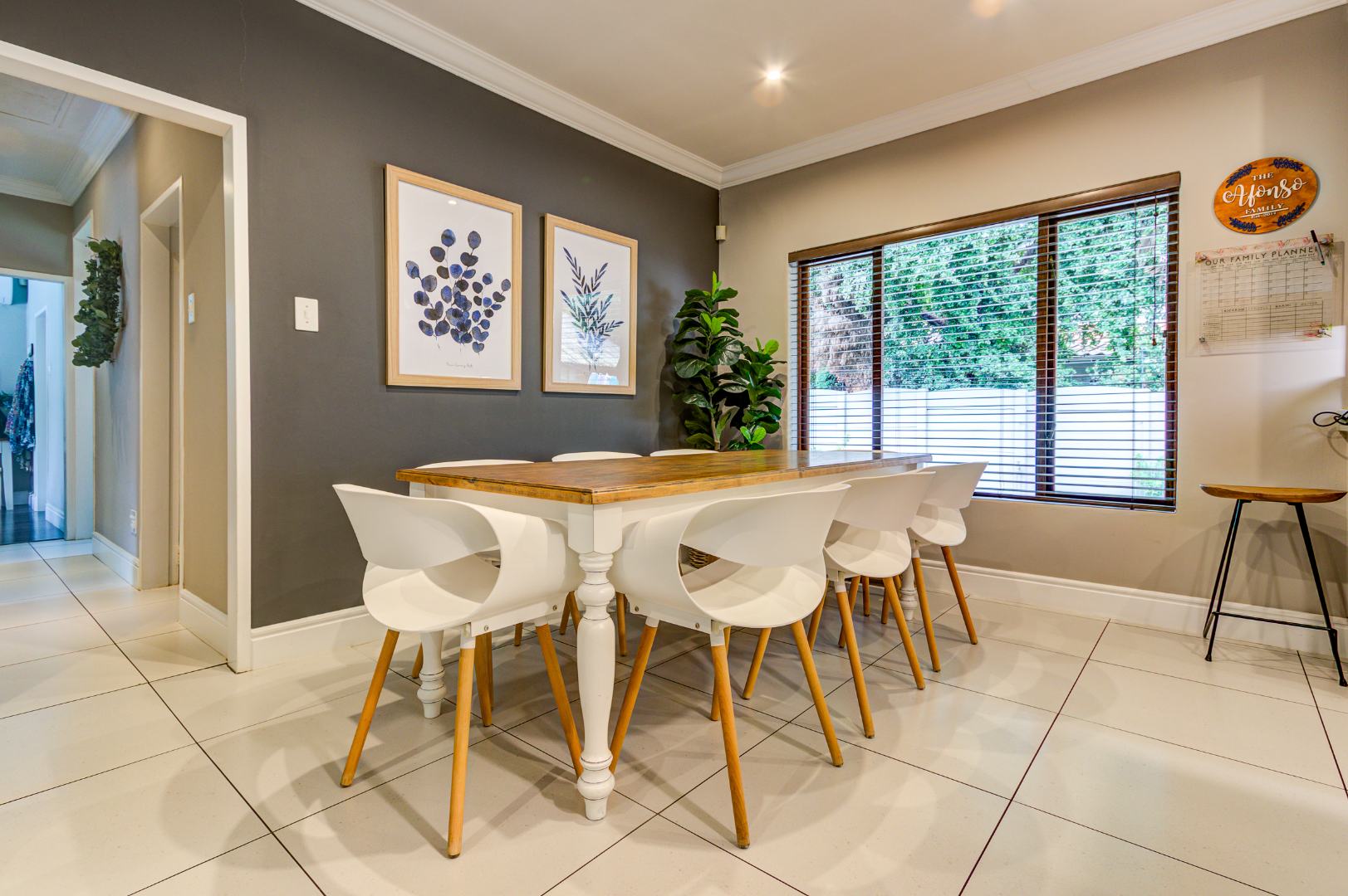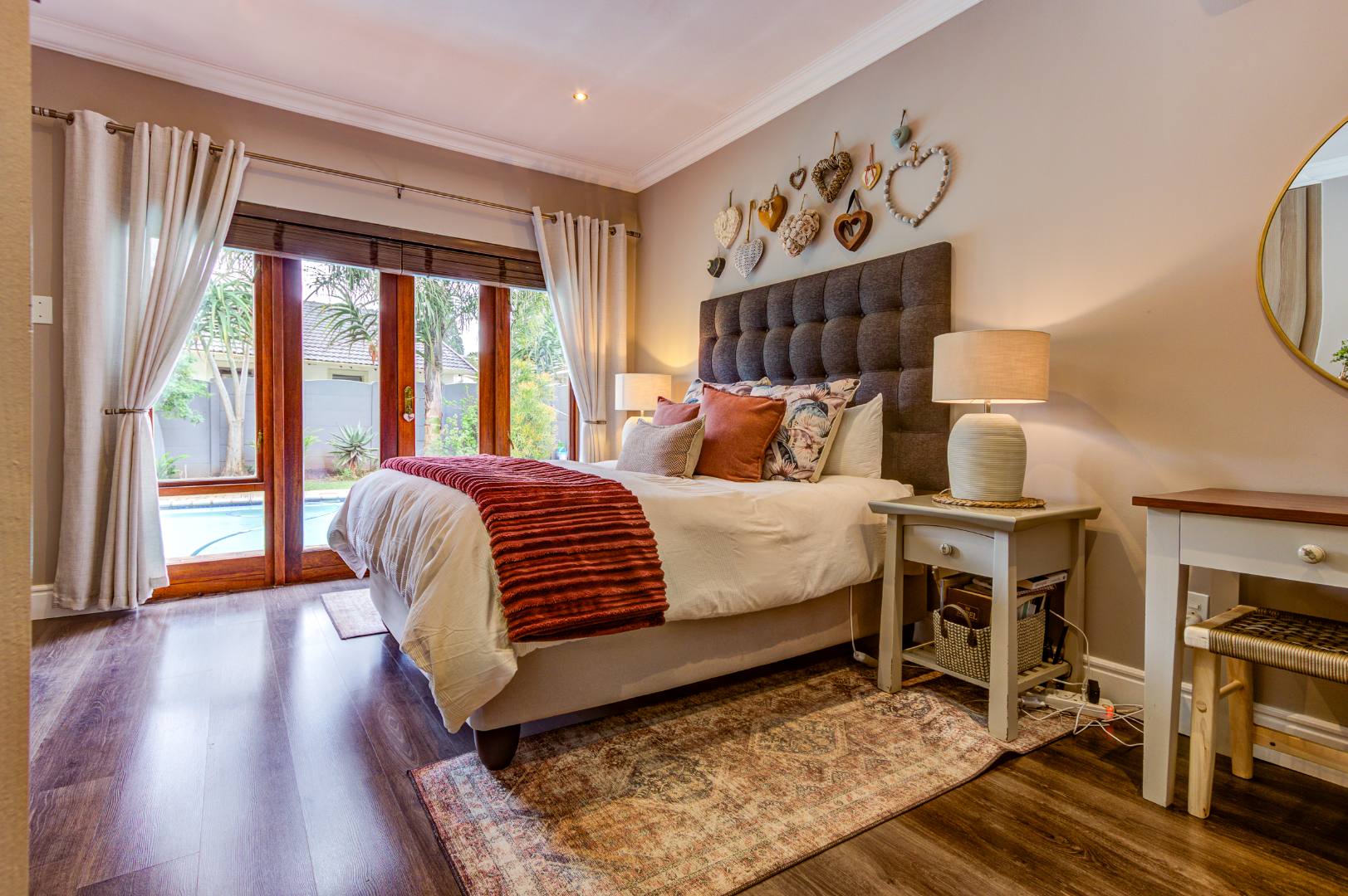 Step inside to an inviting entrance hall that ushers you into a world of refined living. The open-plan design seamlessly connects the spacious lounge, dining room, and a well-appointed kitchen complete with a scullery. Natural light floods the interiors through large wooden French doors, illuminating the neutral palette, elegant crown molding, and pristine tiled flooring. A versatile multi-purpose flat, currently configured with a lounge, 2 bedrooms and full bathroom, offers exceptional flexibility, while a dedicated study provides a quiet retreat. Over and above the two bedrooms in the flat, the home boasts three generously proportioned bedrooms, including a luxurious en-suite bathroom, alongside a second bathroom, ensuring comfort and privacy for all.