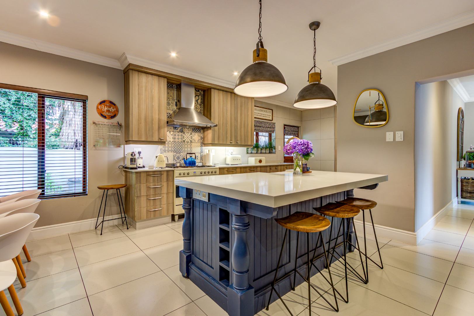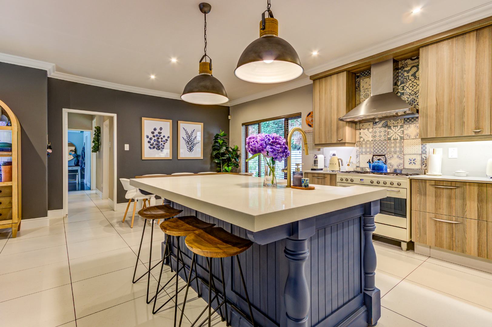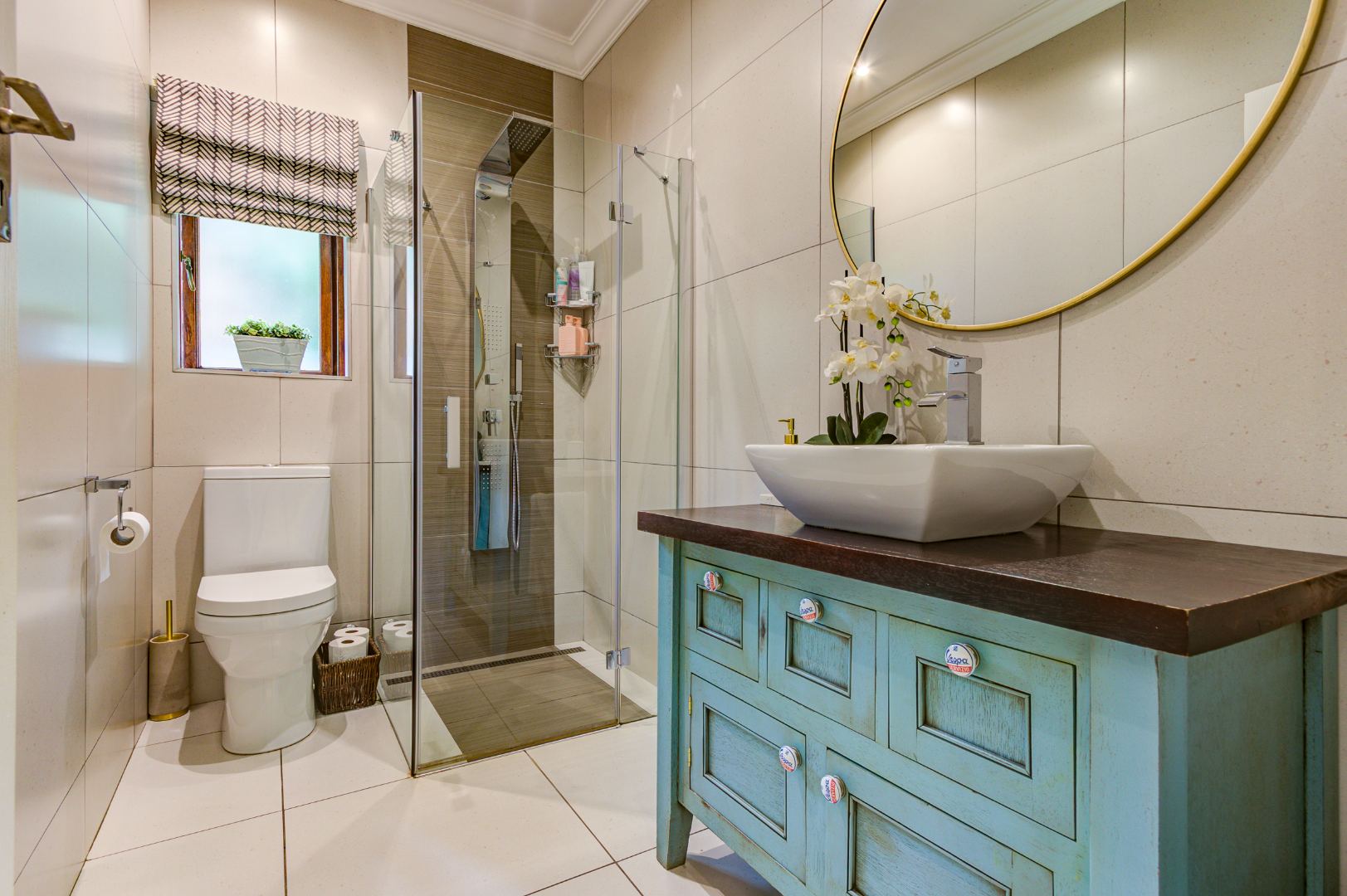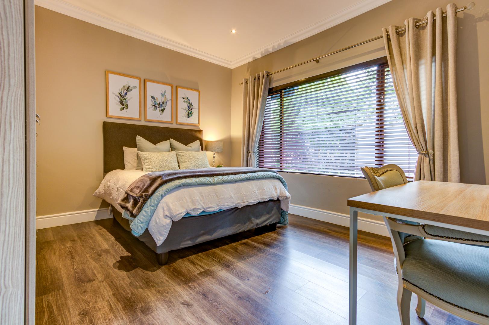 Step inside to an inviting entrance hall that ushers you into a world of refined living. The open-plan design seamlessly connects the spacious lounge, dining room, and a well-appointed kitchen complete with a scullery. Natural light floods the interiors through large wooden French doors, illuminating the neutral palette, elegant crown molding, and pristine tiled flooring. A versatile multi-purpose flat, currently configured with a lounge, 2 bedrooms and full bathroom, offers exceptional flexibility, while a dedicated study provides a quiet retreat. Over and above the two bedrooms in the flat, the home boasts three generously proportioned bedrooms, including a luxurious en-suite bathroom, alongside a second bathroom, ensuring comfort and privacy for all.
