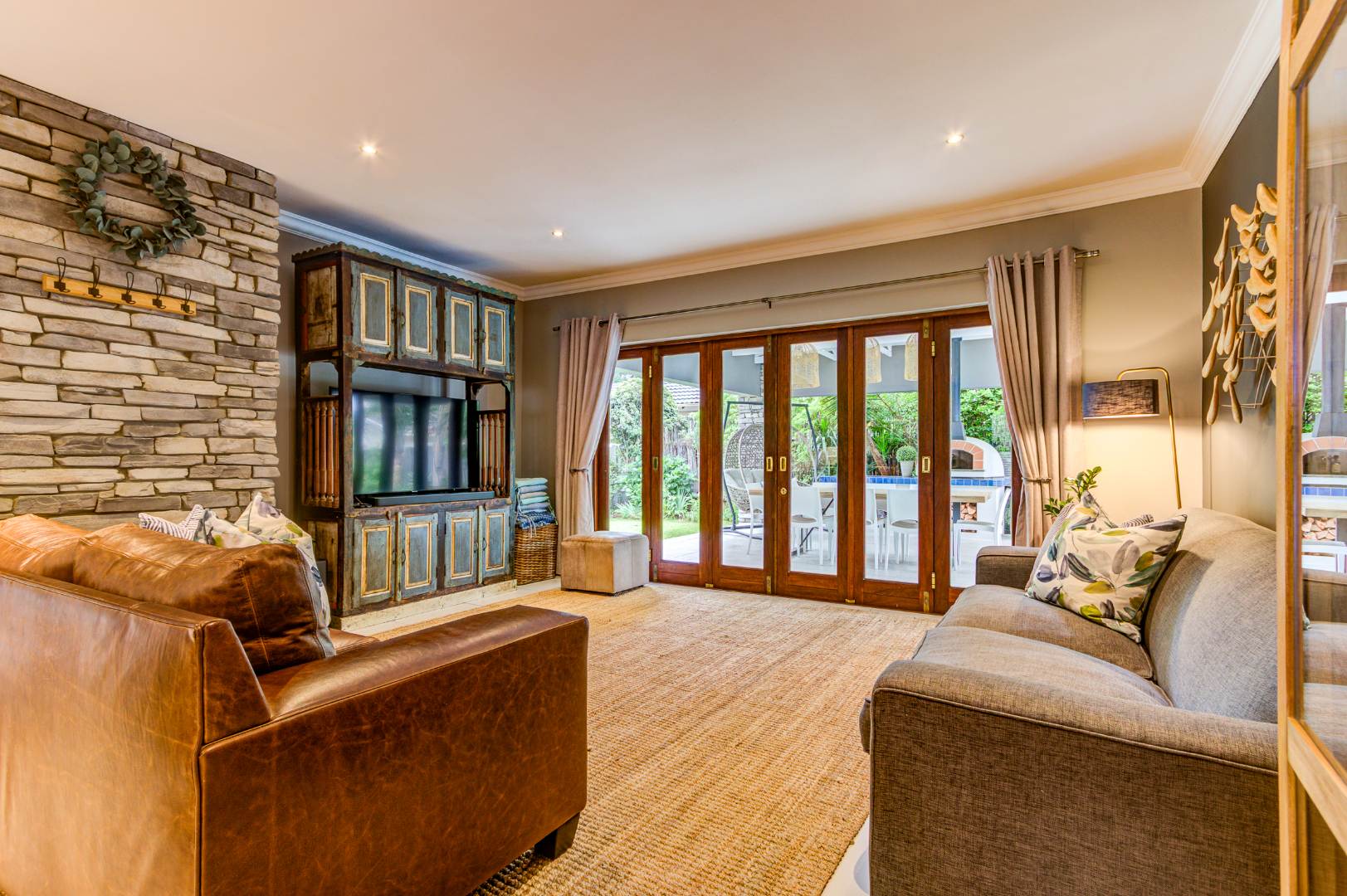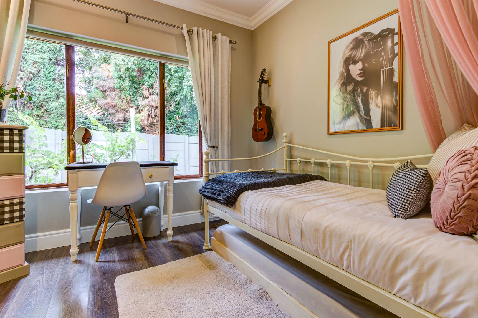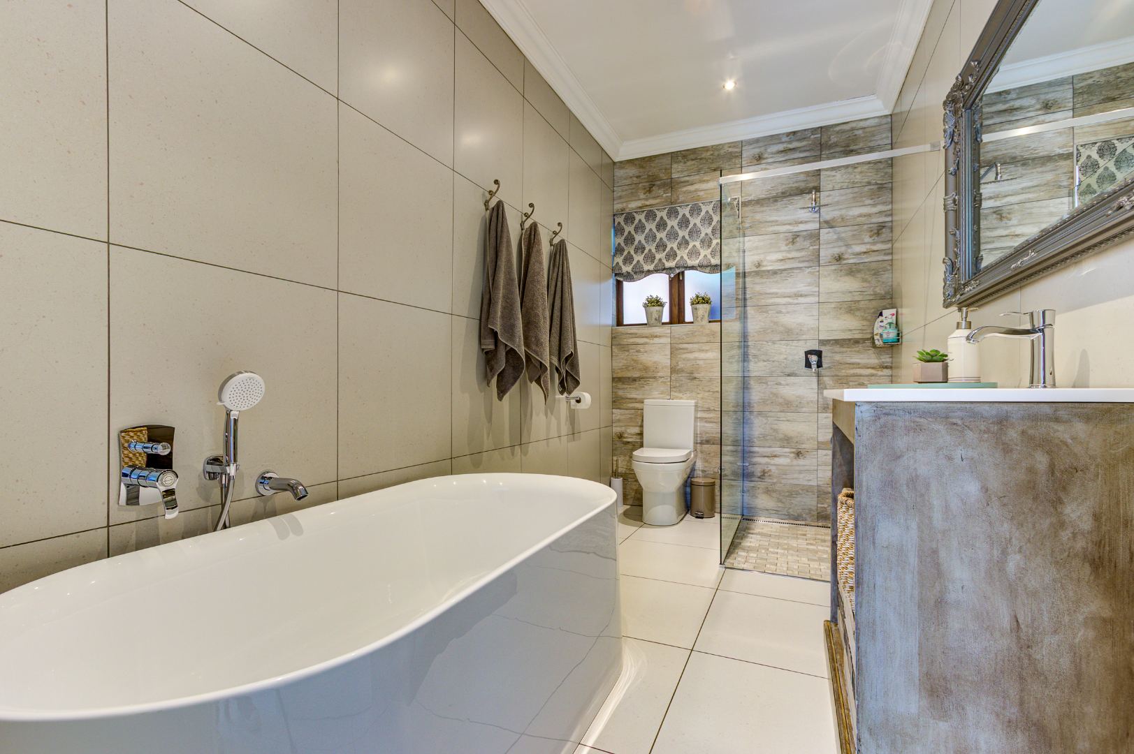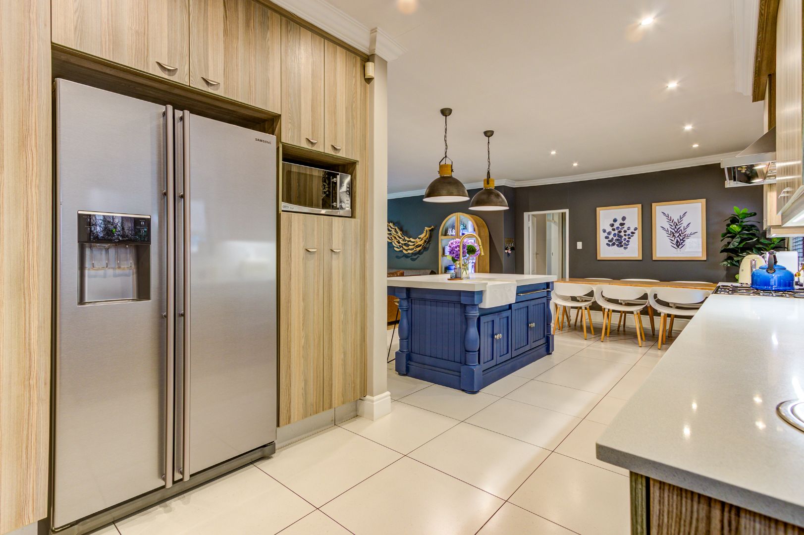Step inside to an inviting entrance hall that ushers you into a world of refined living. The open-plan design seamlessly connects the spacious lounge, dining room, and a well-appointed kitchen complete with a scullery. Natural light floods the interiors through large wooden French doors, illuminating the neutral palette, elegant crown molding, and pristine tiled flooring. A versatile multi-purpose flat, currently configured with a lounge, 2 bedrooms and full bathroom, offers exceptional flexibility, while a dedicated study provides a quiet retreat. Over and above the two bedrooms in the flat, the home boasts three generously proportioned bedrooms, including a luxurious en-suite bathroom, alongside a second bathroom, ensuring comfort and privacy for all.