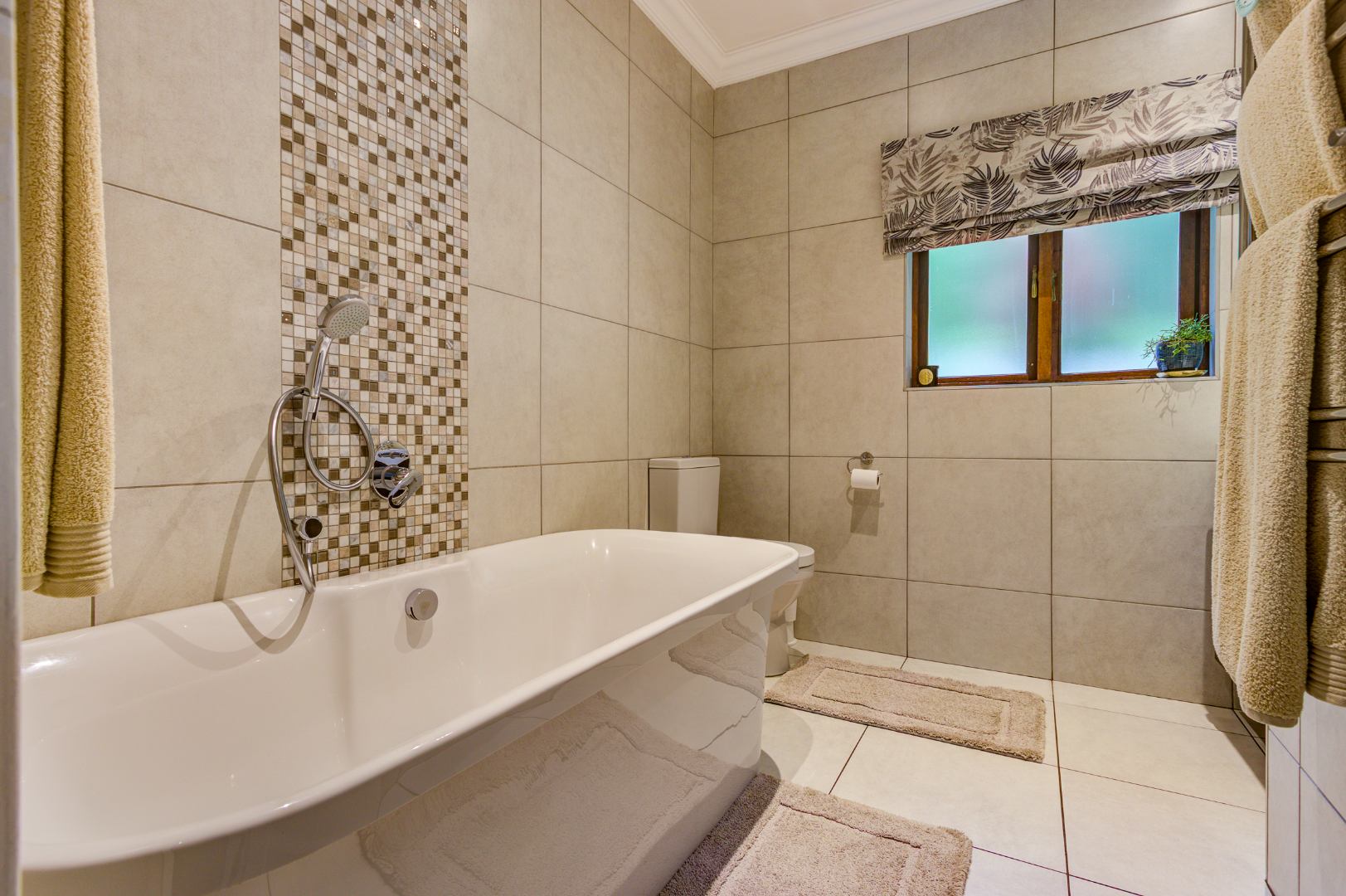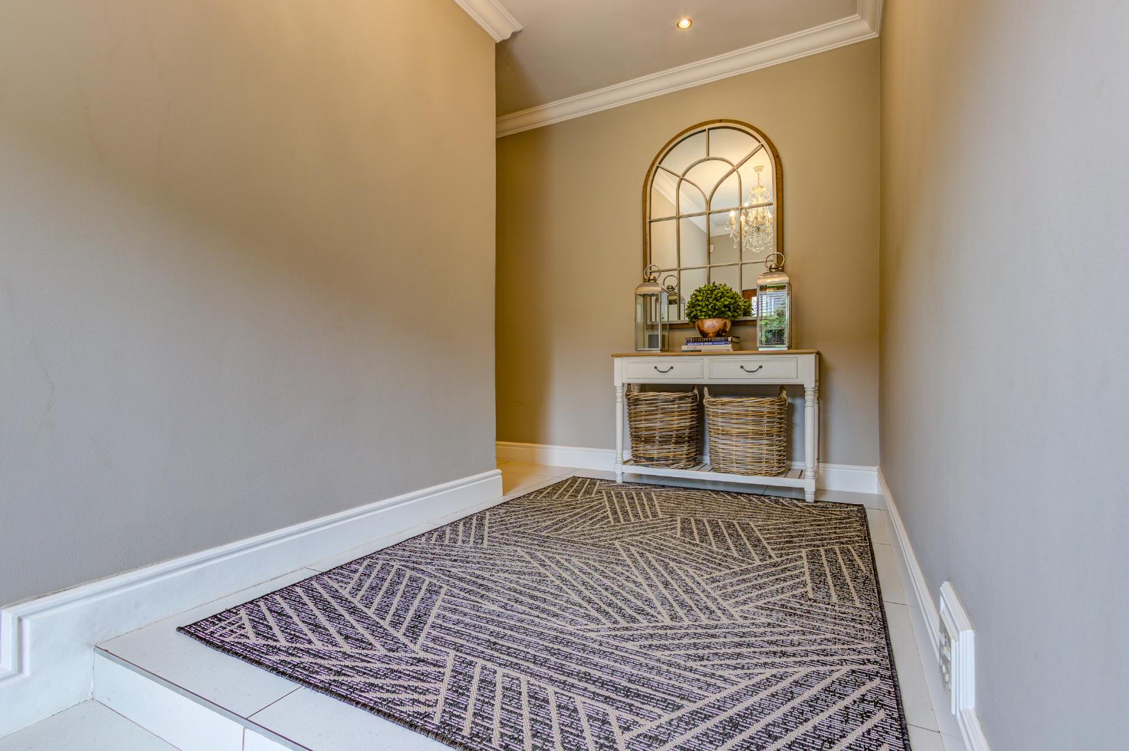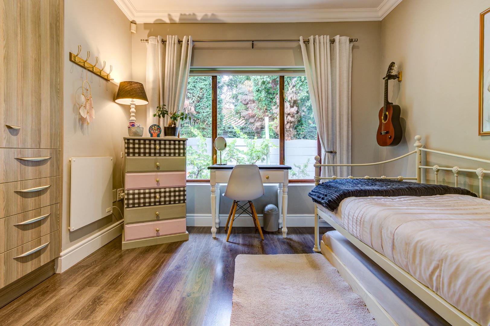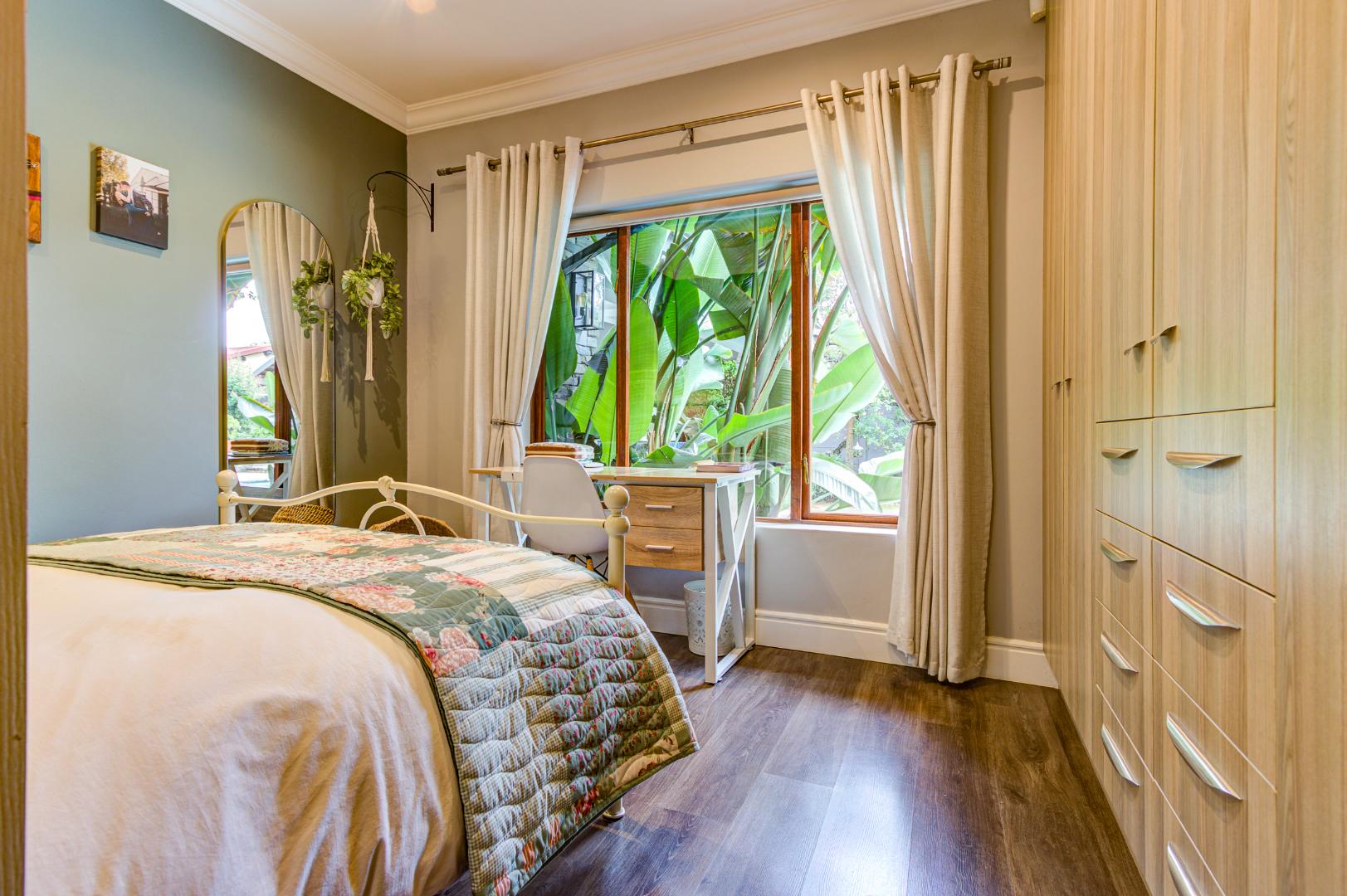 Step inside to an inviting entrance hall that ushers you into a world of refined living. The open-plan design seamlessly connects the spacious lounge, dining room, and a well-appointed kitchen complete with a scullery. Natural light floods the interiors through large wooden French doors, illuminating the neutral palette, elegant crown molding, and pristine tiled flooring. A versatile multi-purpose flat, currently configured with a lounge, 2 bedrooms and full bathroom, offers exceptional flexibility, while a dedicated study provides a quiet retreat. Over and above the two bedrooms in the flat, the home boasts three generously proportioned bedrooms, including a luxurious en-suite bathroom, alongside a second bathroom, ensuring comfort and privacy for all.