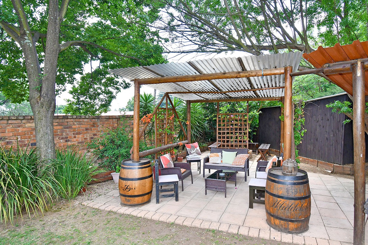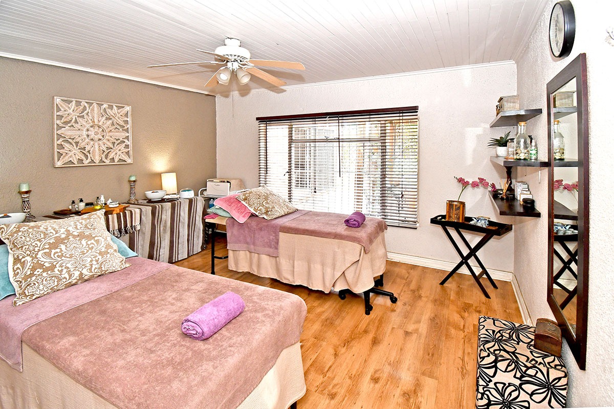 Outdoor spaces are thoughtfully designed with multiple seating areas, perfect for relaxation or informal meetings amidst the serene environment. The solid brick construction of the buildings, coupled with well-kept exteriors, offers durability and a welcoming aesthetic. The property offers privacy perfect for relaxation in the existing spa and is well managed. It has visible fencing and gates contributing to a secure perimeter.