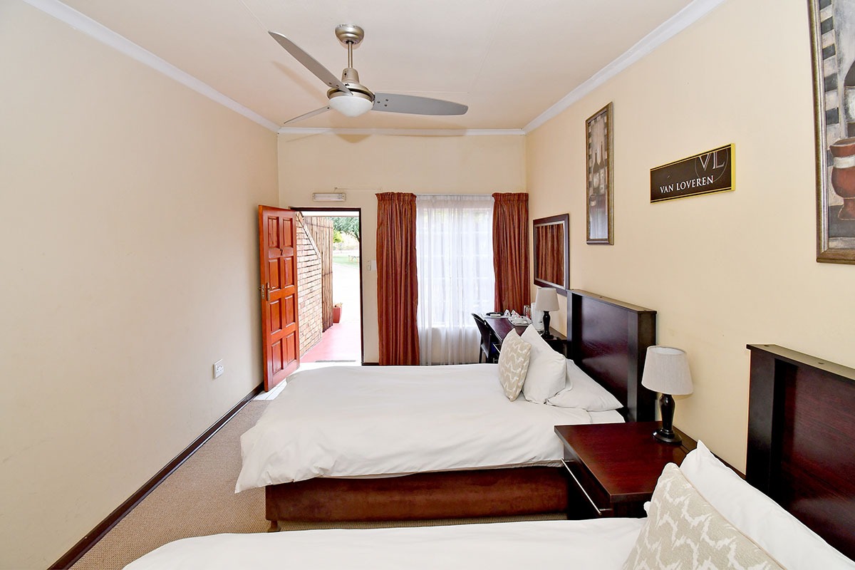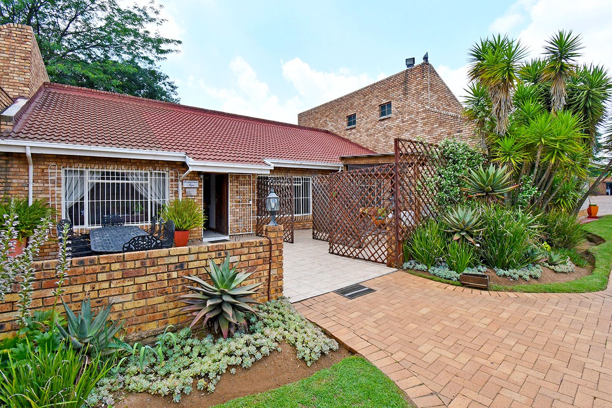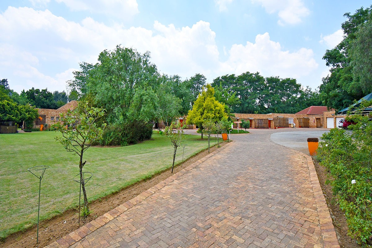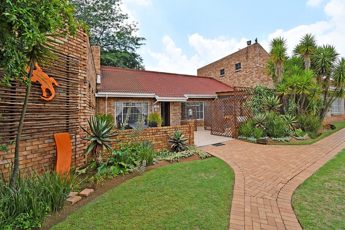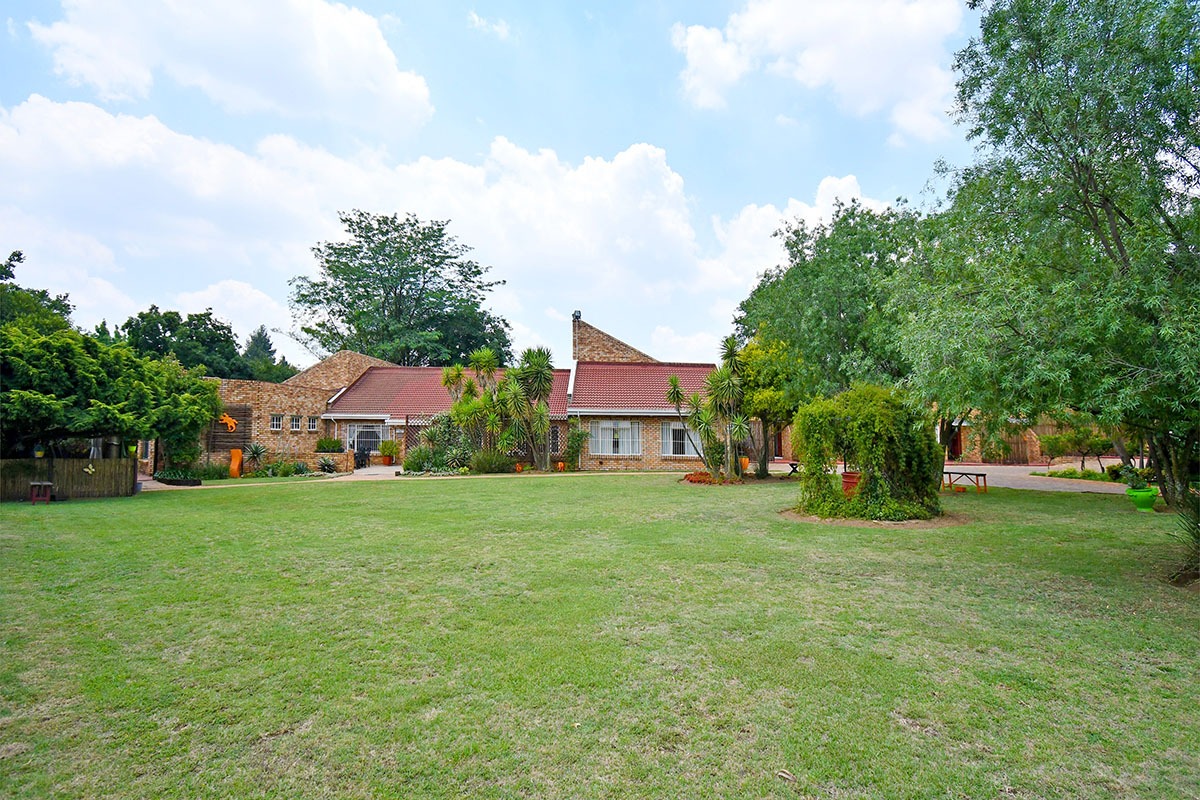 The property boasts meticulously maintained grounds, characterized by lush green lawns, mature trees providing ample shade, and vibrant landscaping that creates an inviting atmosphere. A prominent reception area, visible from the entrance, underscores its potential as a guest house or similar hospitality venture. Access is facilitated by extensive brick-paved driveways, leading to a significant 12 parking bays, ensuring convenience for both staff and visitors.