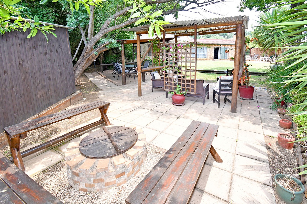 Outdoor spaces are thoughtfully designed with multiple seating areas, perfect for relaxation or informal meetings amidst the serene environment. The solid brick construction of the buildings, coupled with well-kept exteriors, offers durability and a welcoming aesthetic. The property offers privacy perfect for relaxation in the existing spa and is well managed. It has visible fencing and gates contributing to a secure perimeter.